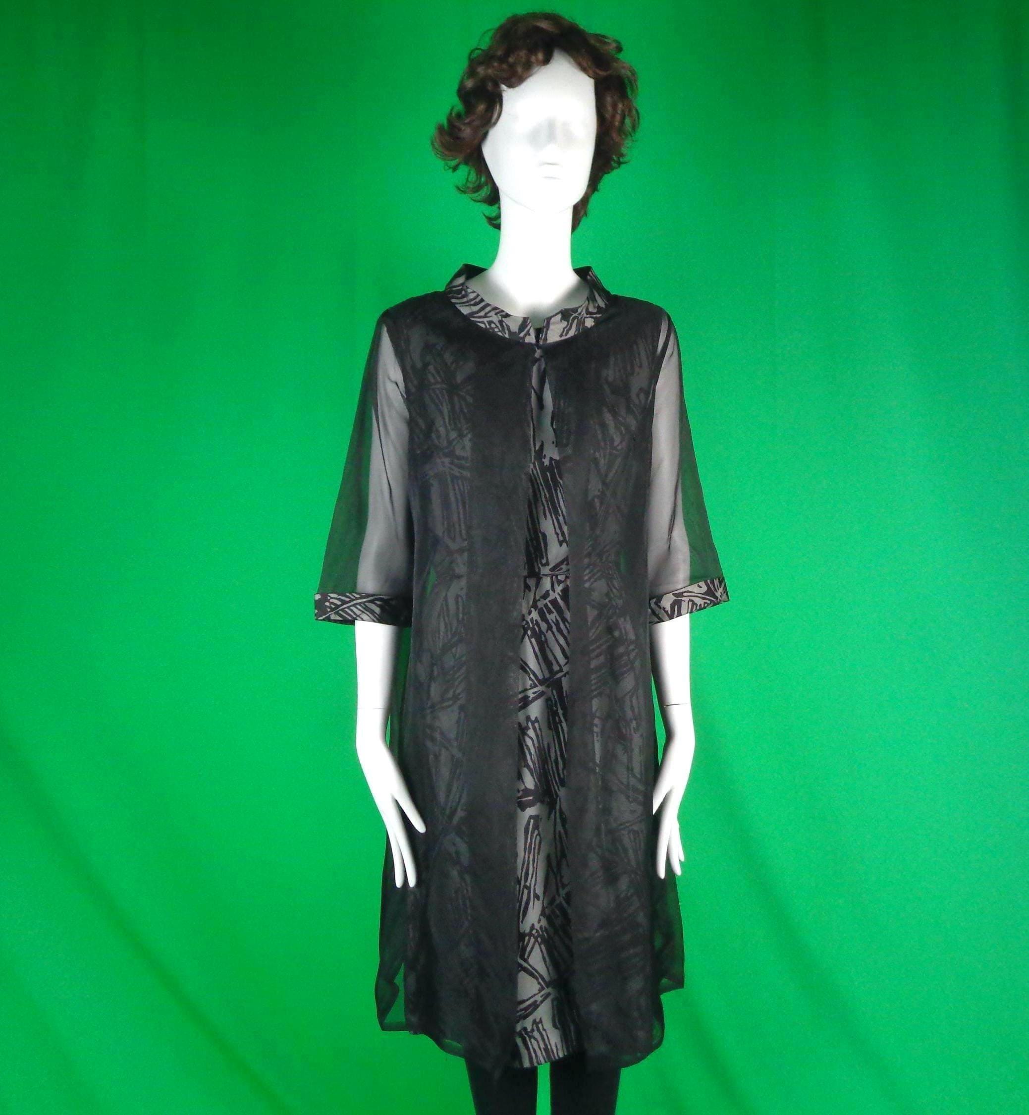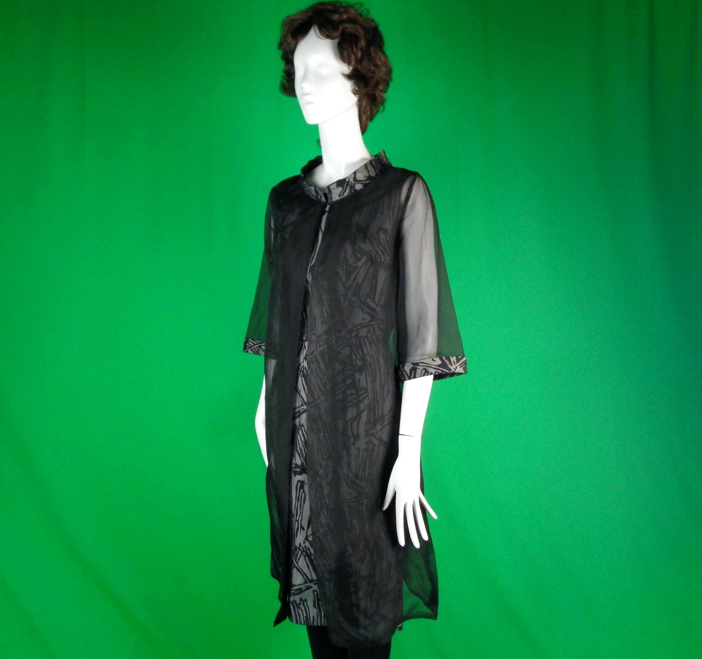 Features the dress piping edge boat neckline, cinch piping waist, a layered sheer fabric slip, metal zipper back, original factory label, abstract pattern, design throughout! Jacket A line silhouette, matching neckline and cuffs, soft material, fabric throughout! Great compliment pieces!