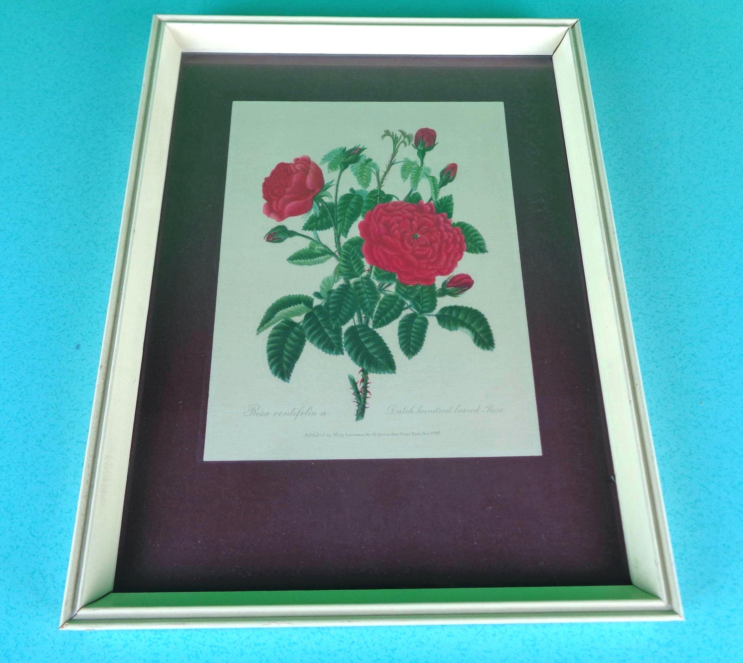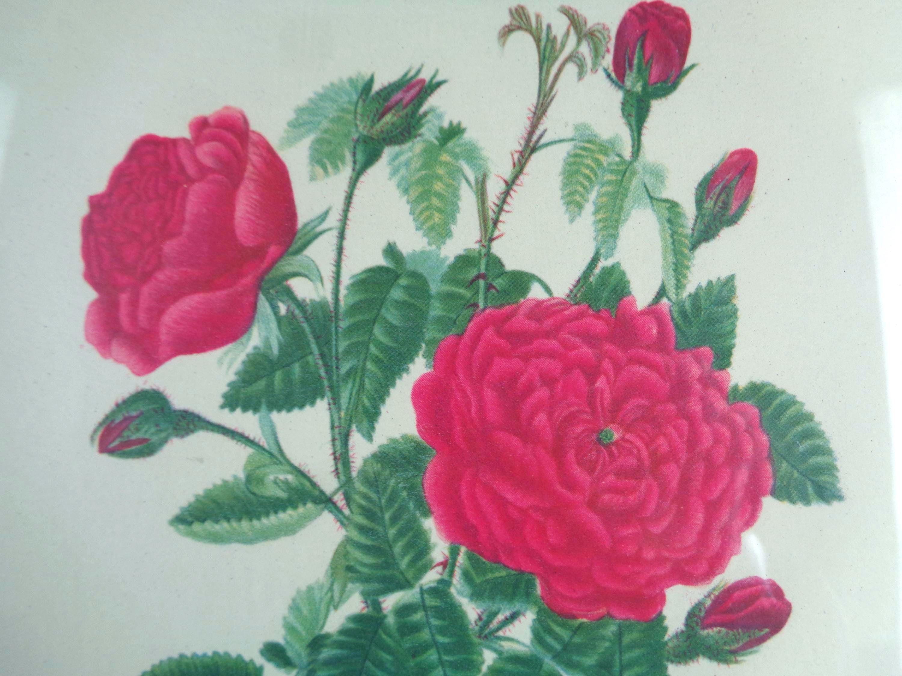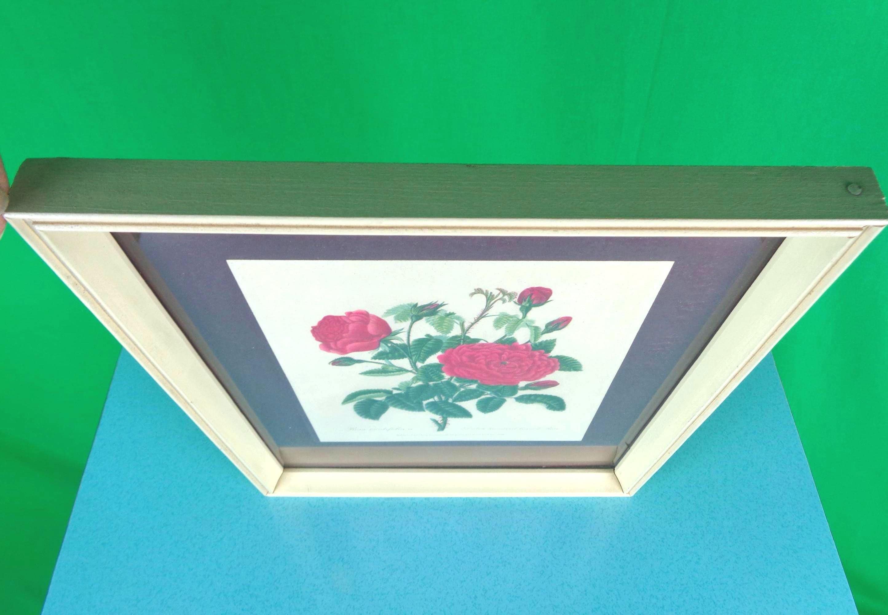 Features a drawing Queen Anne Rose floral bouquet in layered press glass, with a narrow minimalist frame! Great piece!