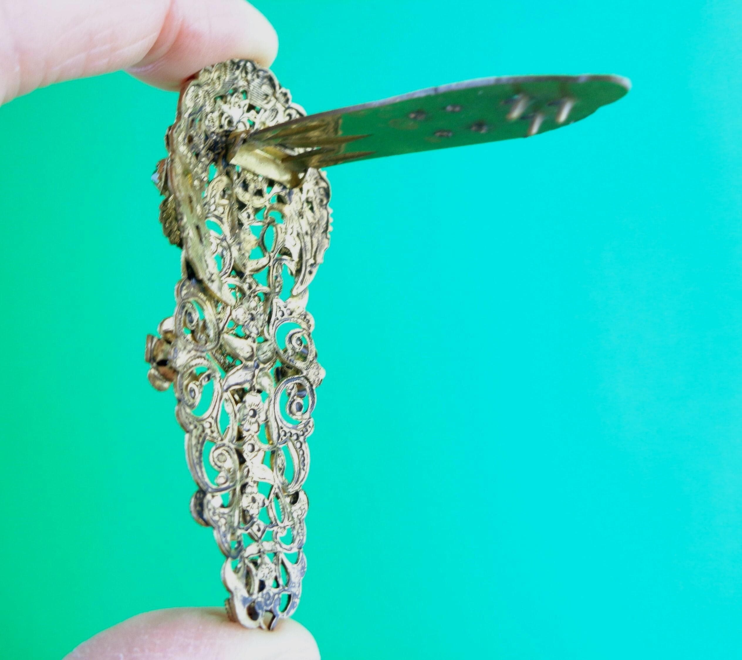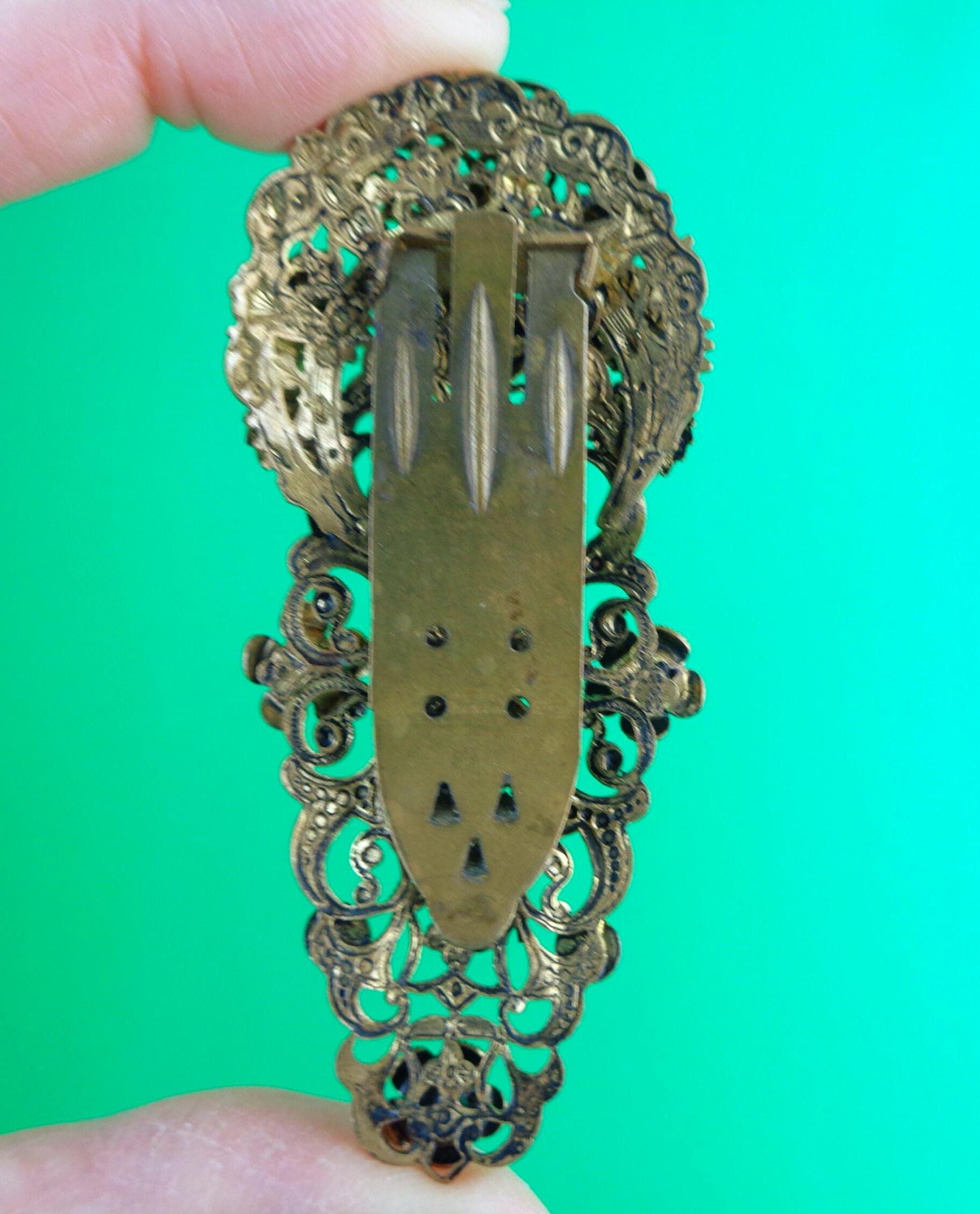 This lovely elegant 1930s 40s fur clip features 9 color rhinestones , 6 studded decals, a back claw clip and orate pattern, design throughout! Great compliment piece!