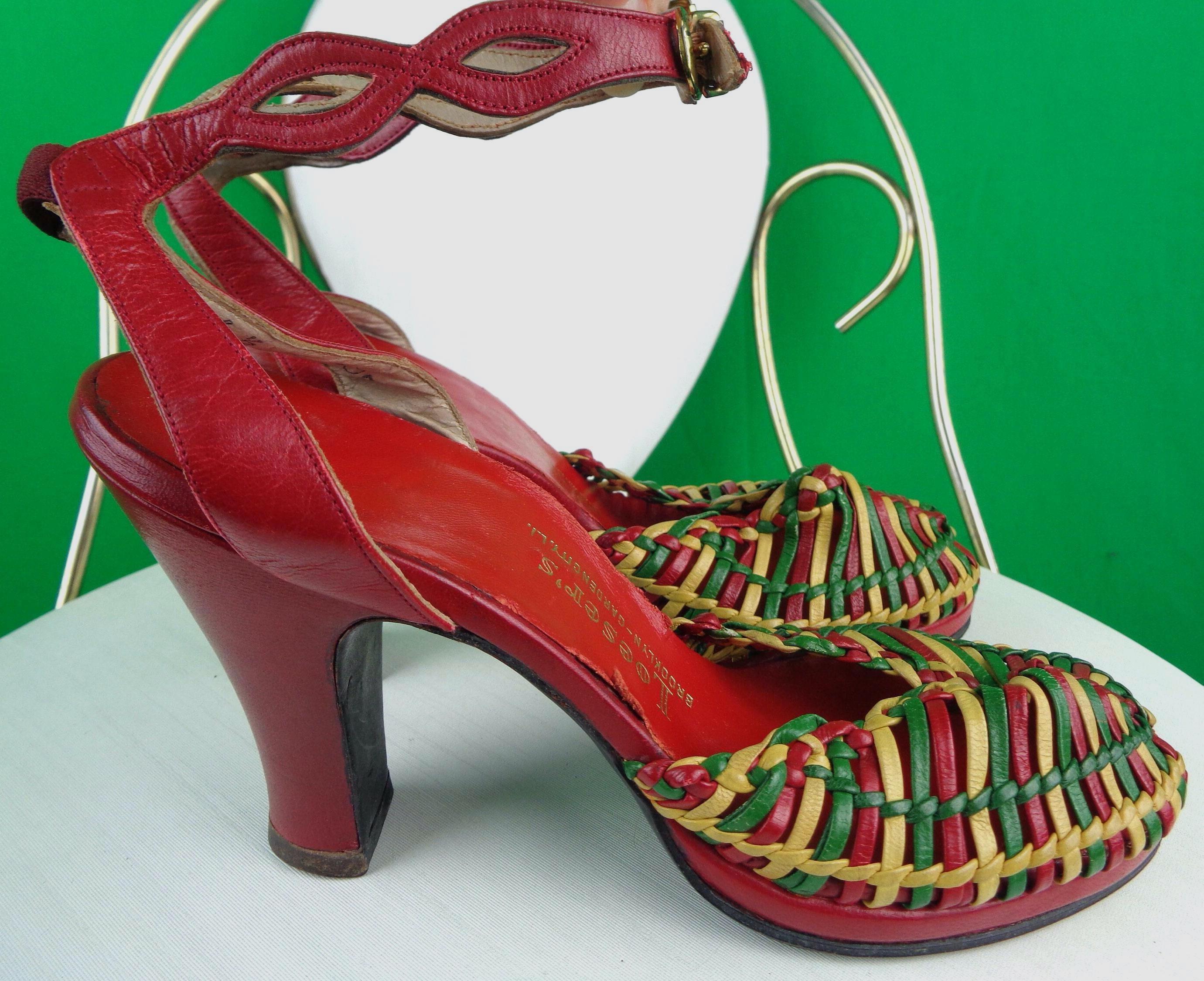Maker, Brandname, Label, Origin, Region: Loesers Brooklyn Red Yellow Green pumps U.S.A.