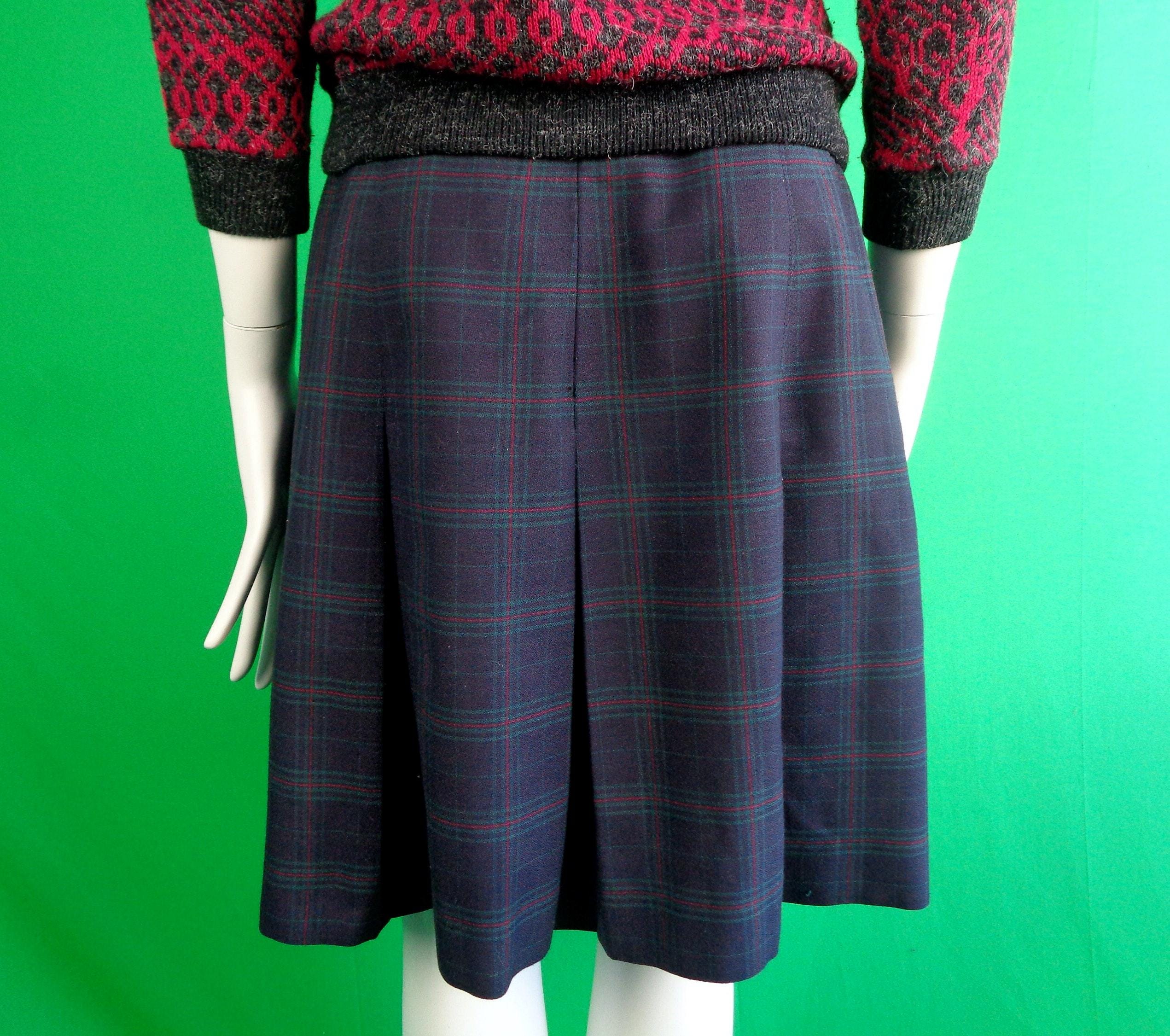 Features a back nylon hidden zipper, 2 top double secure fly buttons, with a wide pleats all around, a deep layered plaid tartan pattern, design, with soft fabric, material throughout!