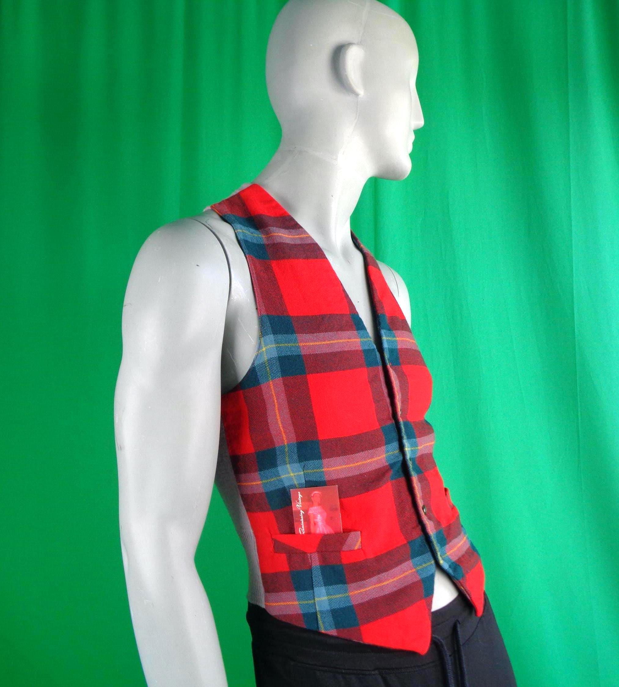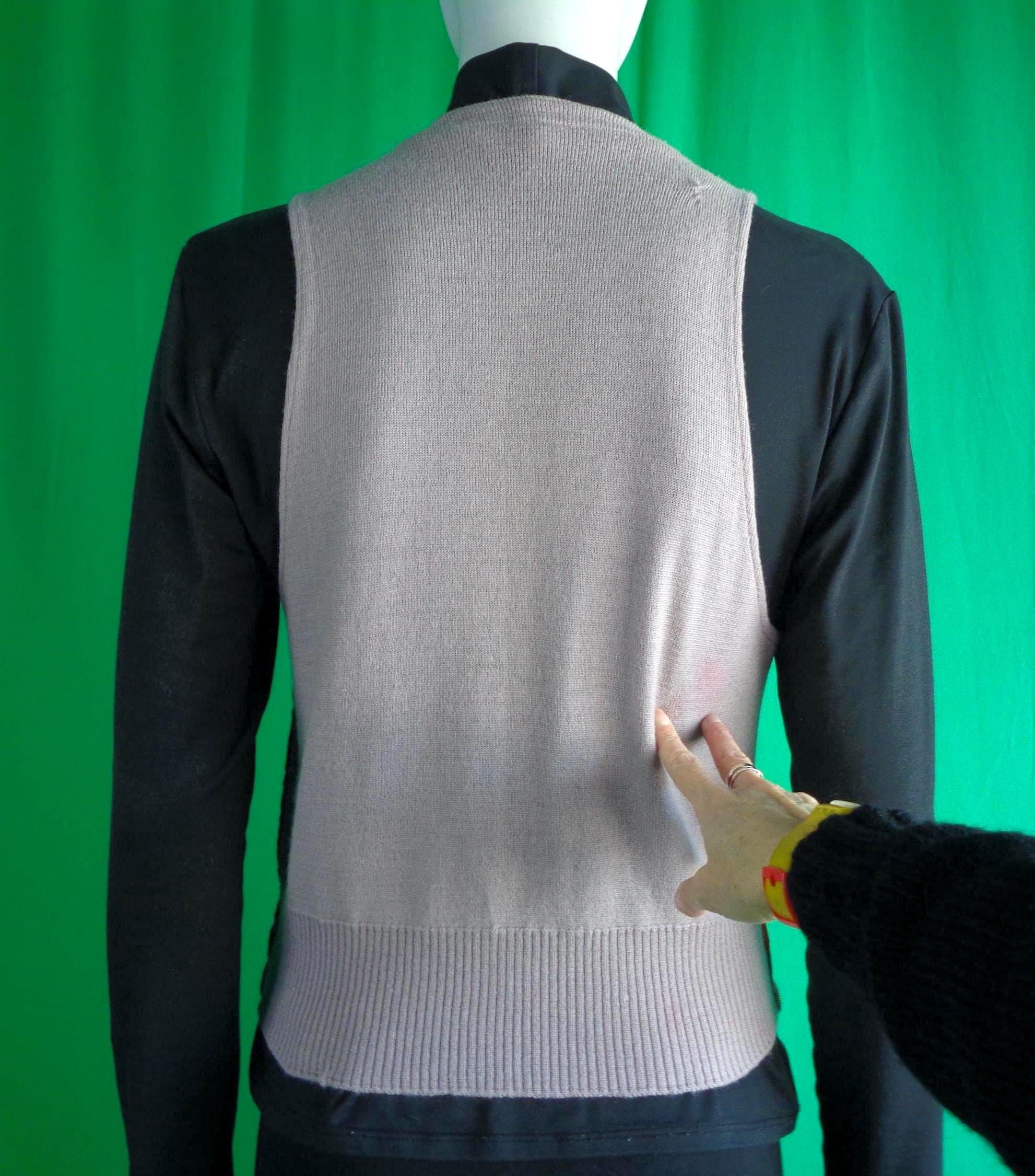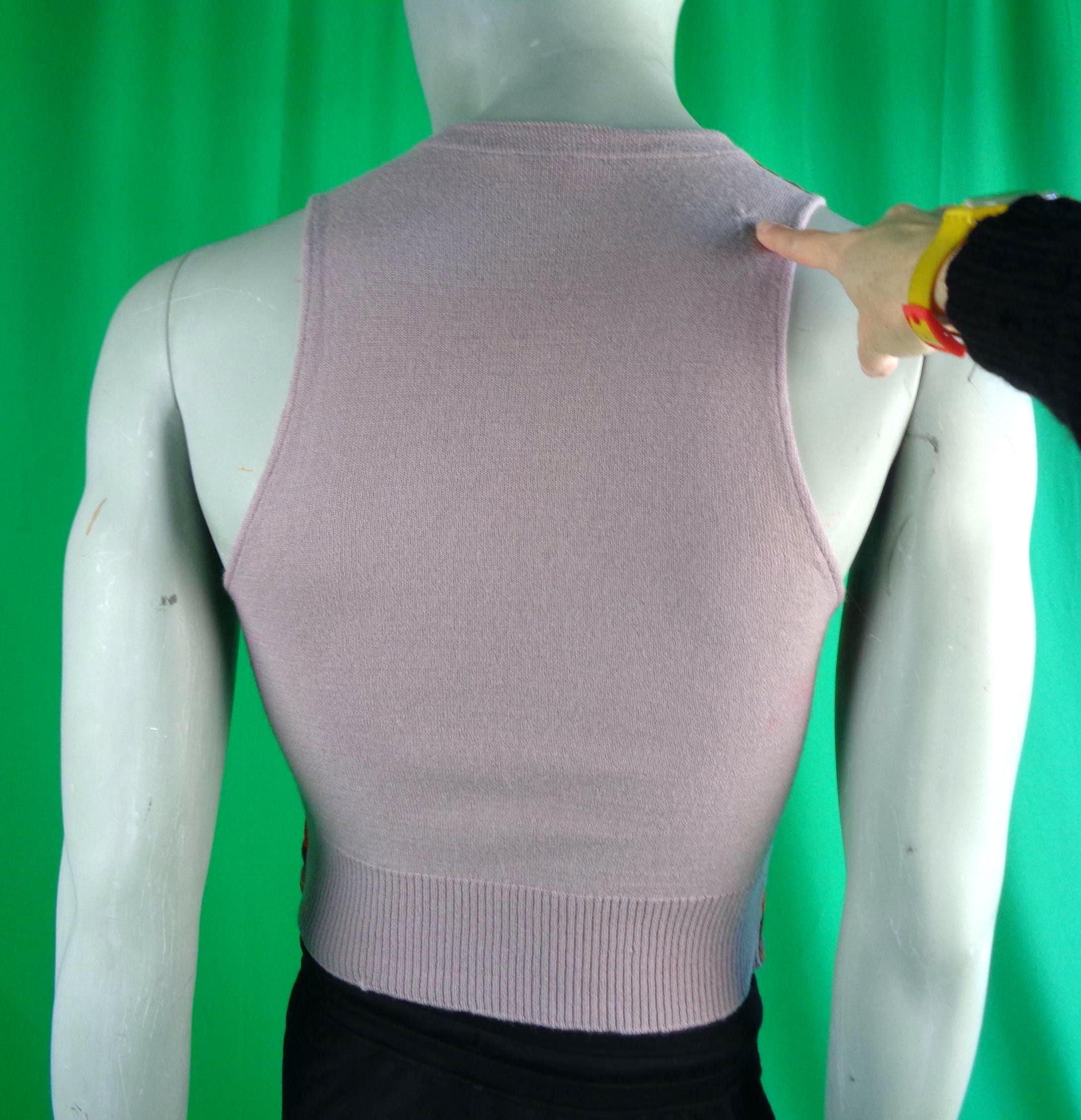 This lovely stylish 1950s 60s button vest, shirt, top features 5 front pearl green buttons, with 2 side pockets, deep V neck, jersey knit back, lined inside a heavier outer panels, soft material, fabric throughout! Great compliment piece!