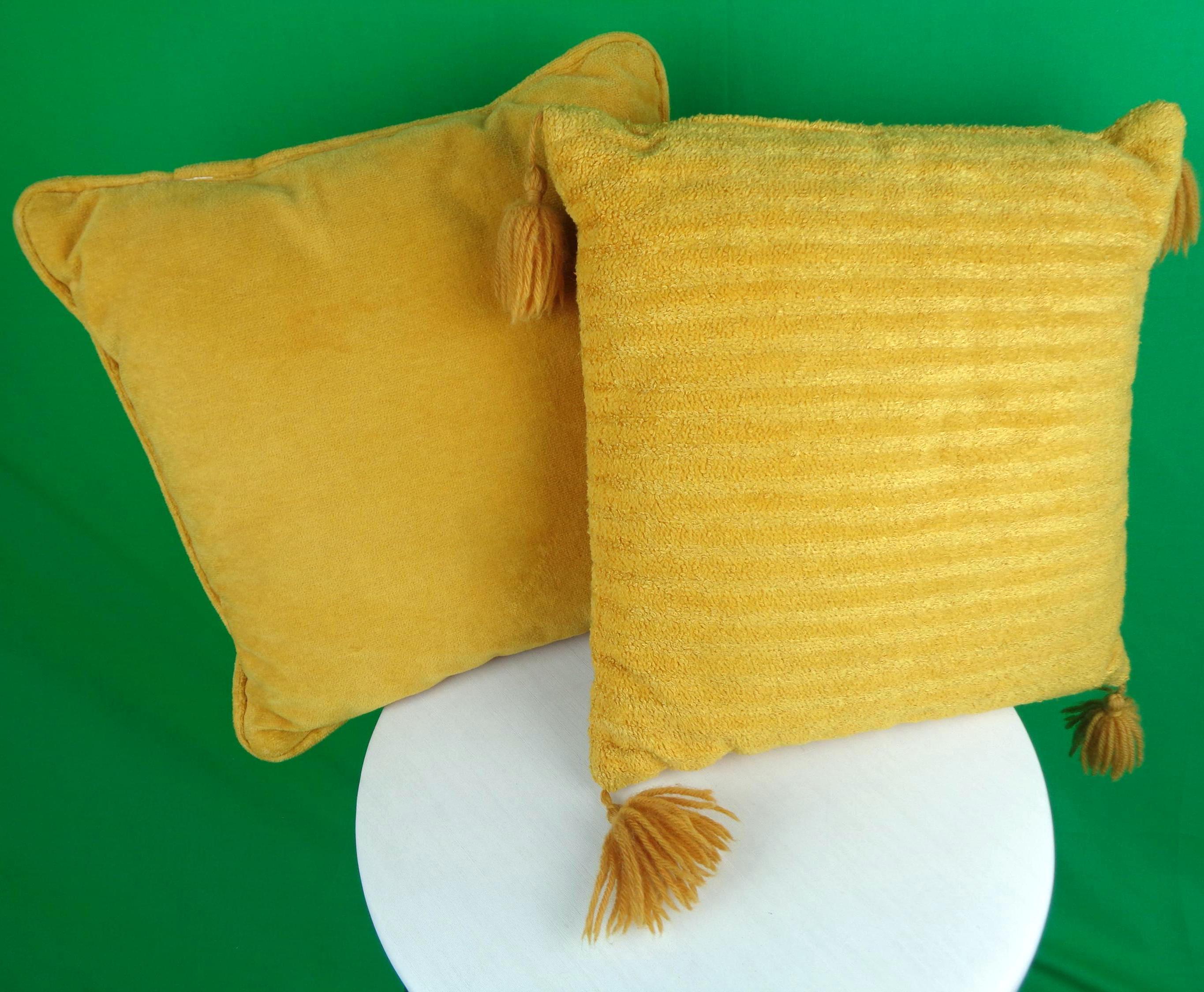 Features 2 different styles 1st pillow has 4 tasseled edges, striped pattern, design throughout, 2nd pillow has a tube board edges and solid minimalistic patten, design throughout! Great pieces!
