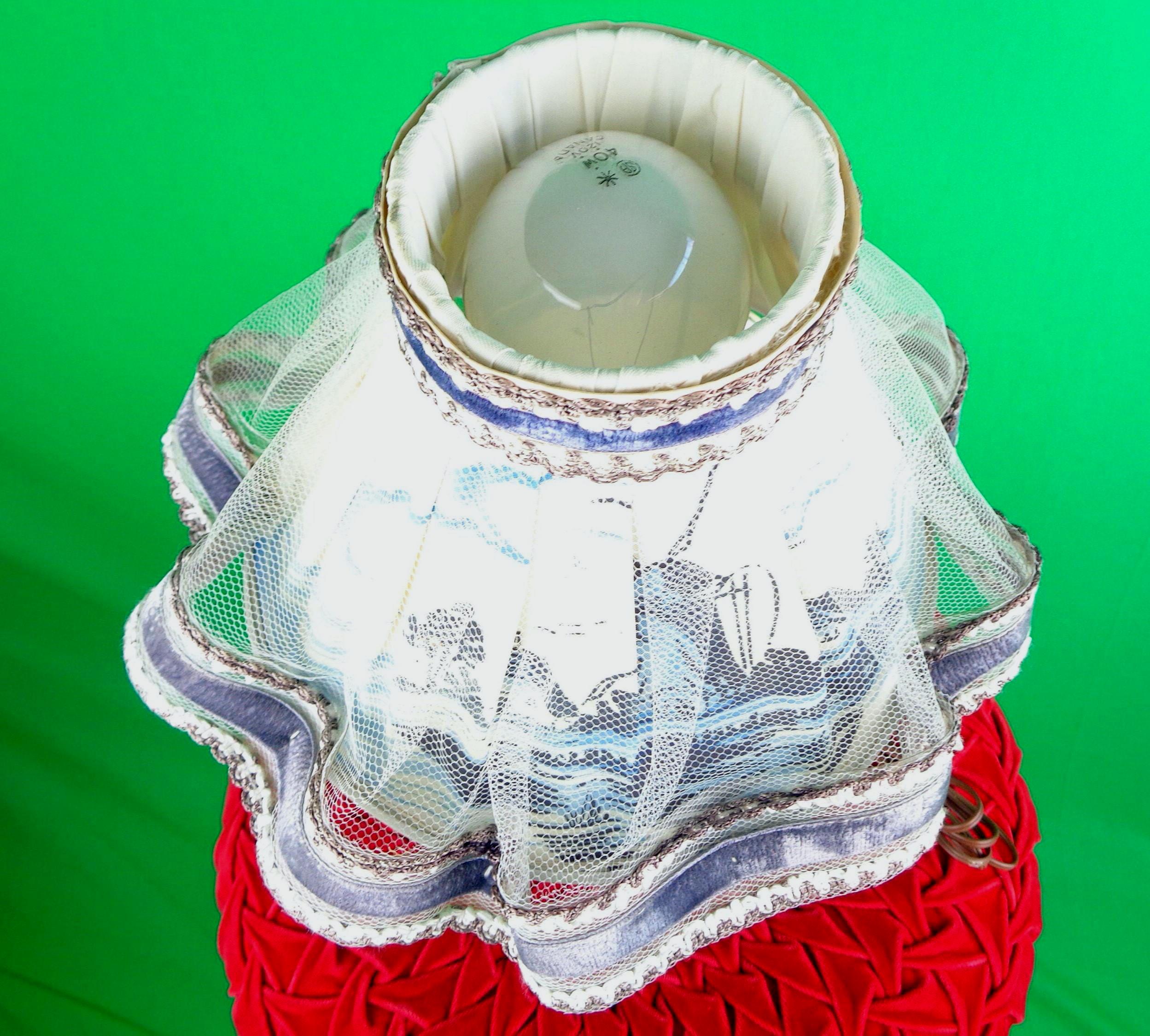 Features a portrait of the Netherland's by the sea, layered with a tulle, decorated velvet and plastic scalloped base cover, with a decorative base and top! Great compliment piece!
