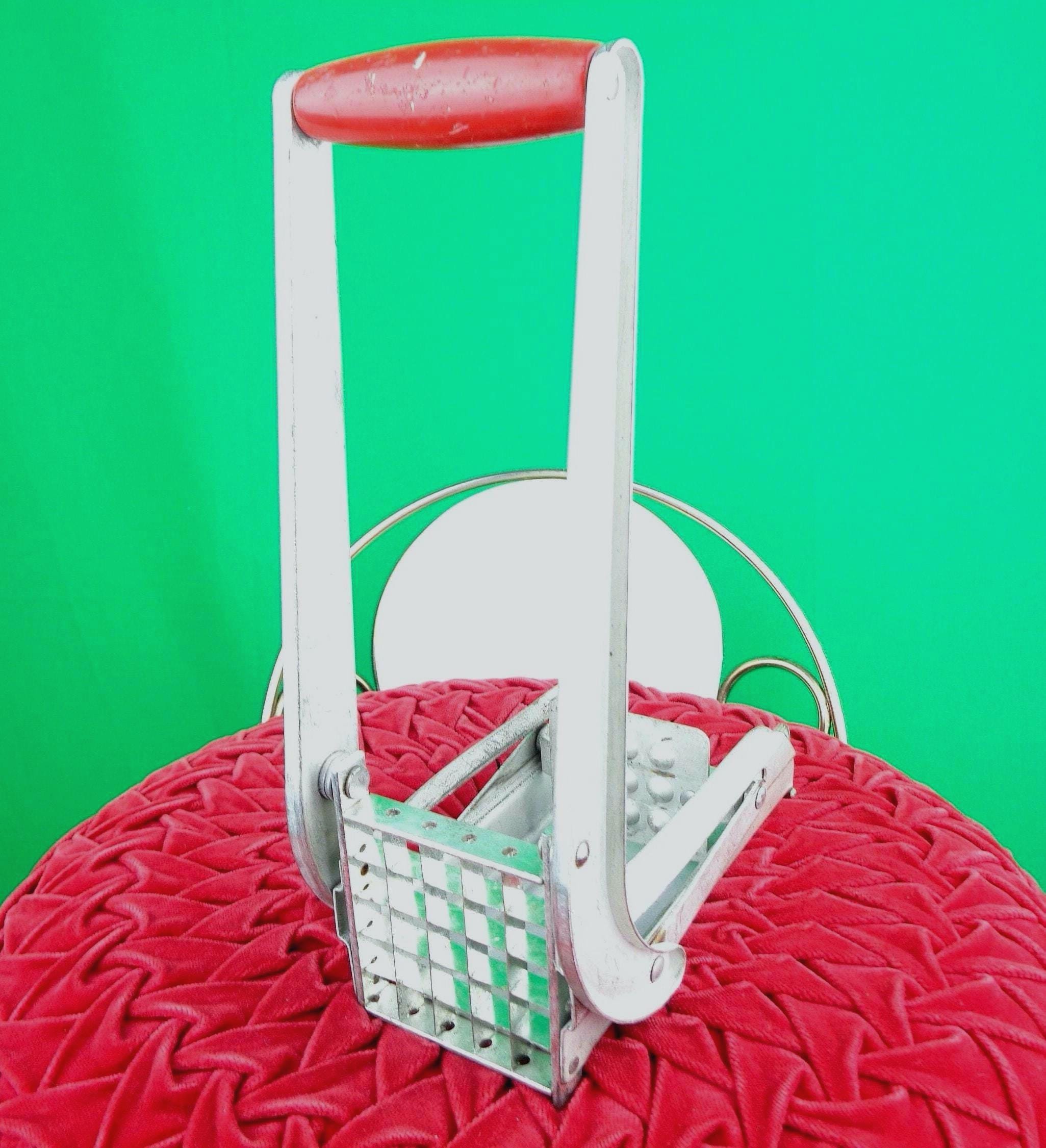 This lovely sturdy handy 1940s 50s fry cutter, kitchen gadget, food dicer, utensil cookware.
