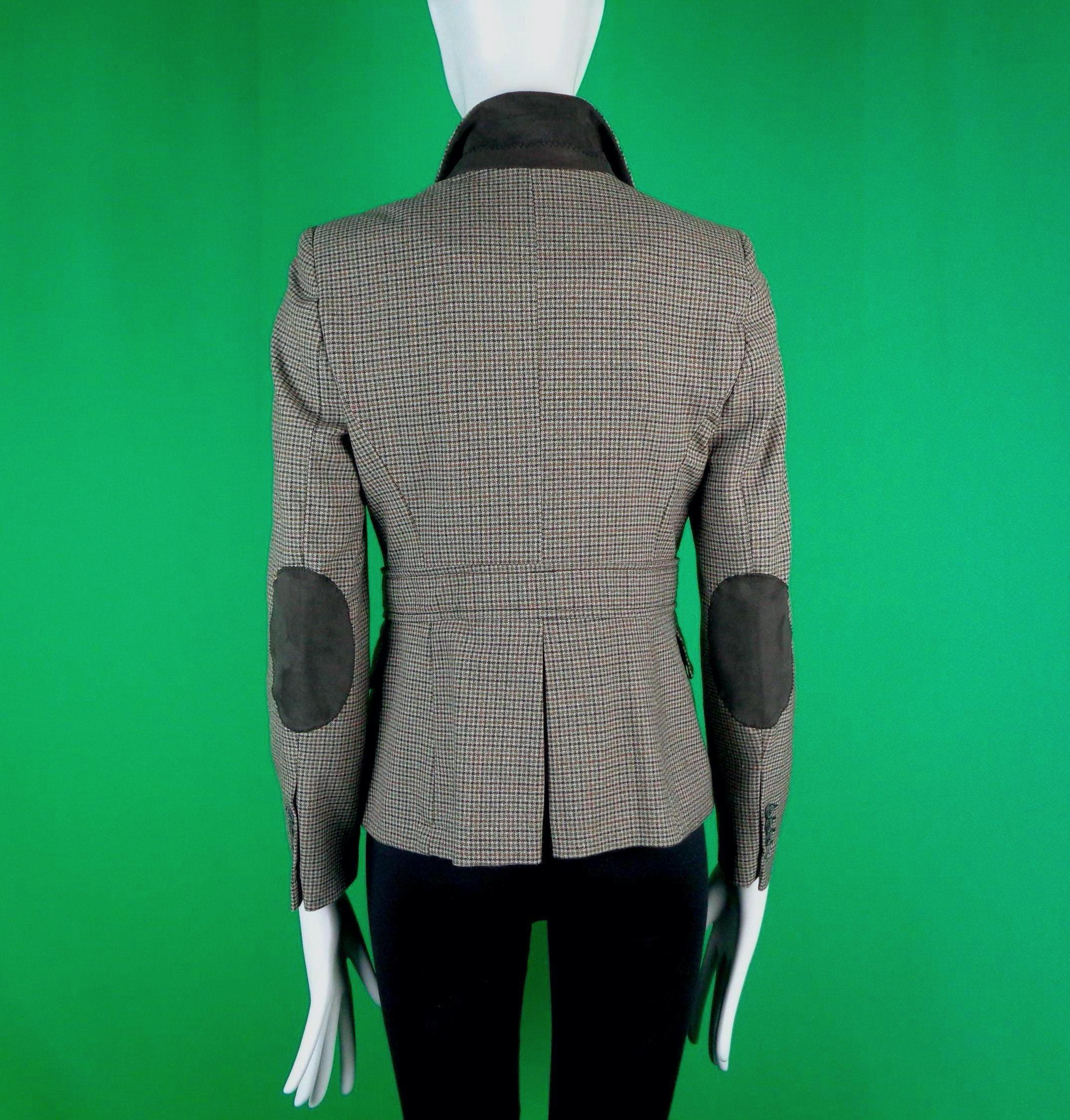 Features 2 front buttons, 2 waist buttons, a pop collar, hidden pleat back, with band waist, velveteen elbow pads and back collar, soft fabric, material throughout! Great compliment piece!