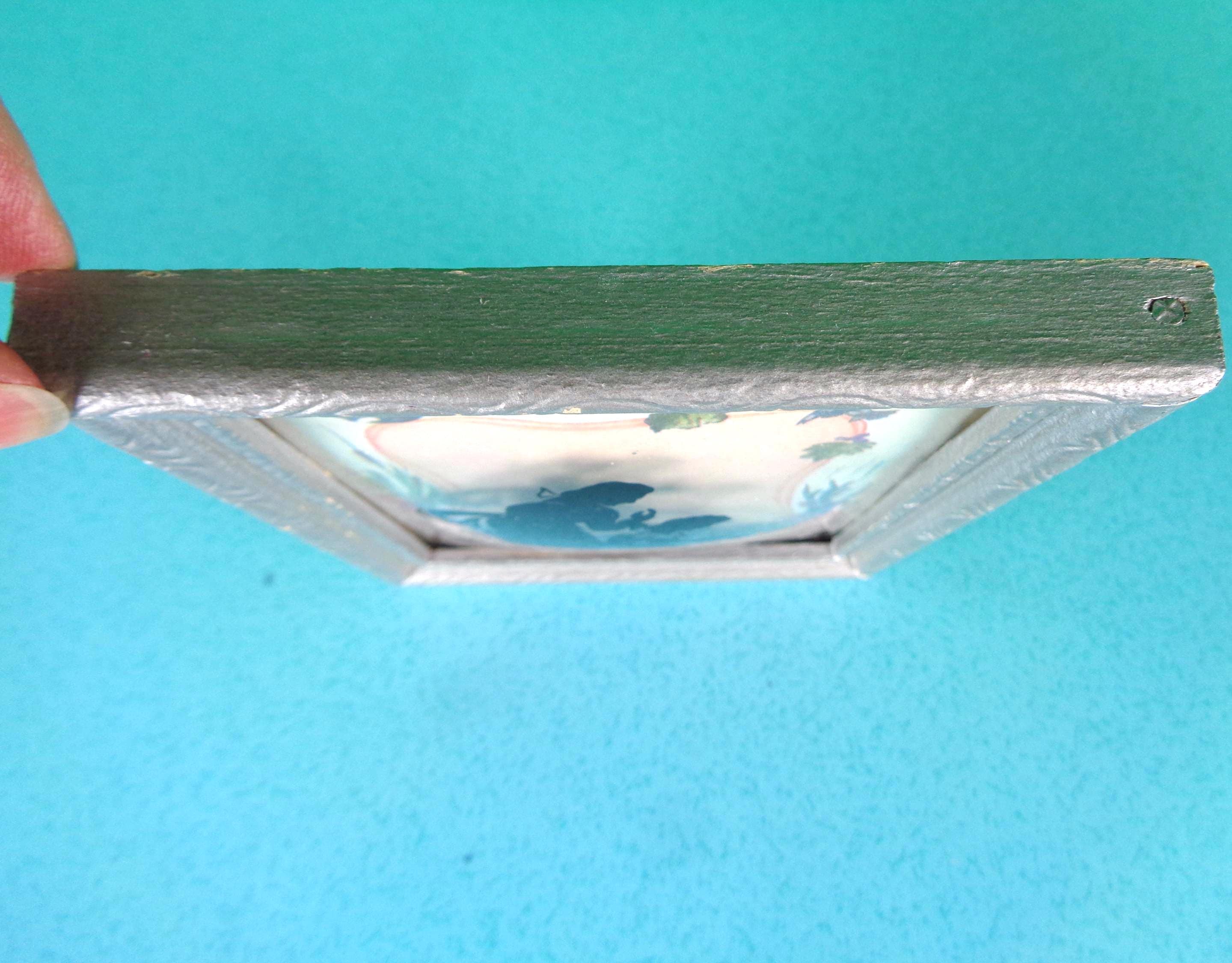 Conditions: Excellent-Very Good! A. Silver frame picture very light wear, minor paint spots back frame, slight loose back. No major flaws to note! See pictures for detailed references! Clean!