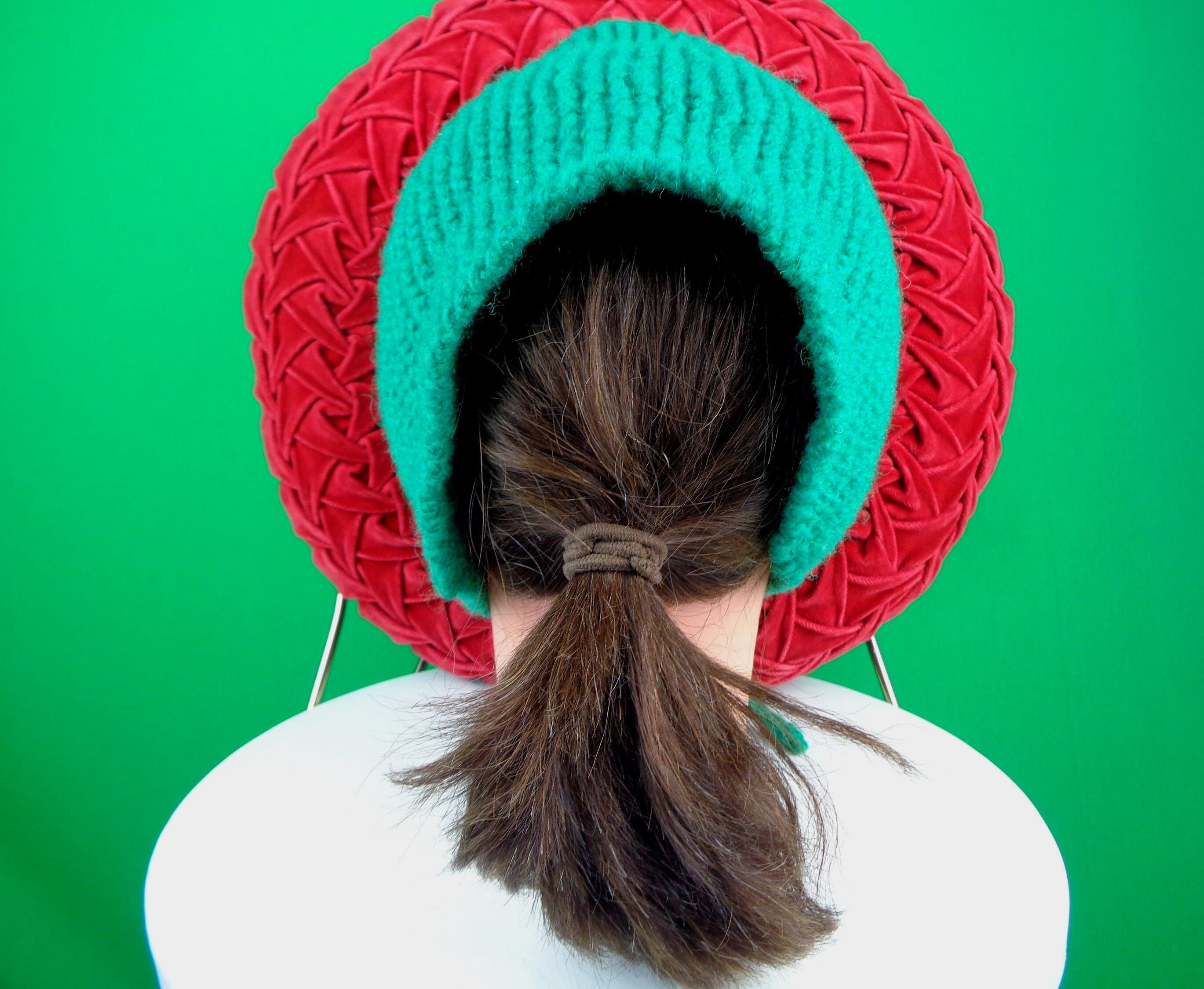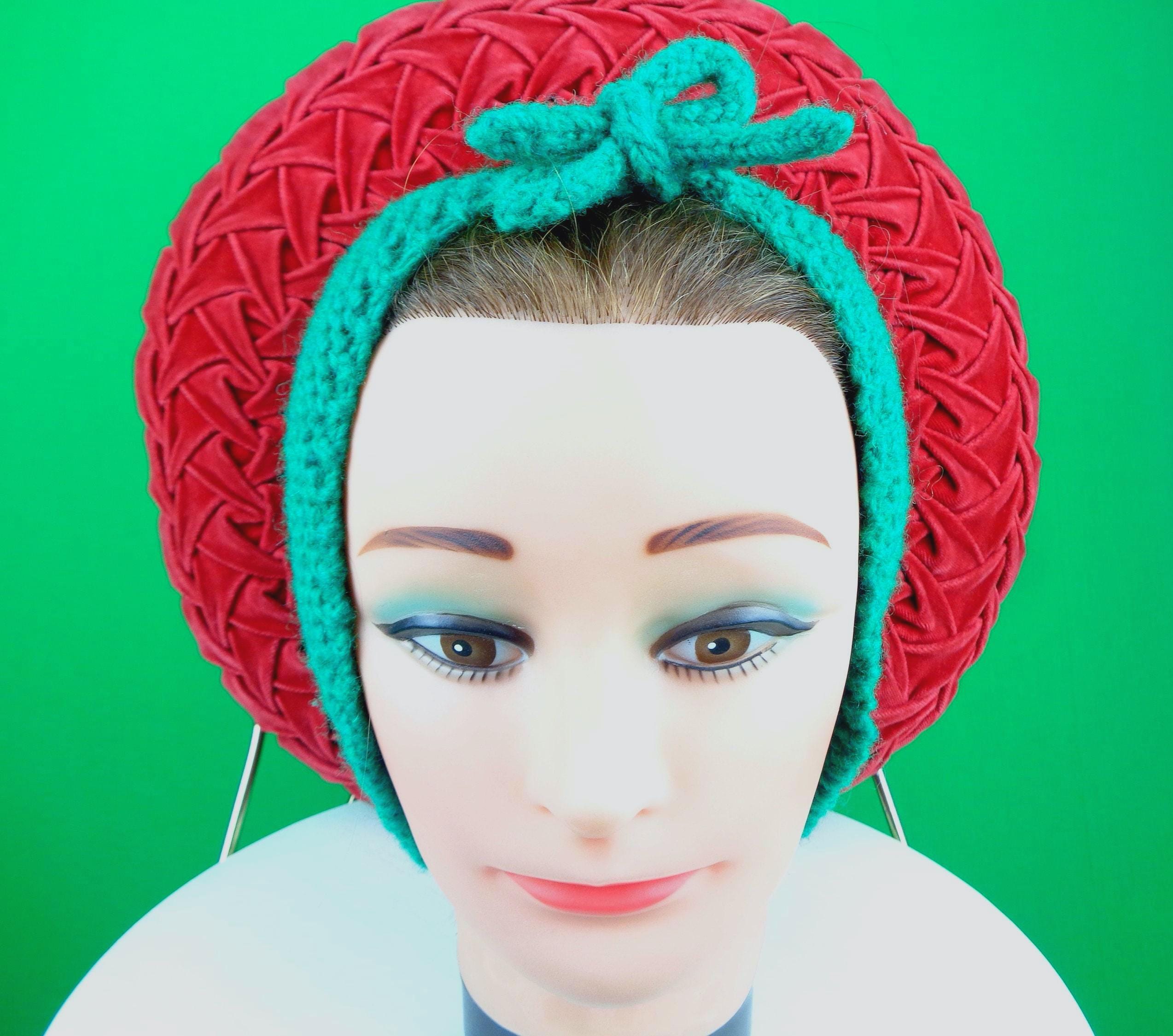 This lovely vibrant retro style cable knit head scarf, ear warmer.