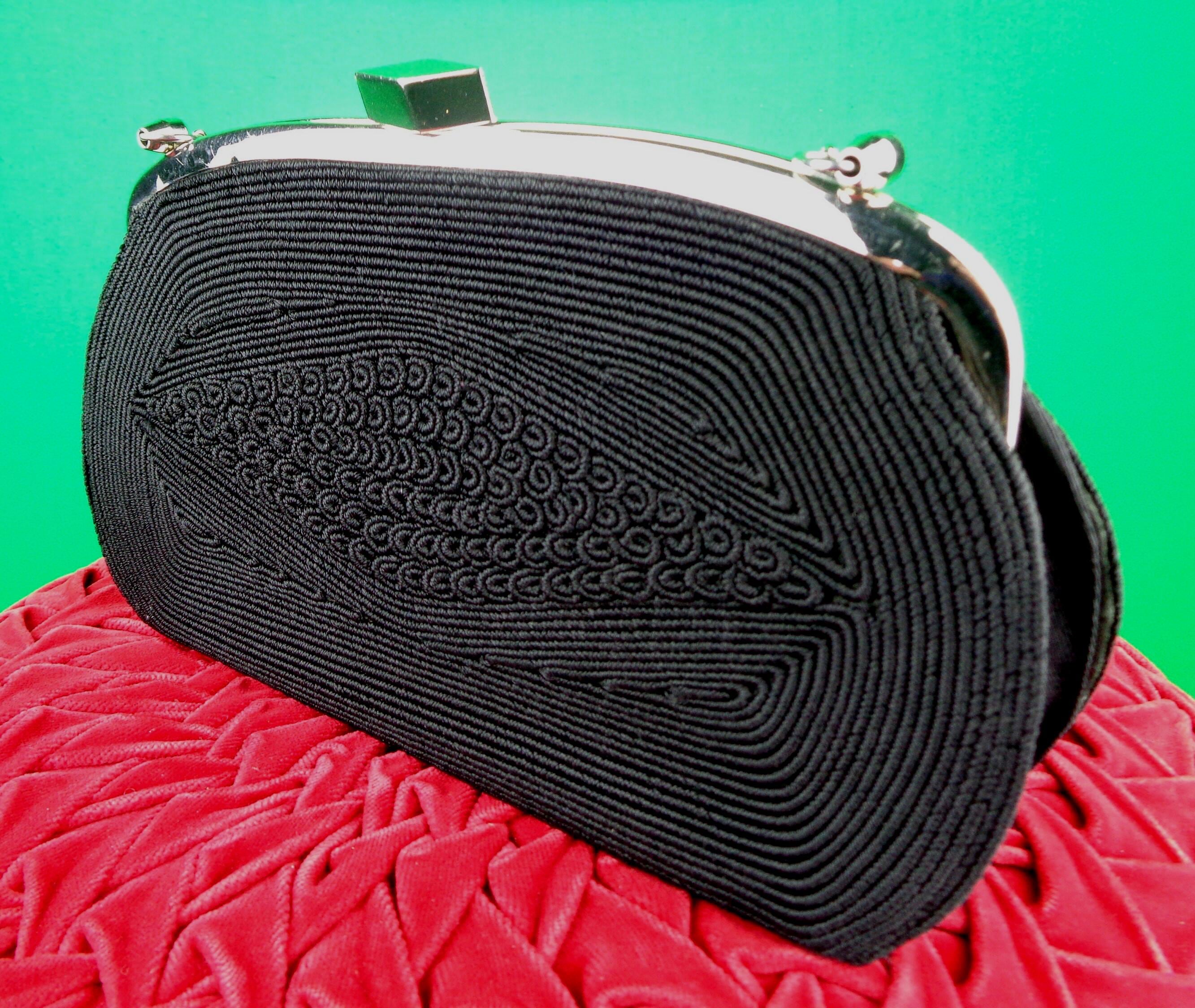 This lovely vibrant elegant 1940s 50s corde handbag, purse, chain clutch.
