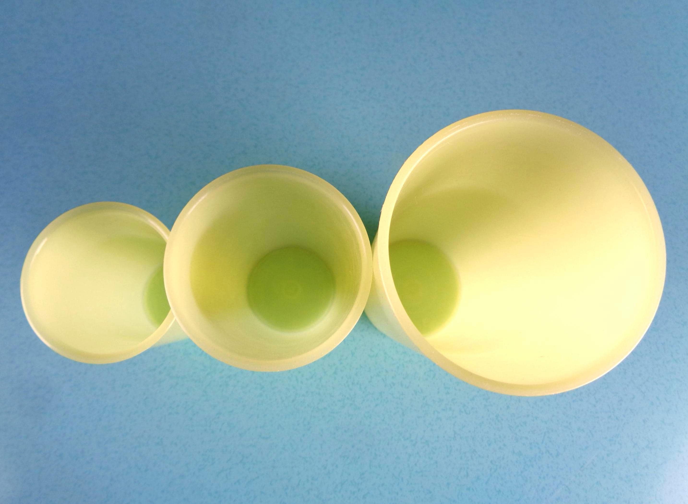 Feature 2 large cups, 3 small cups, 2 XS cups matching set! Looking for a bright way to liven up any occasion or collection! Great pieces!