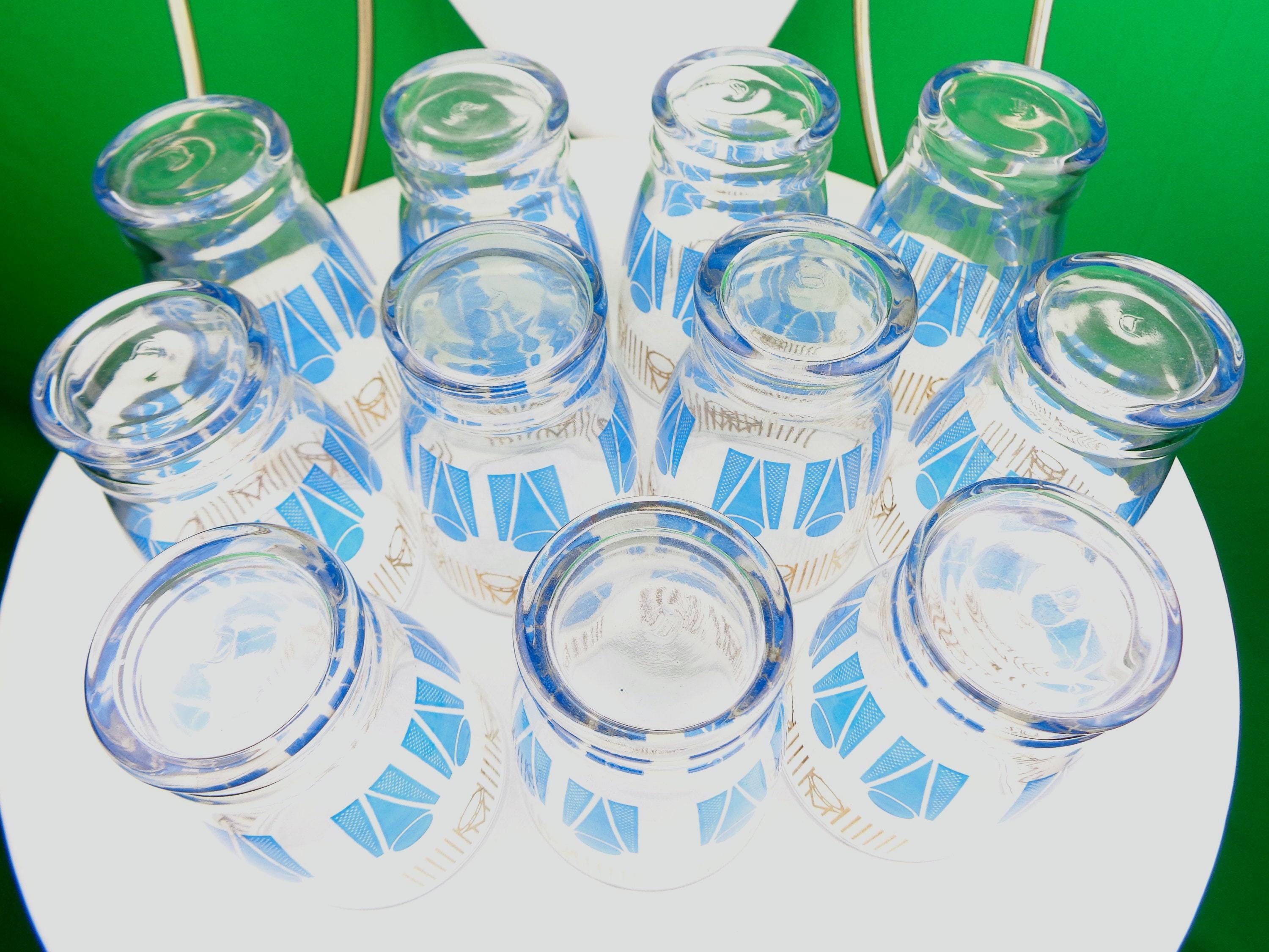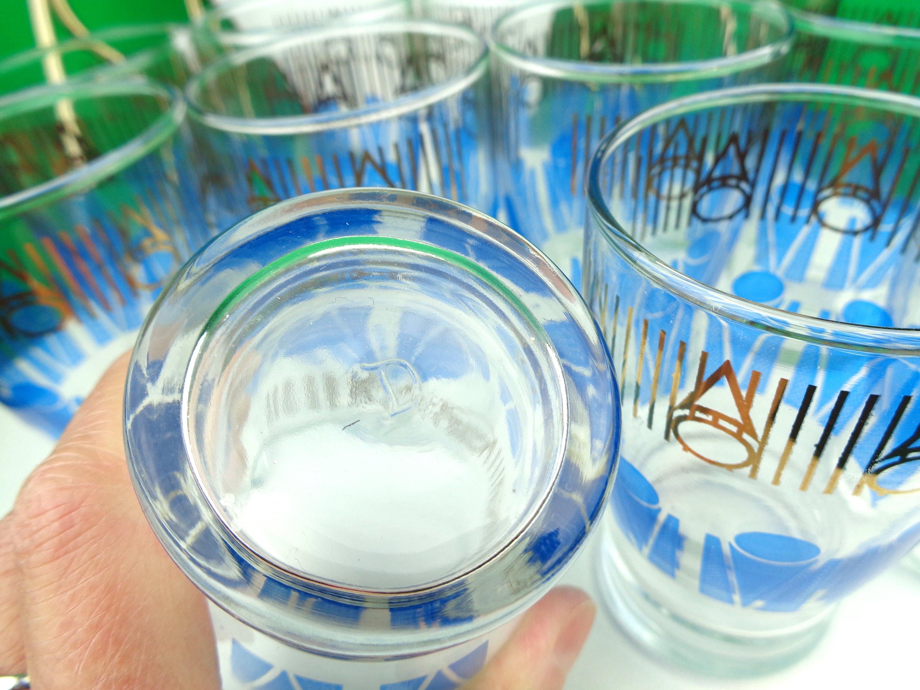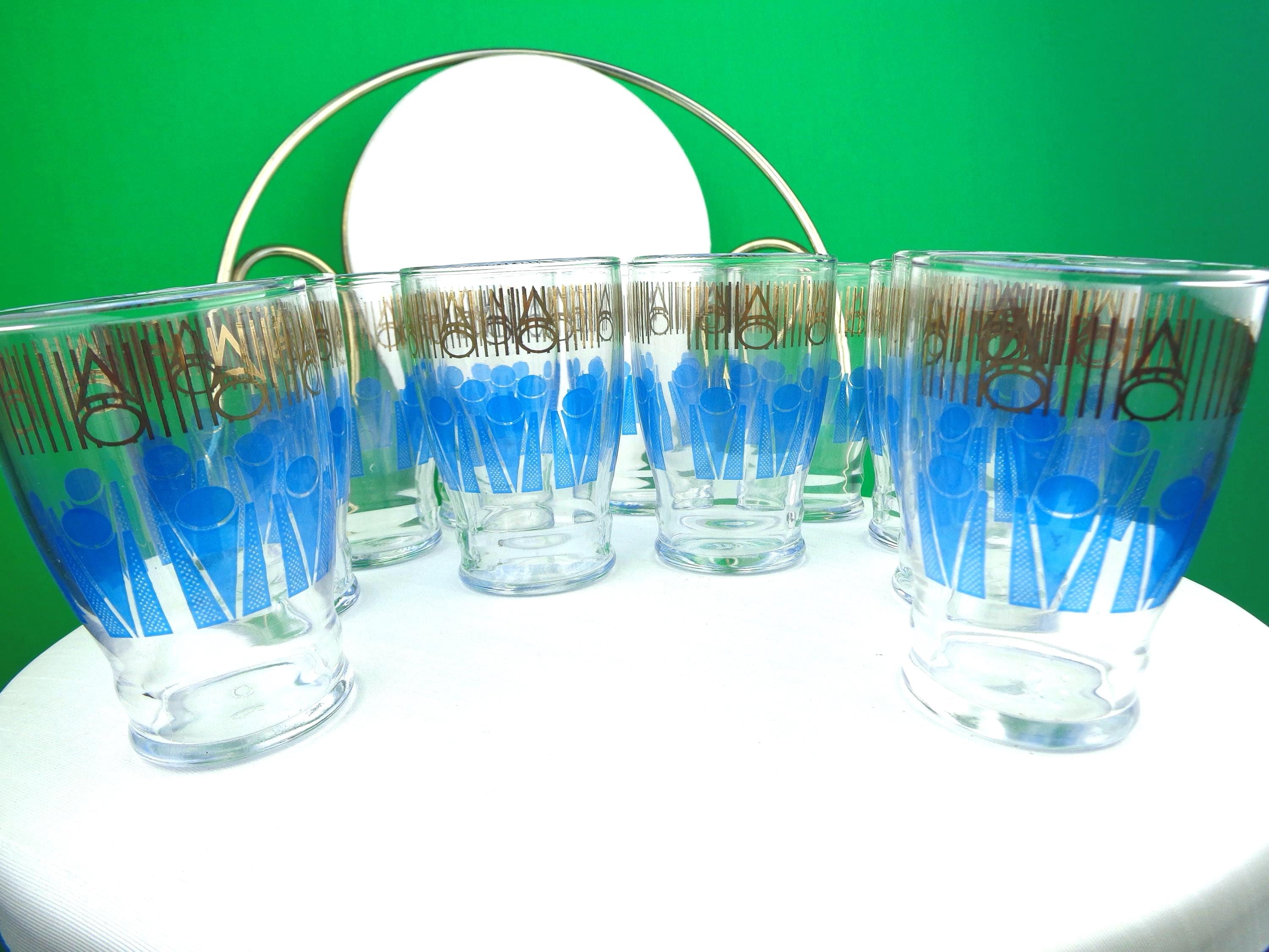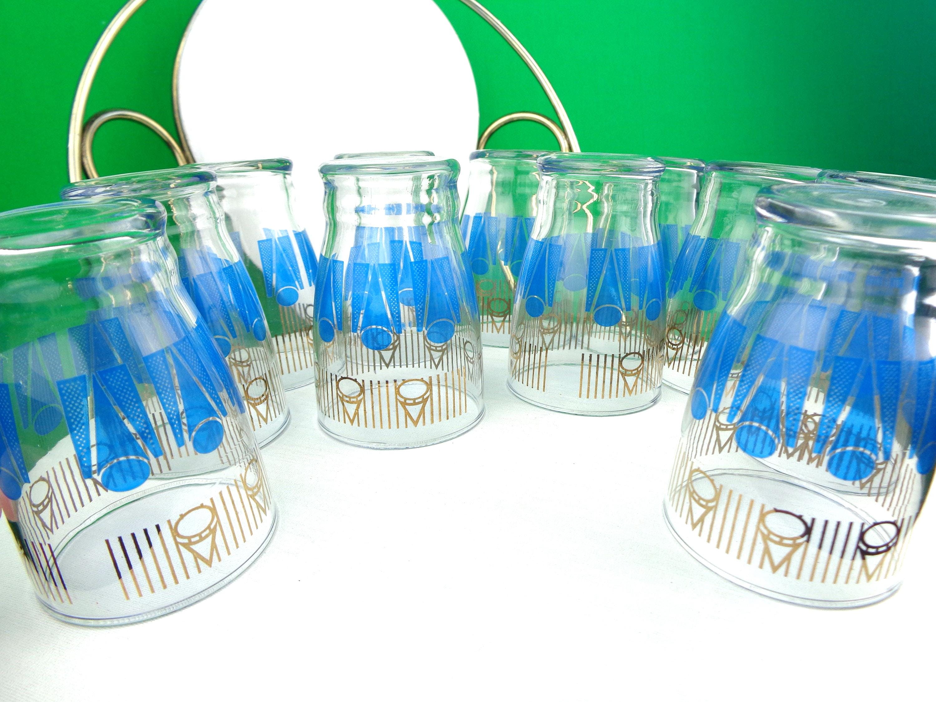 These lovely vibrant 1950s 60s MCM drinking glasses. Features 11 uniquely shaped top bubble rim, with a whimsical design, pattern throughout! Great pieces!