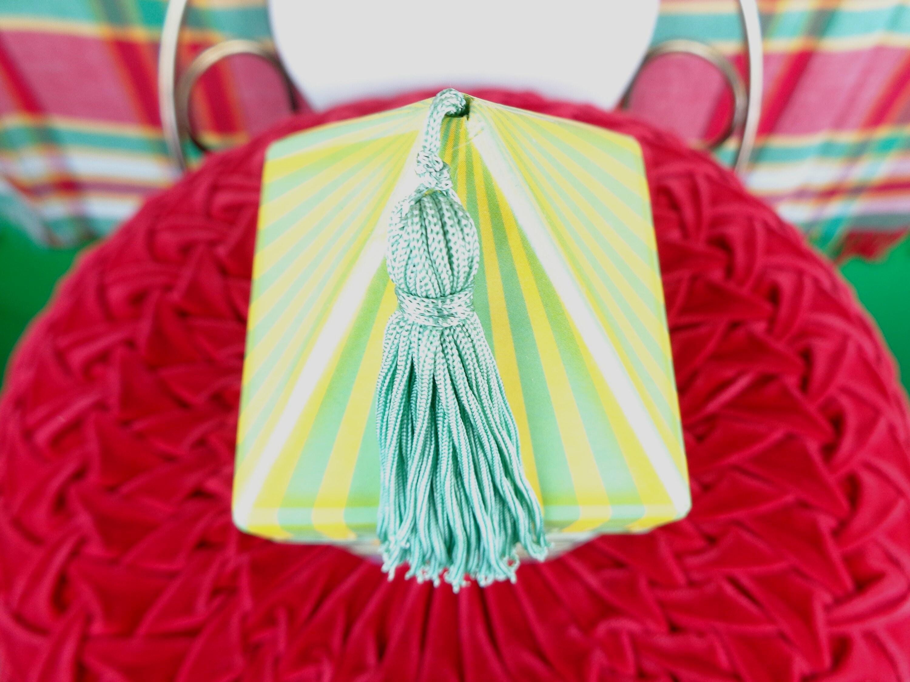 This lovely unique storage box container. Features a tops tasseled decorative lid, with an all sided decorative Hawaiian theme! Great piece!