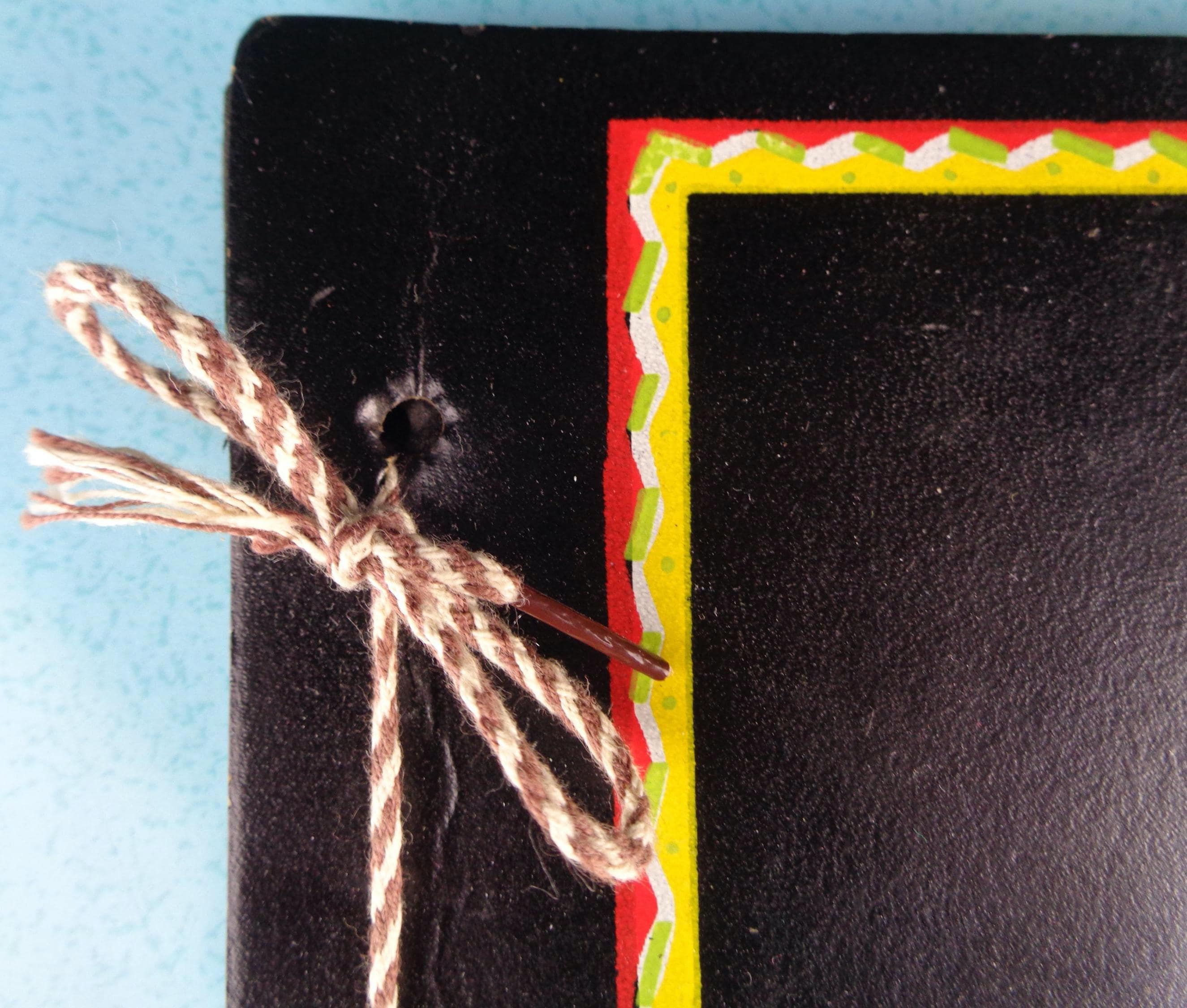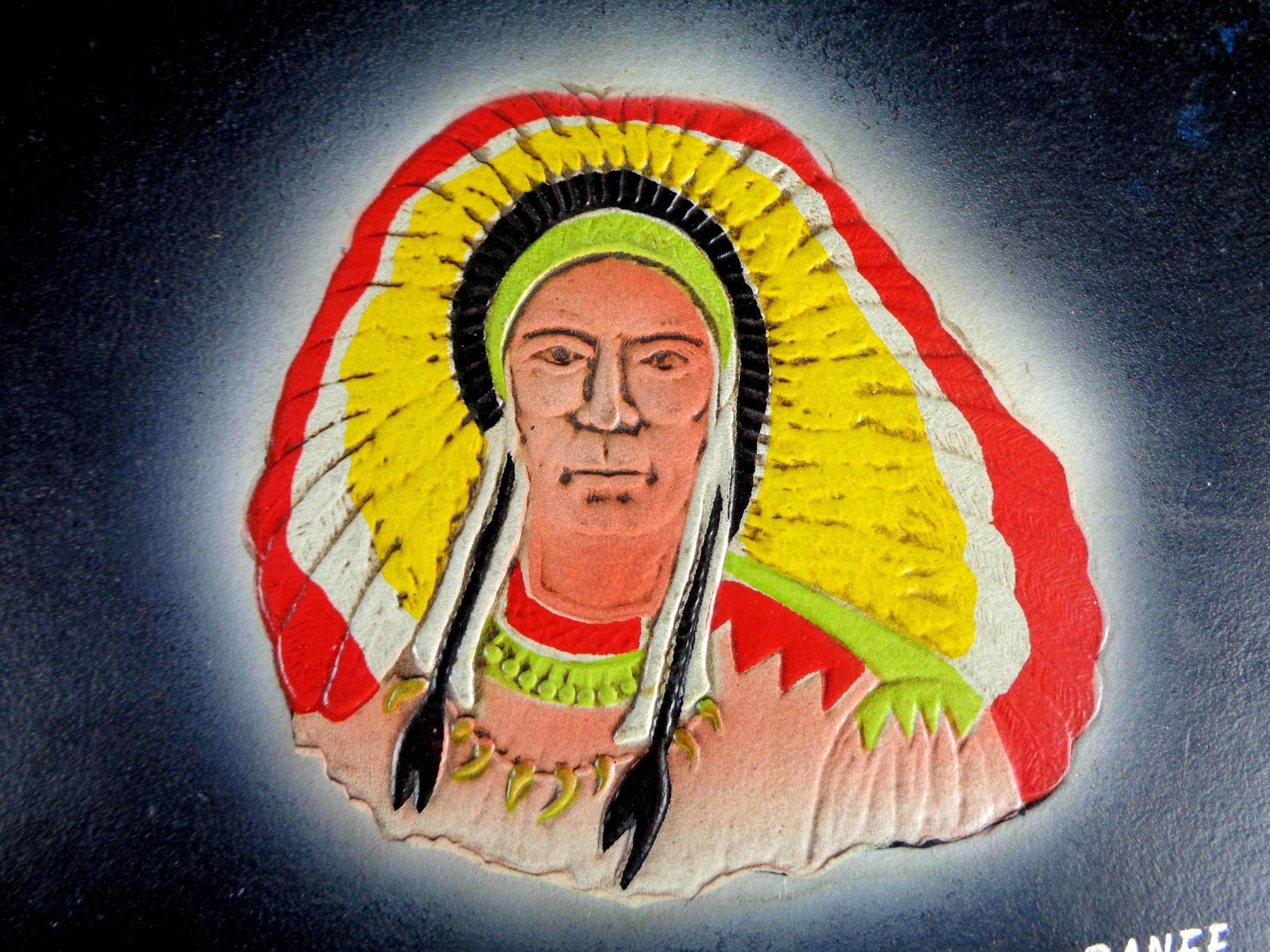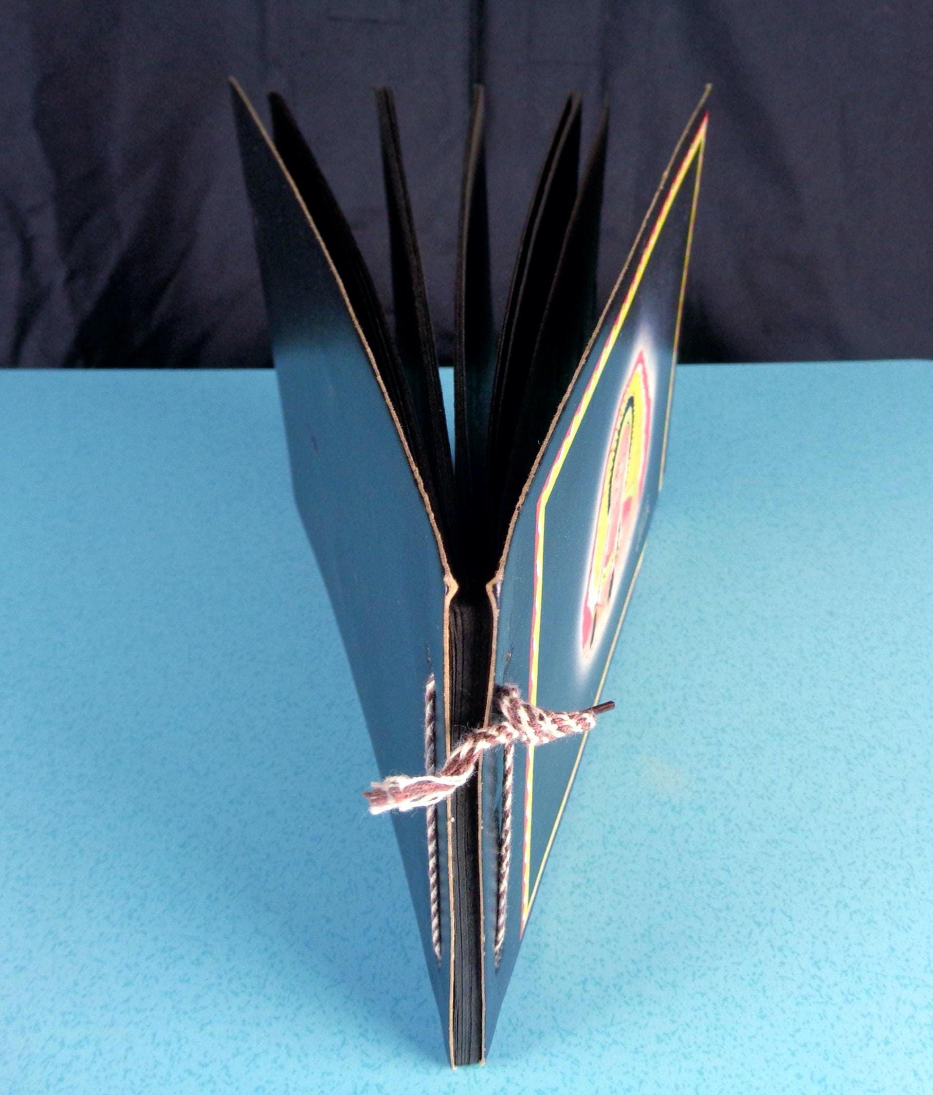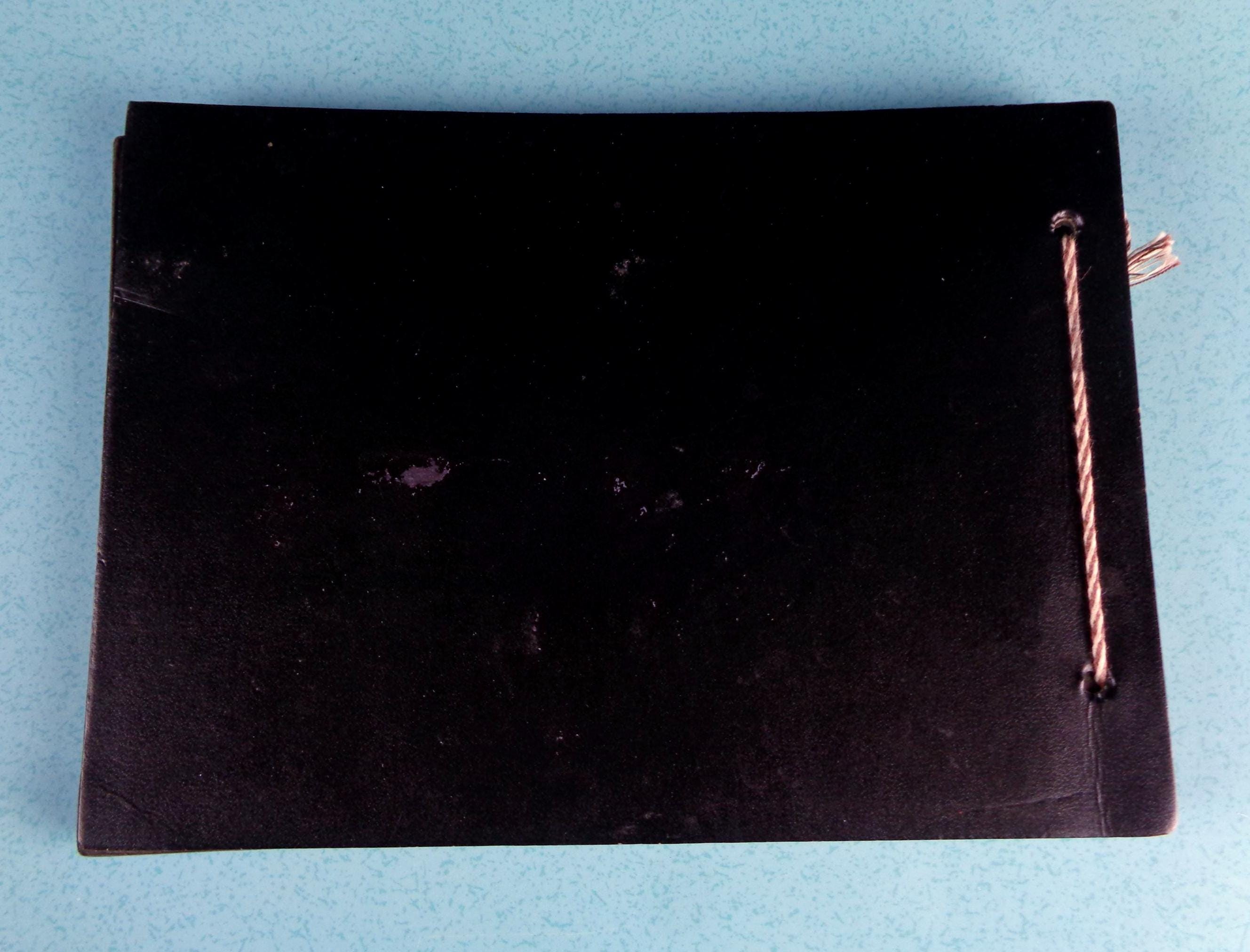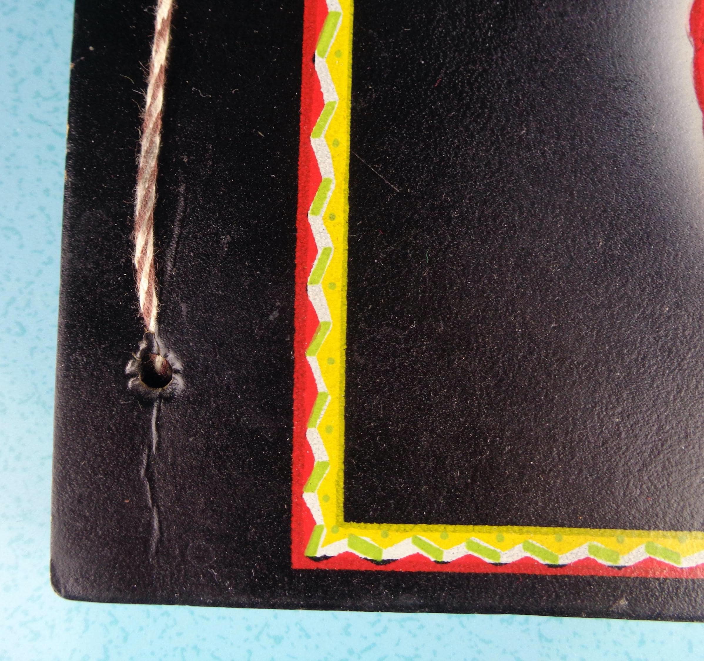 Features a tied spin, with 24 black pages, with 2 sides, a colorful, embossed Native head dress front page with boarder! Great piece!