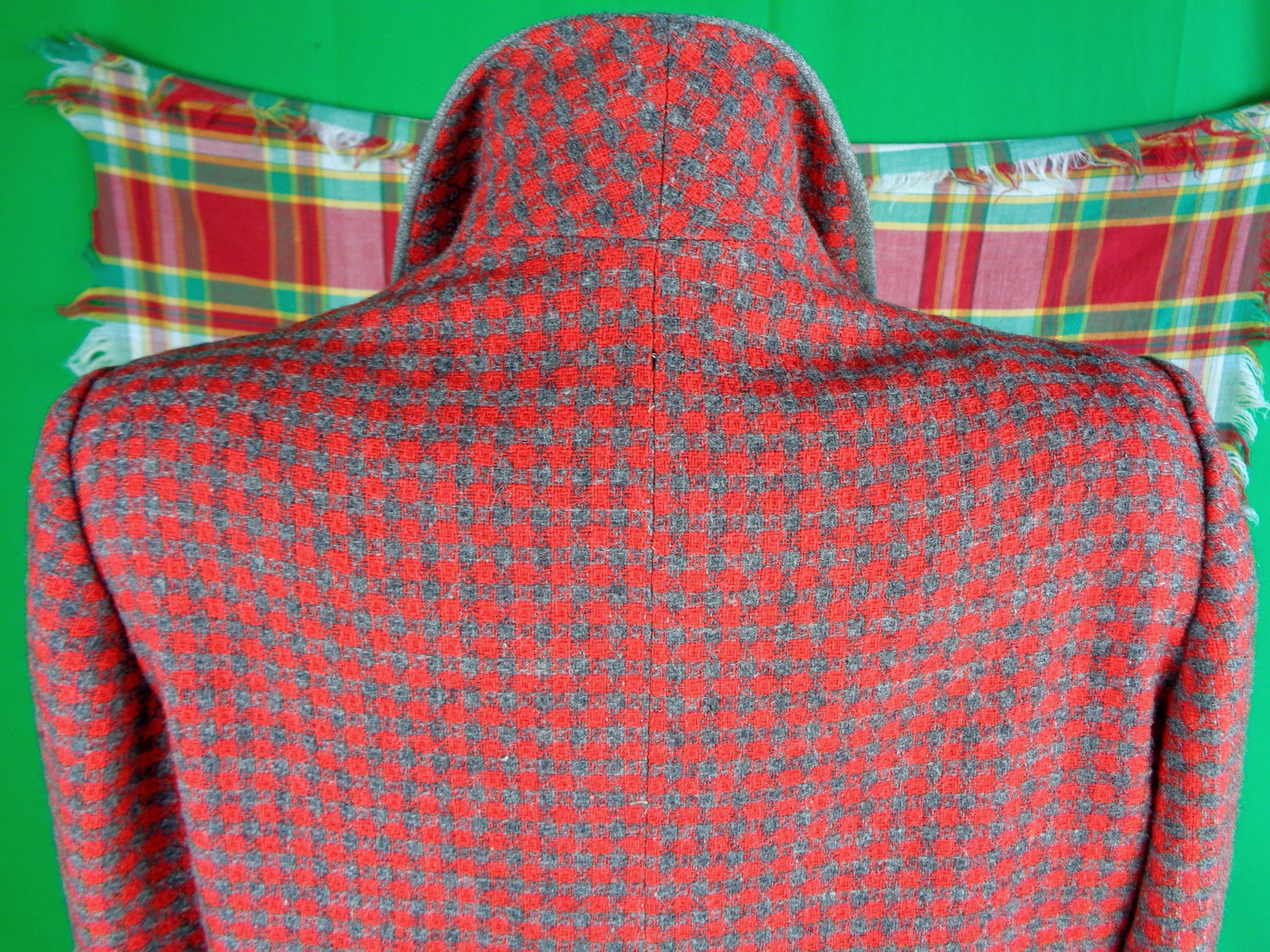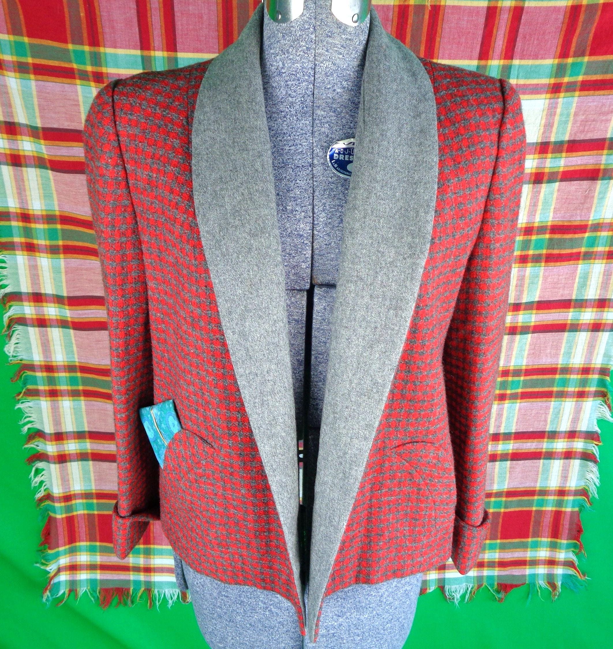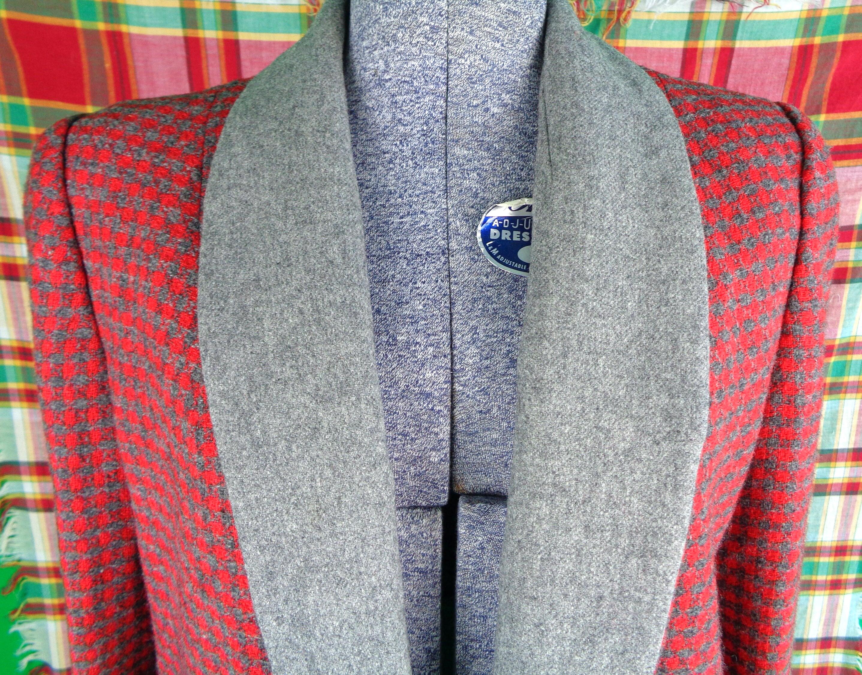 Features a wide drop shawl collar with matching cuffs, 2 deep side moon shape pockets, 2 side decorative buttons, puff shoulders, lined, checkered pattern, design, with sturdy fabric, material throughout! Great compliment piece!