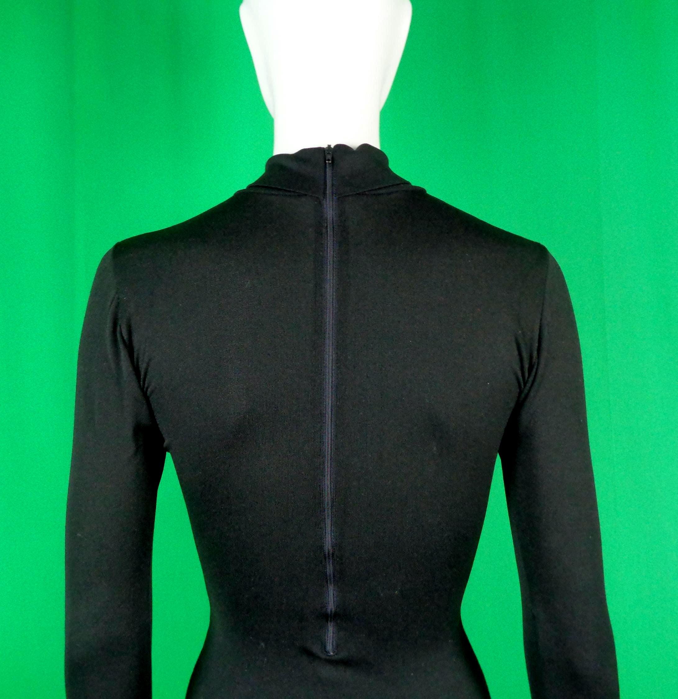 This lovely stylish 1980s retro bodysuit. Features a rolled collar, long back nylon zipper, long sleeves, soft lightweight stretchy textured material, fabric throughout! Great compliment piece!
