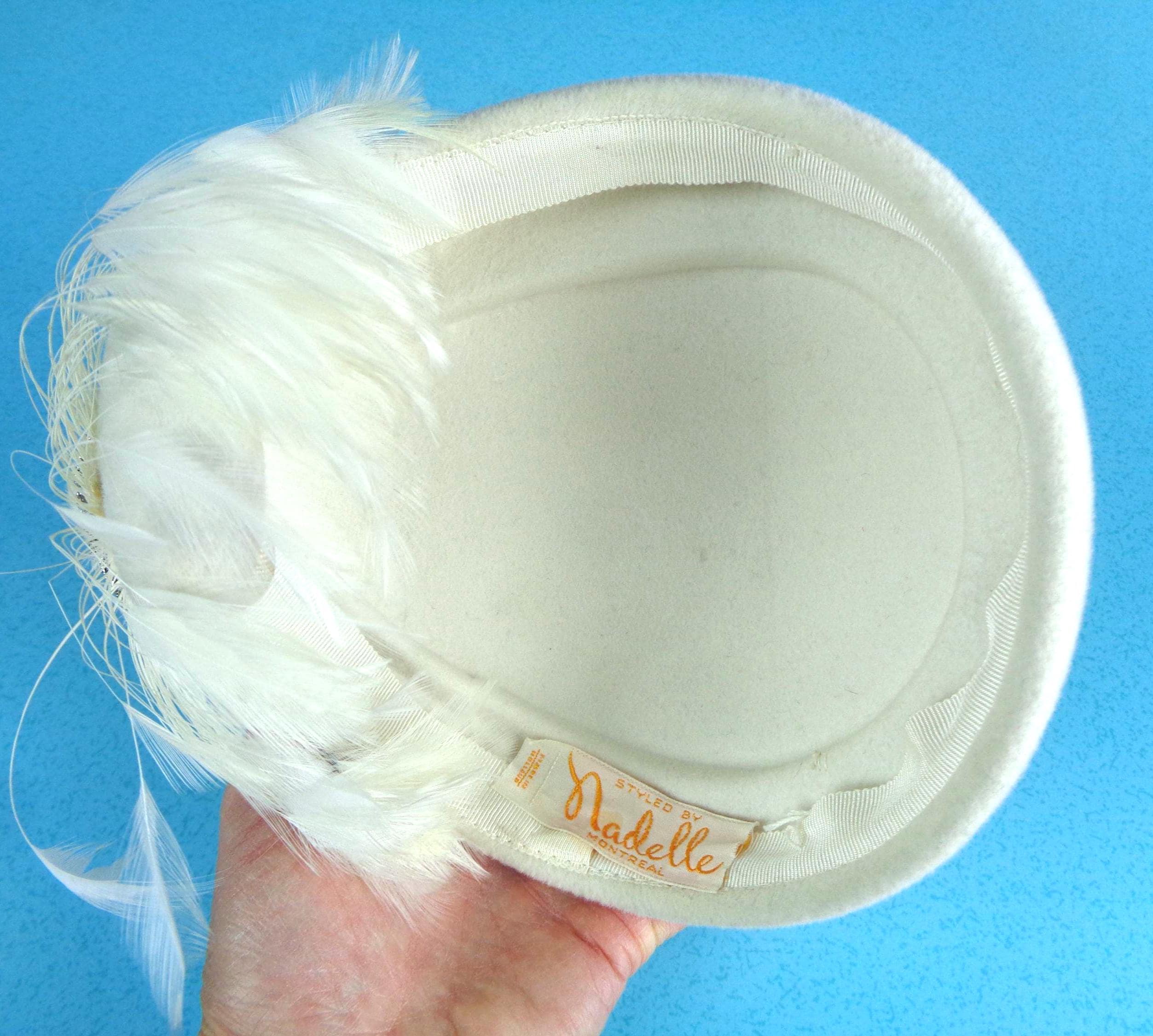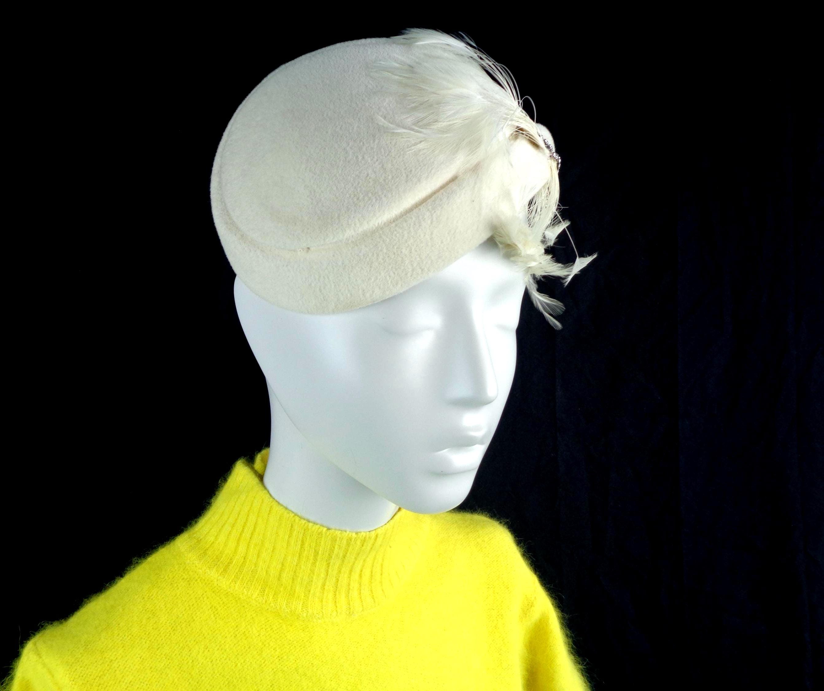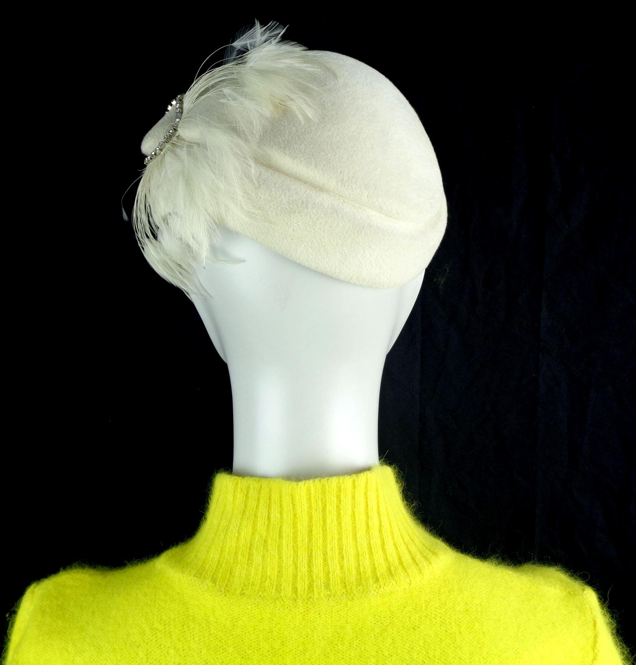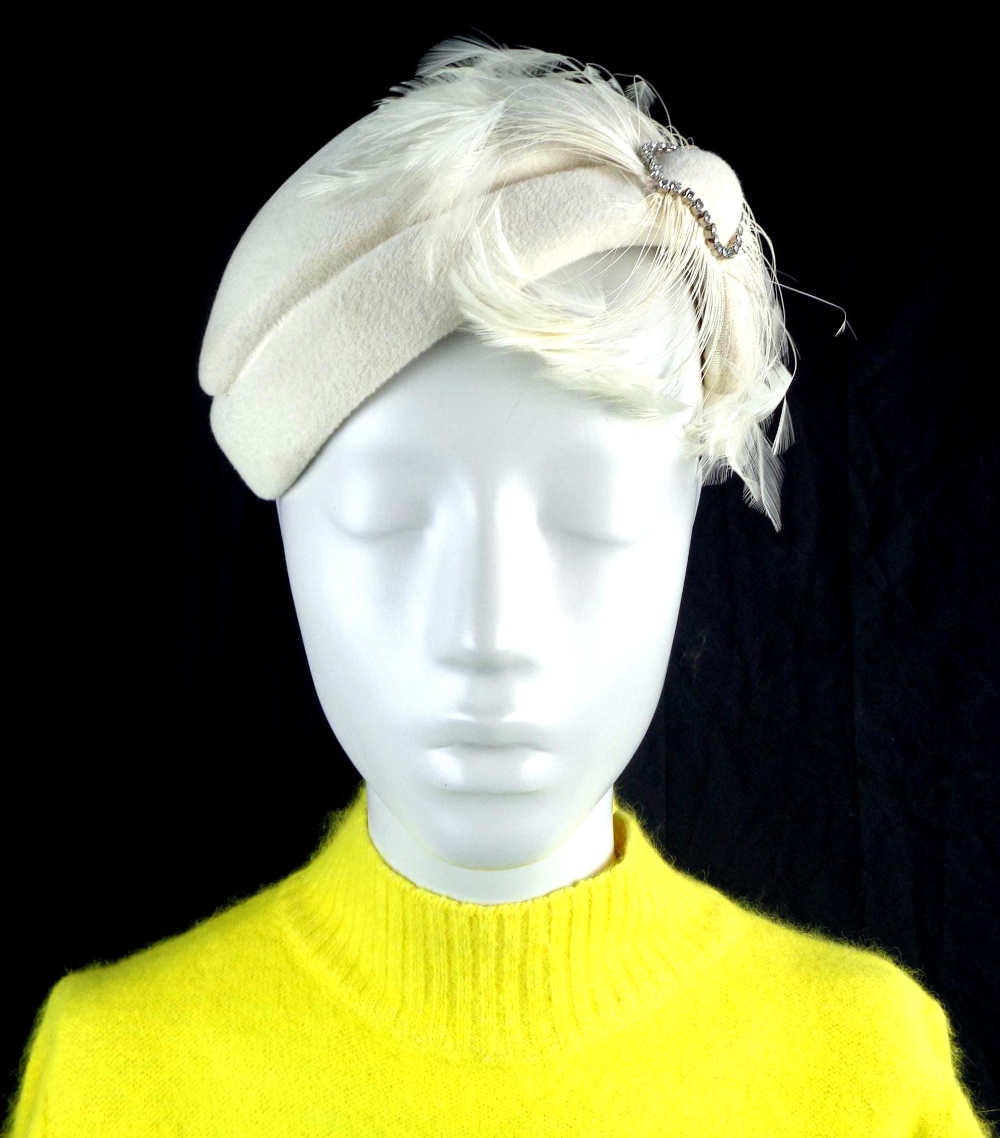 This lovely stylish 1940s 50s off white feather mini half fascinator clamp hat.