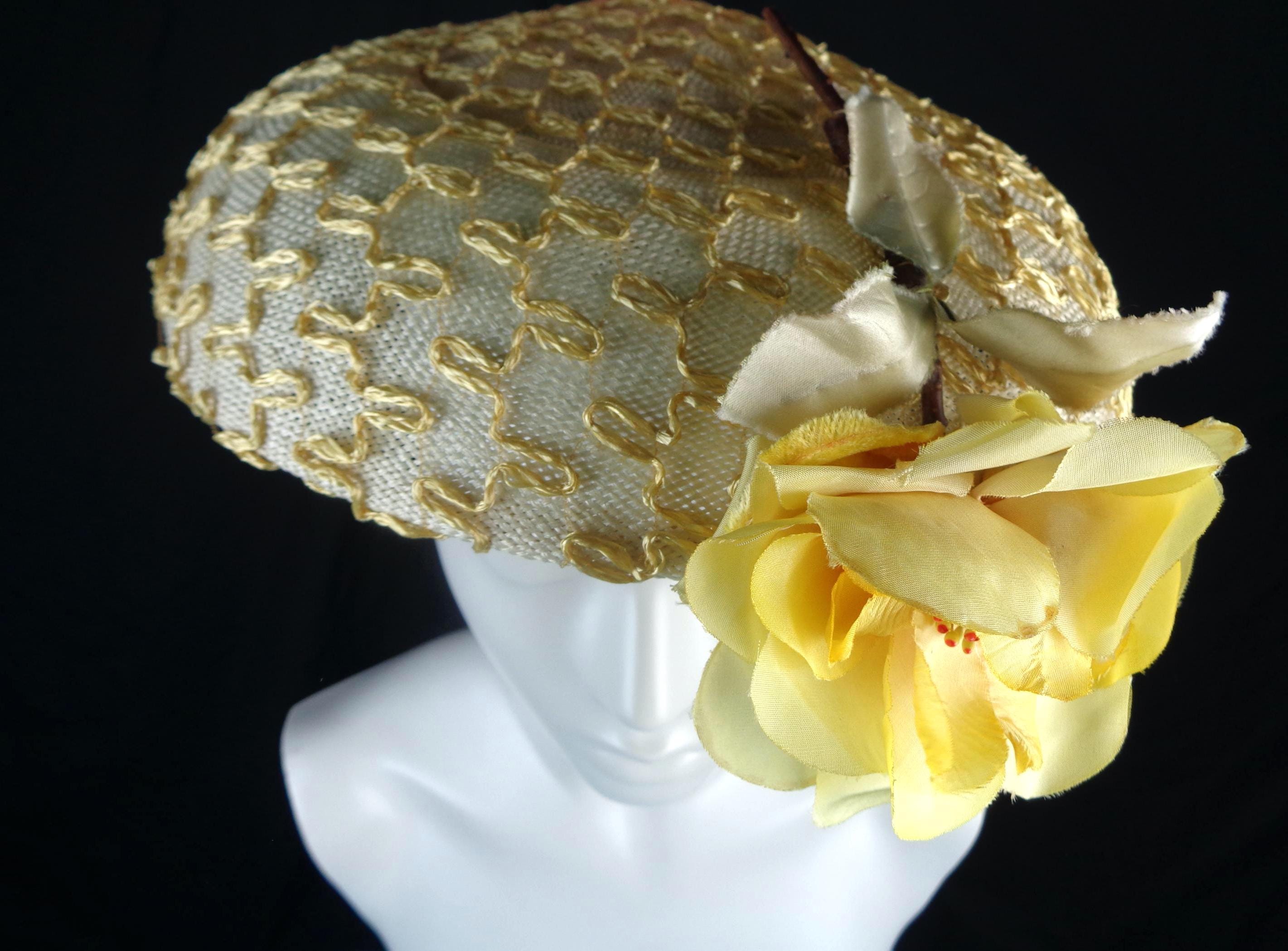 Features a large decorative full rose, with a 2 tier layered skull cap and brim, along the top has a fine woven, unique swirl pattern, design throughout!