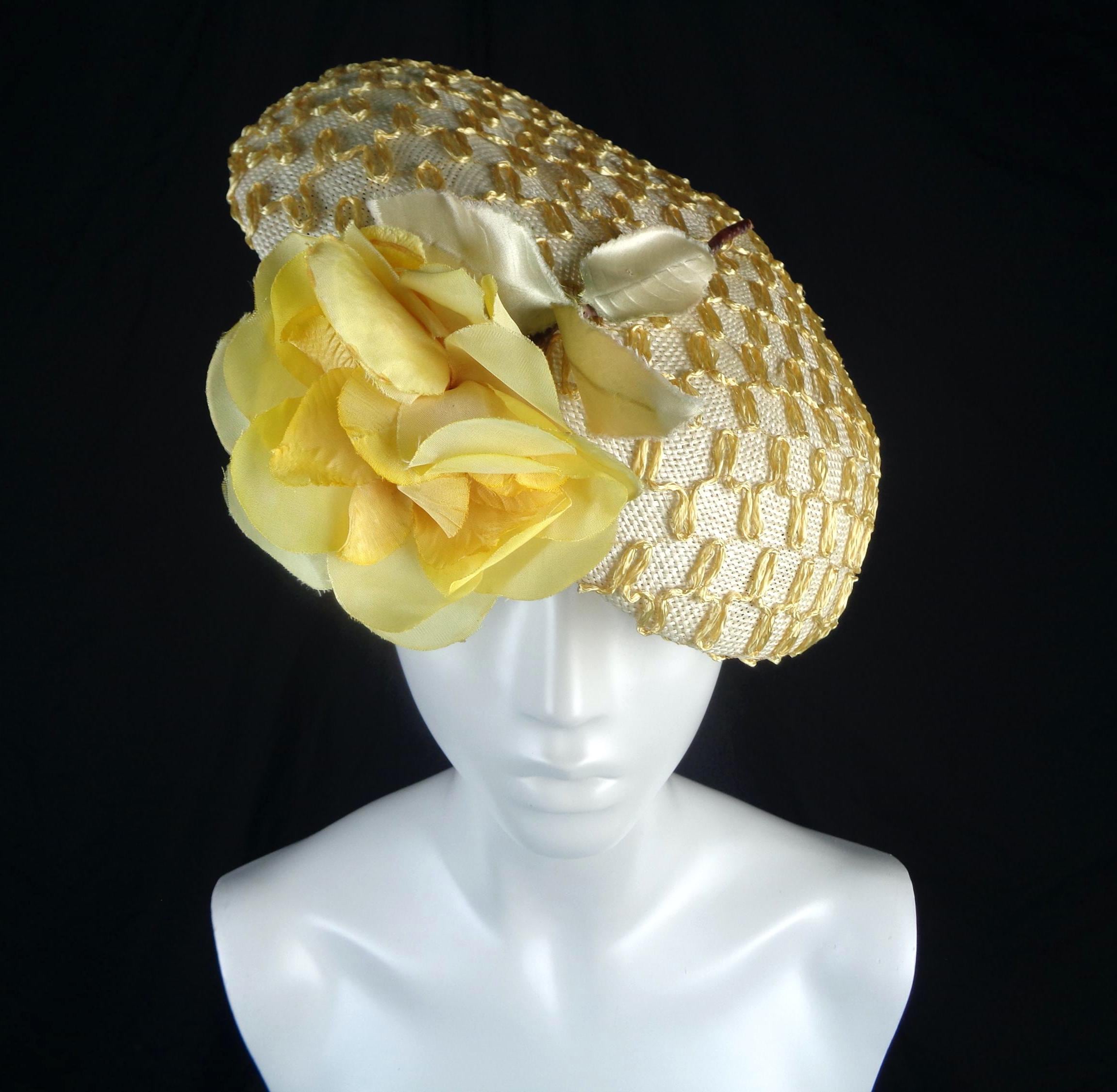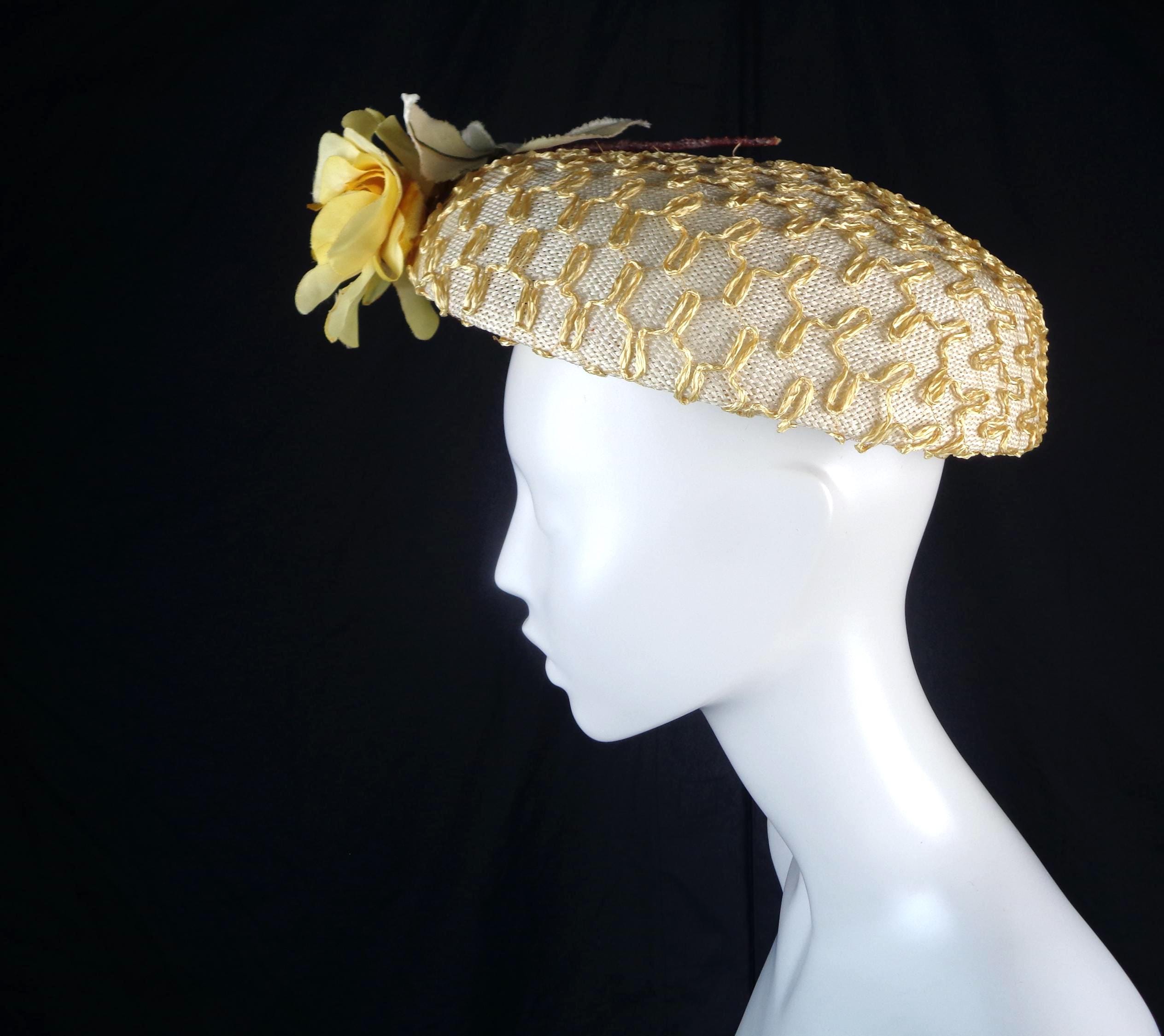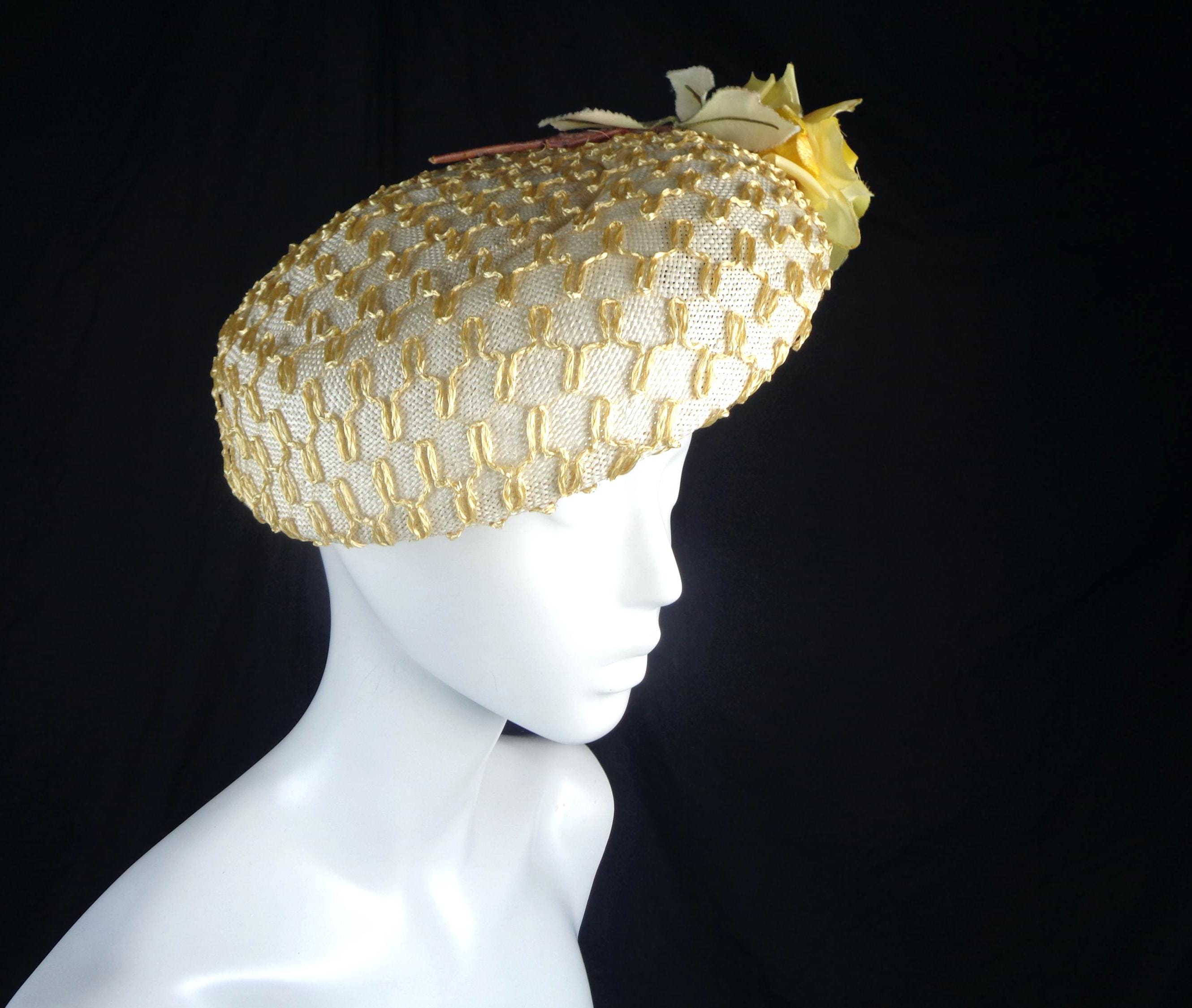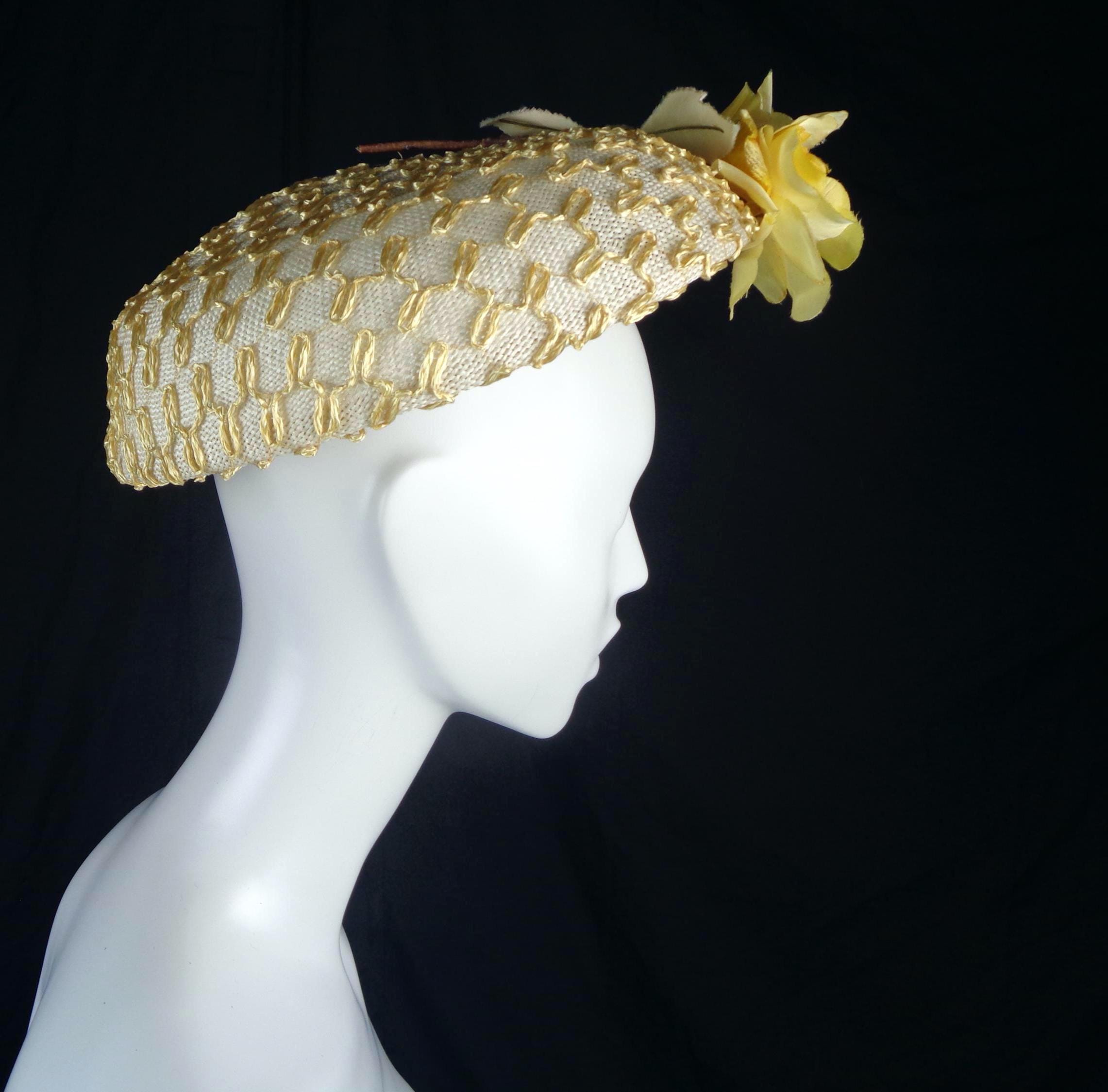 This lovely elegant, stylish 1940s 50s millinery straw, sun, capulet hat.