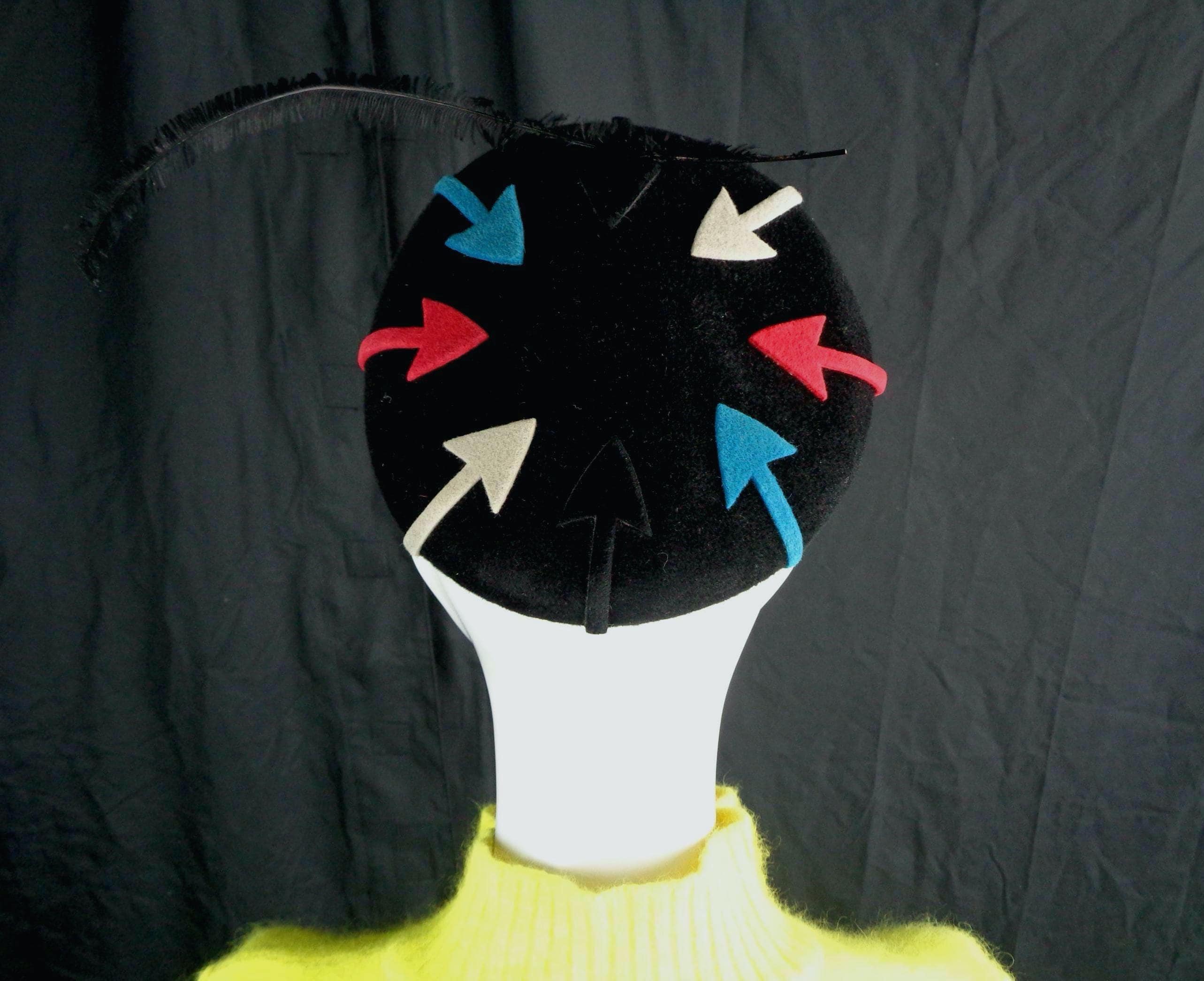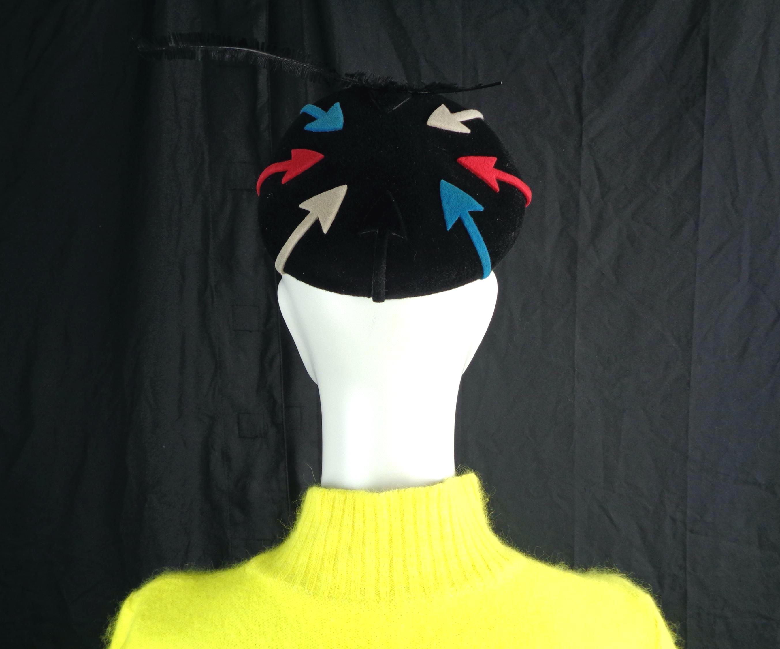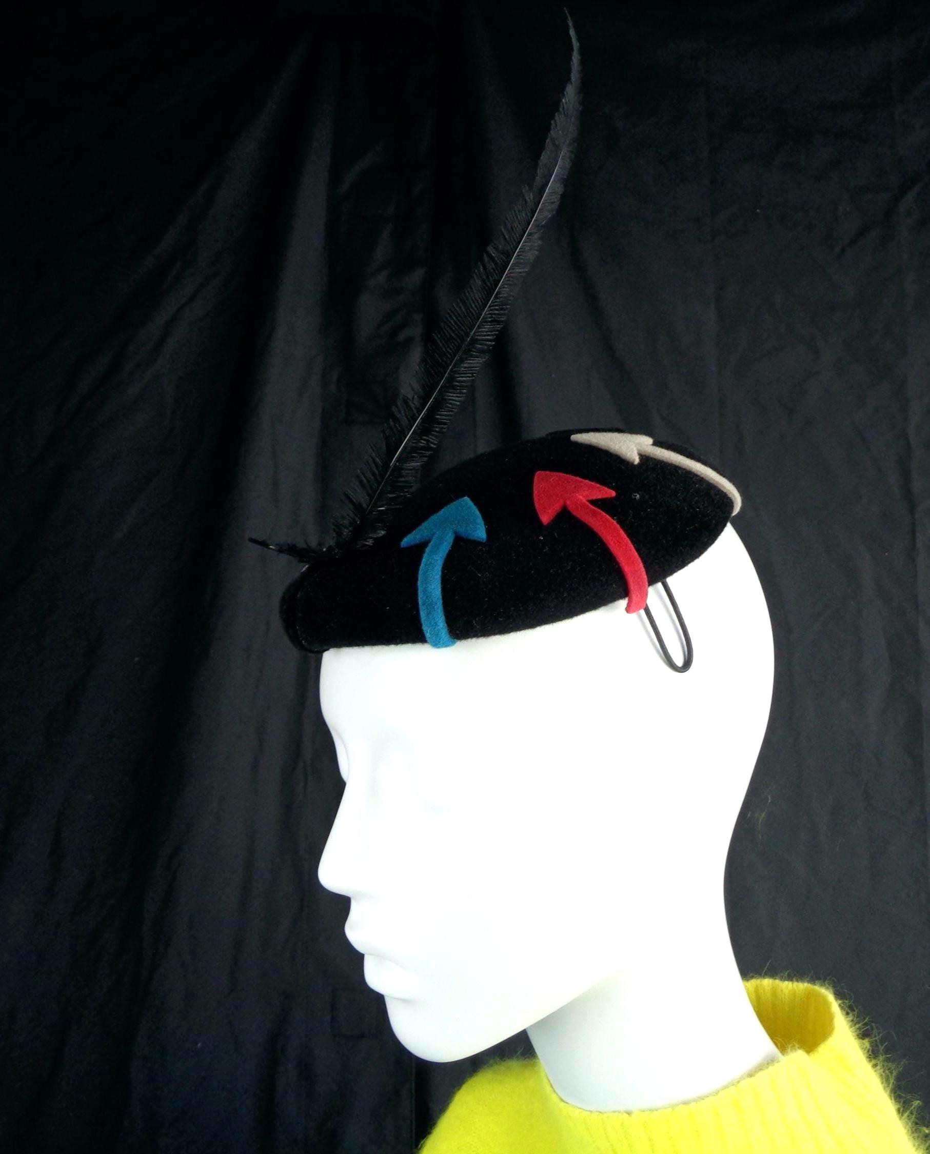 Features a long dainty side decorative feather with 8 designed arrows that surround the top, with 2 sculpted wires loops to hold the hat in place, with ultra soft material throughout!