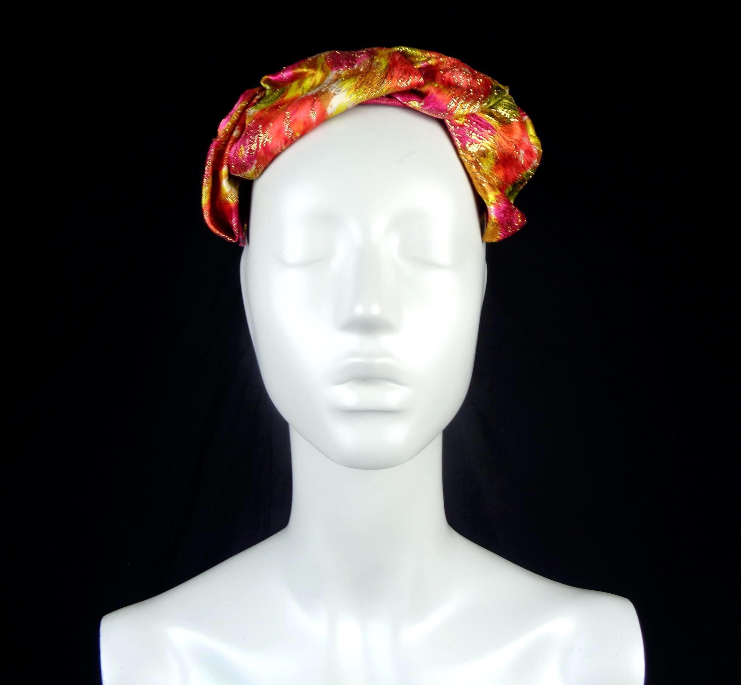 Features a cross design, with a floral glittery gold flex brocade woven into layered panels, overlapping the top, soft material throughout! Great compliment piece!