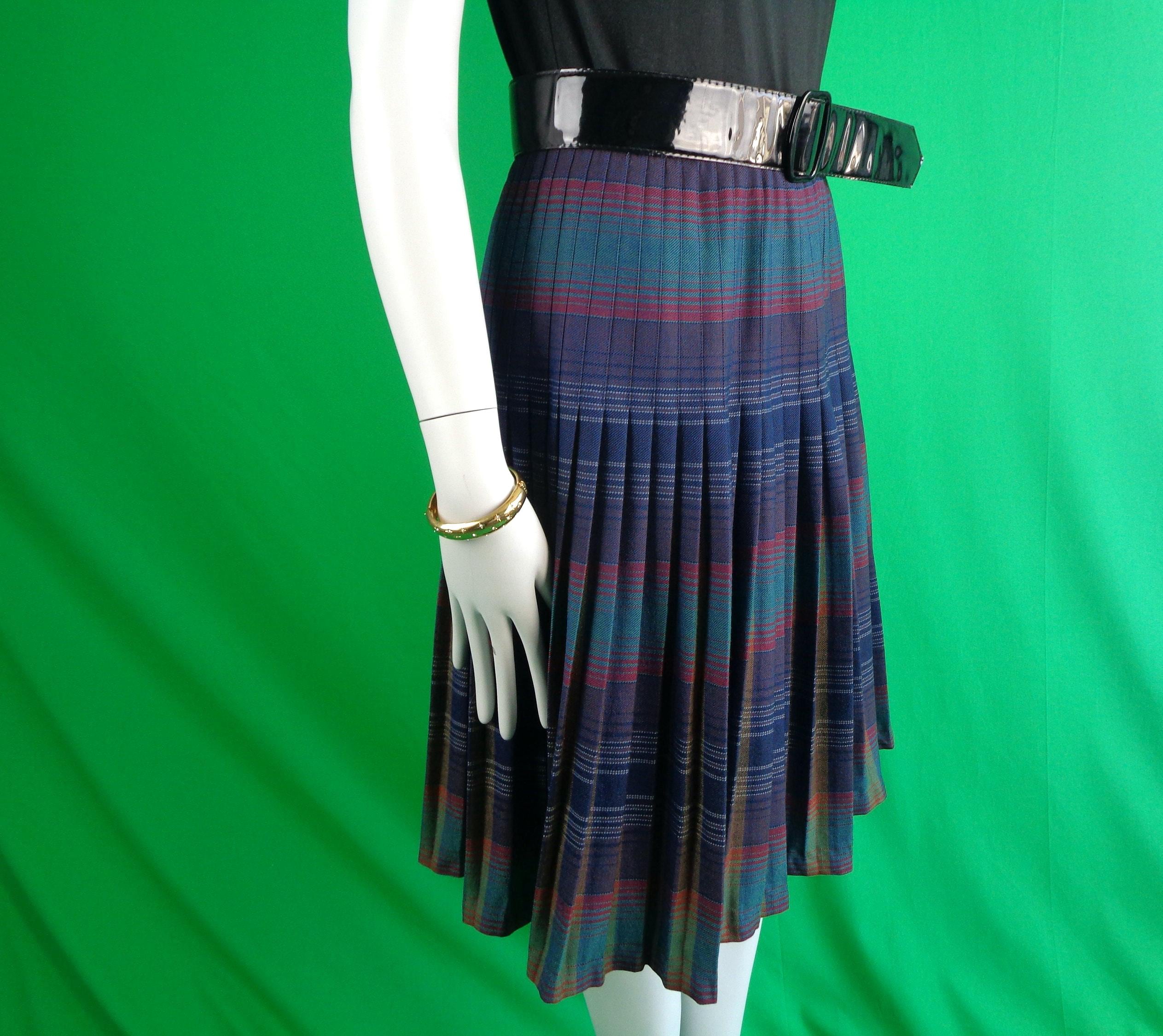 Features a top fly original button, a side metal zipper, razor pleating, uniquely crafted plaid pattern with a variety of deep colors, sturdy fabric, material throughout! Great compliment piece!