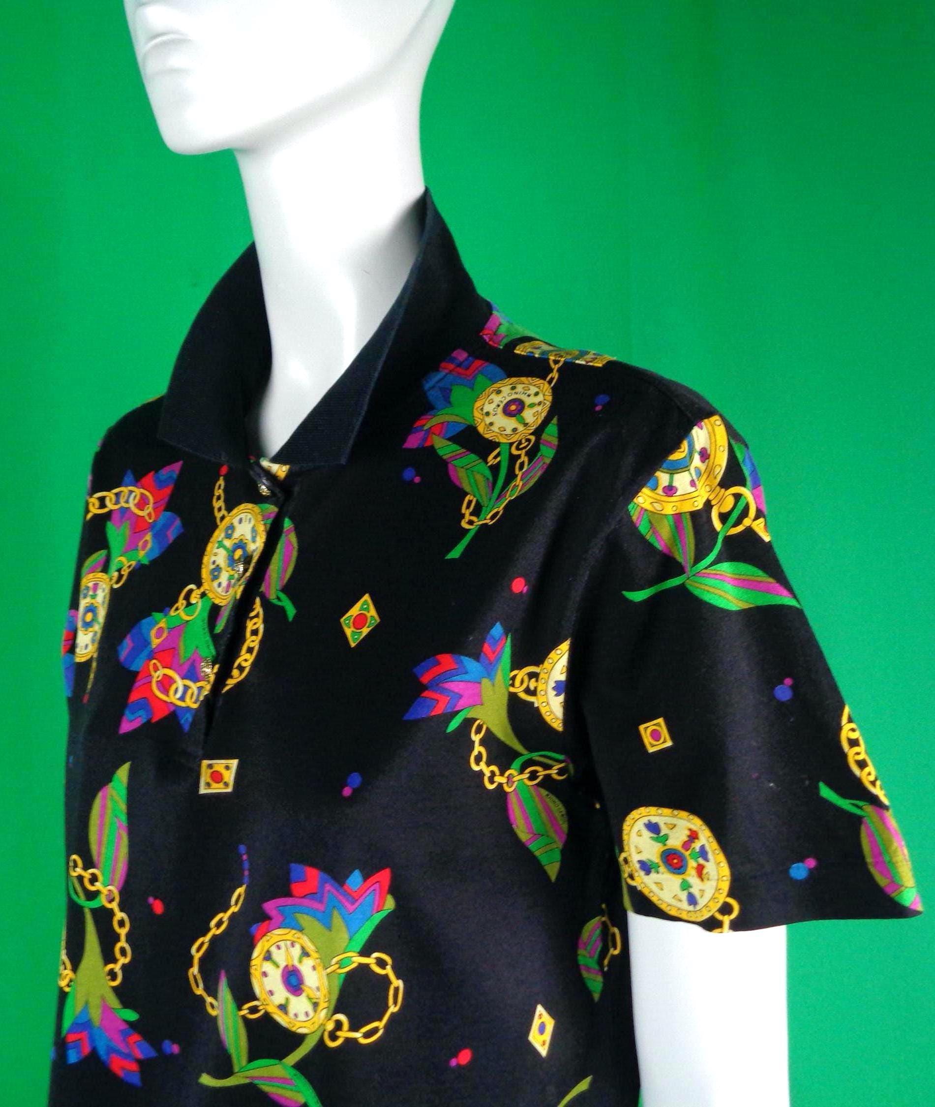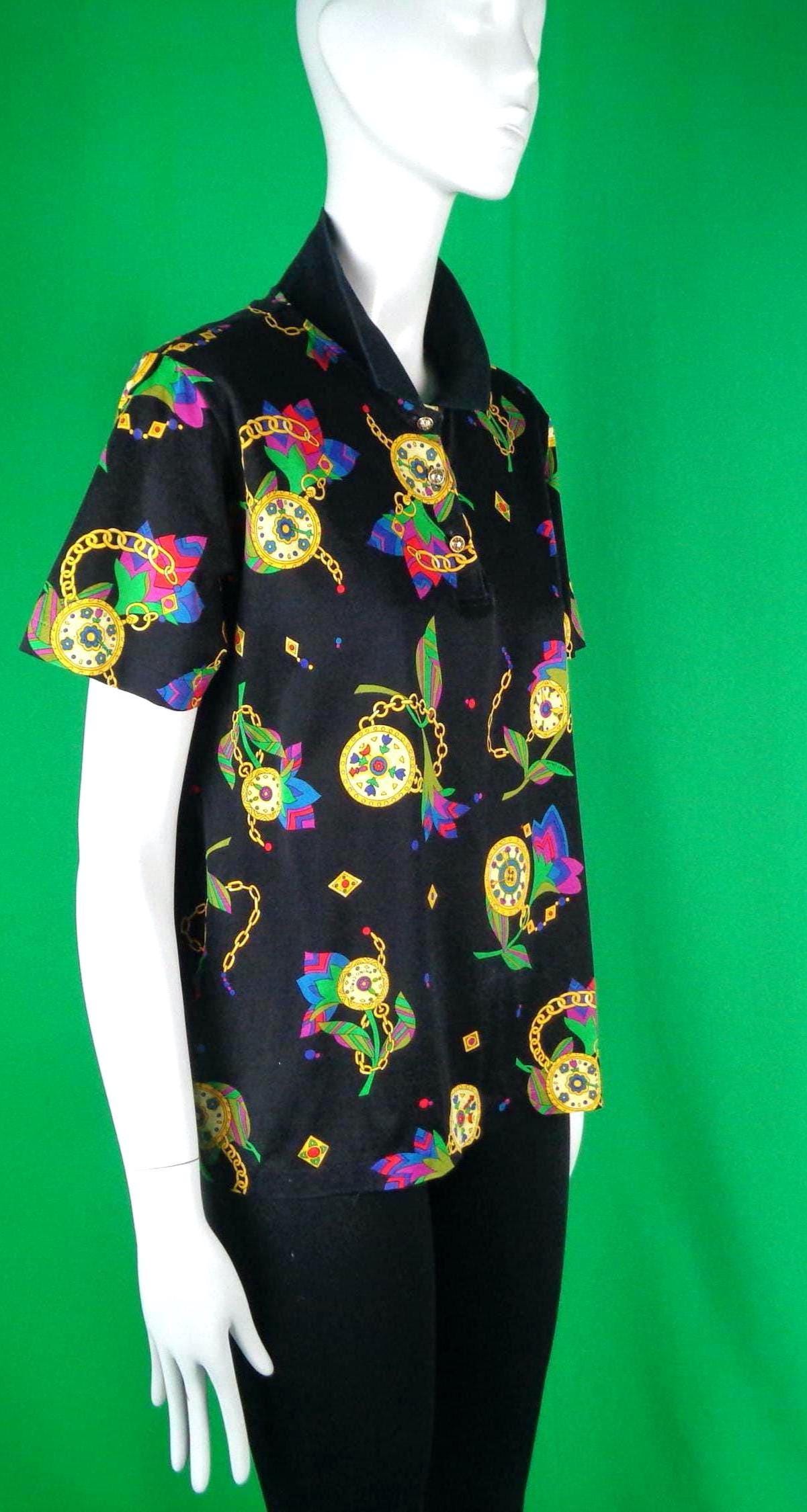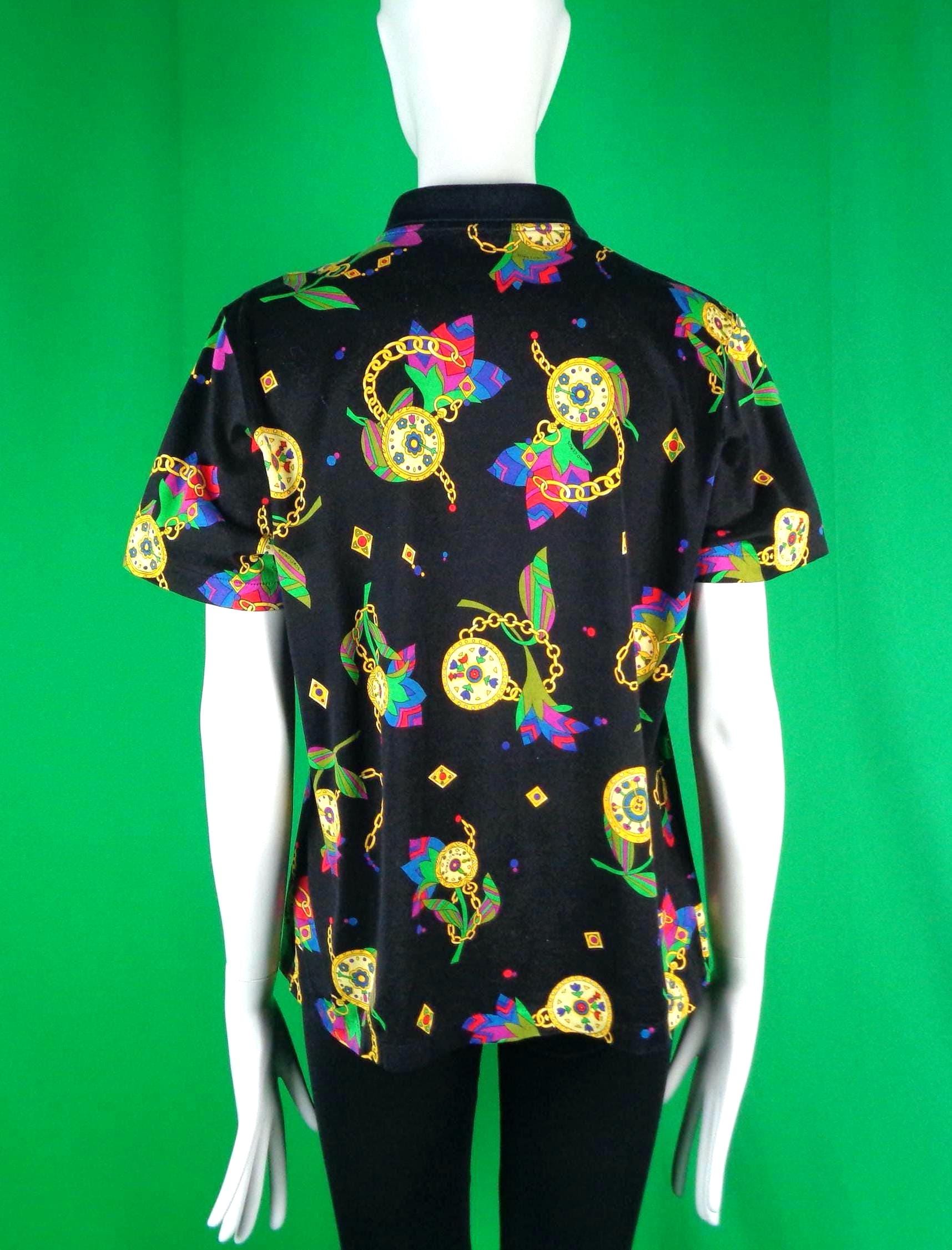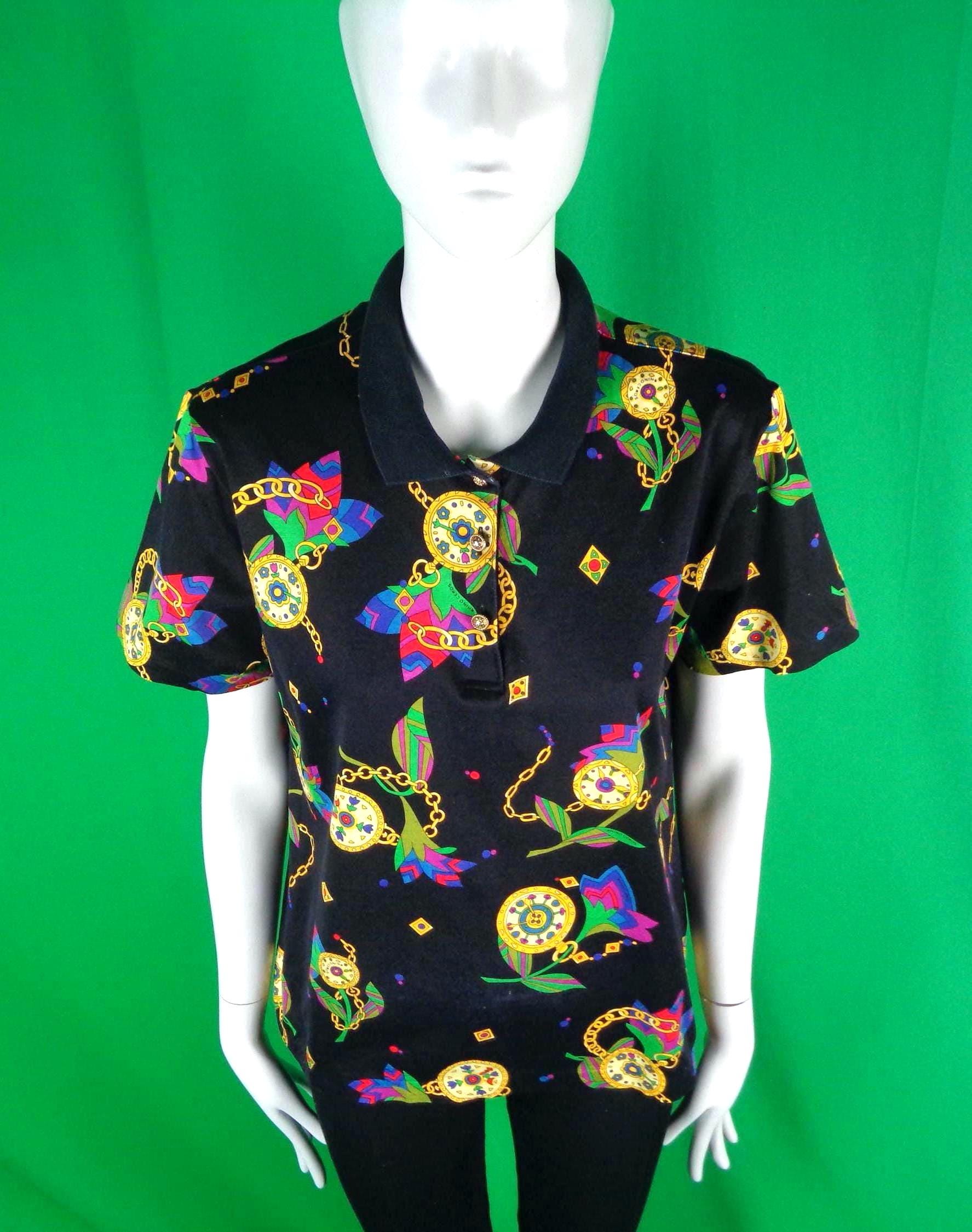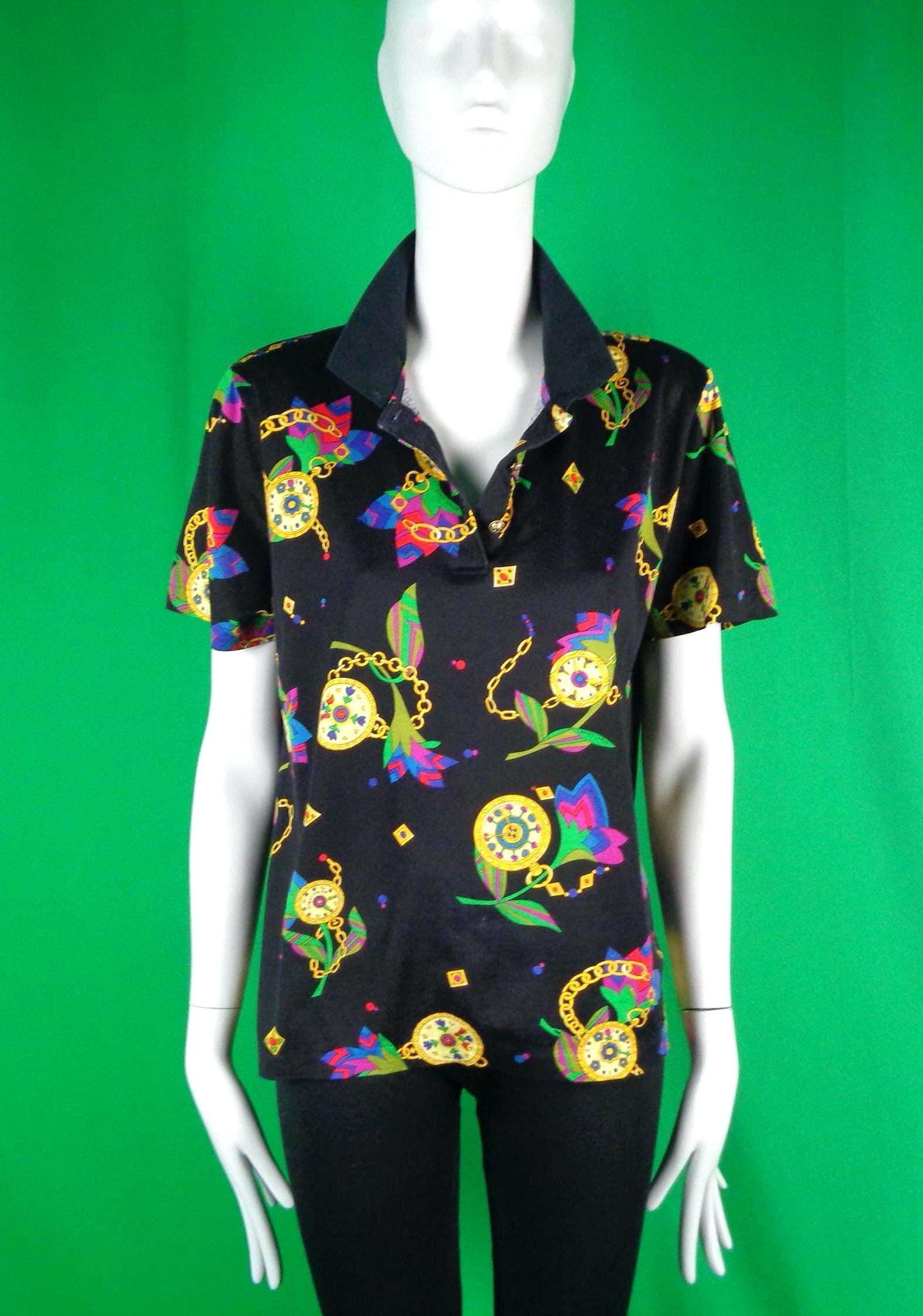This lovely vibrant, stylish 1980s 90s retro button-up pullover polo shirt, top.