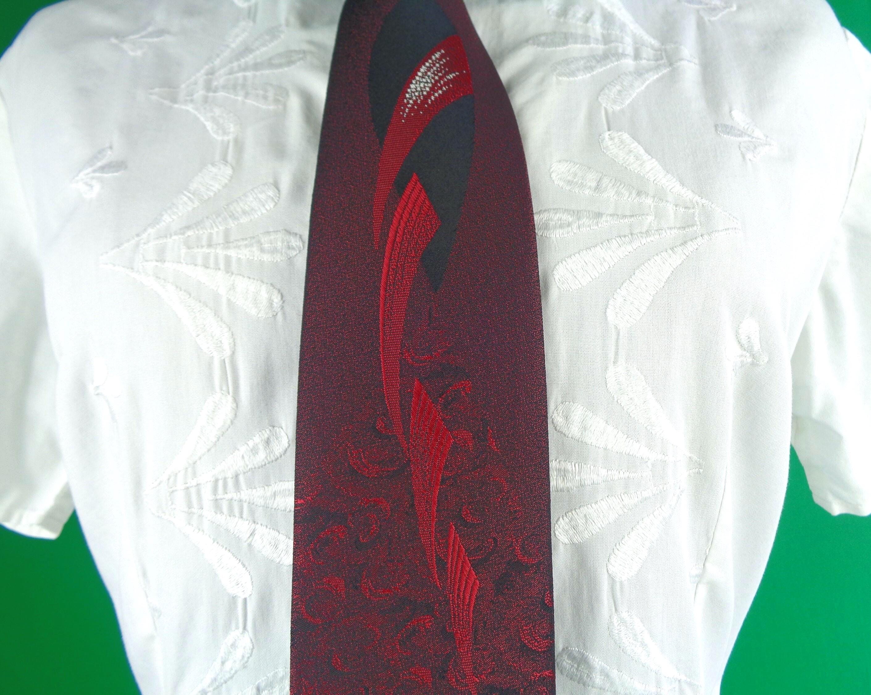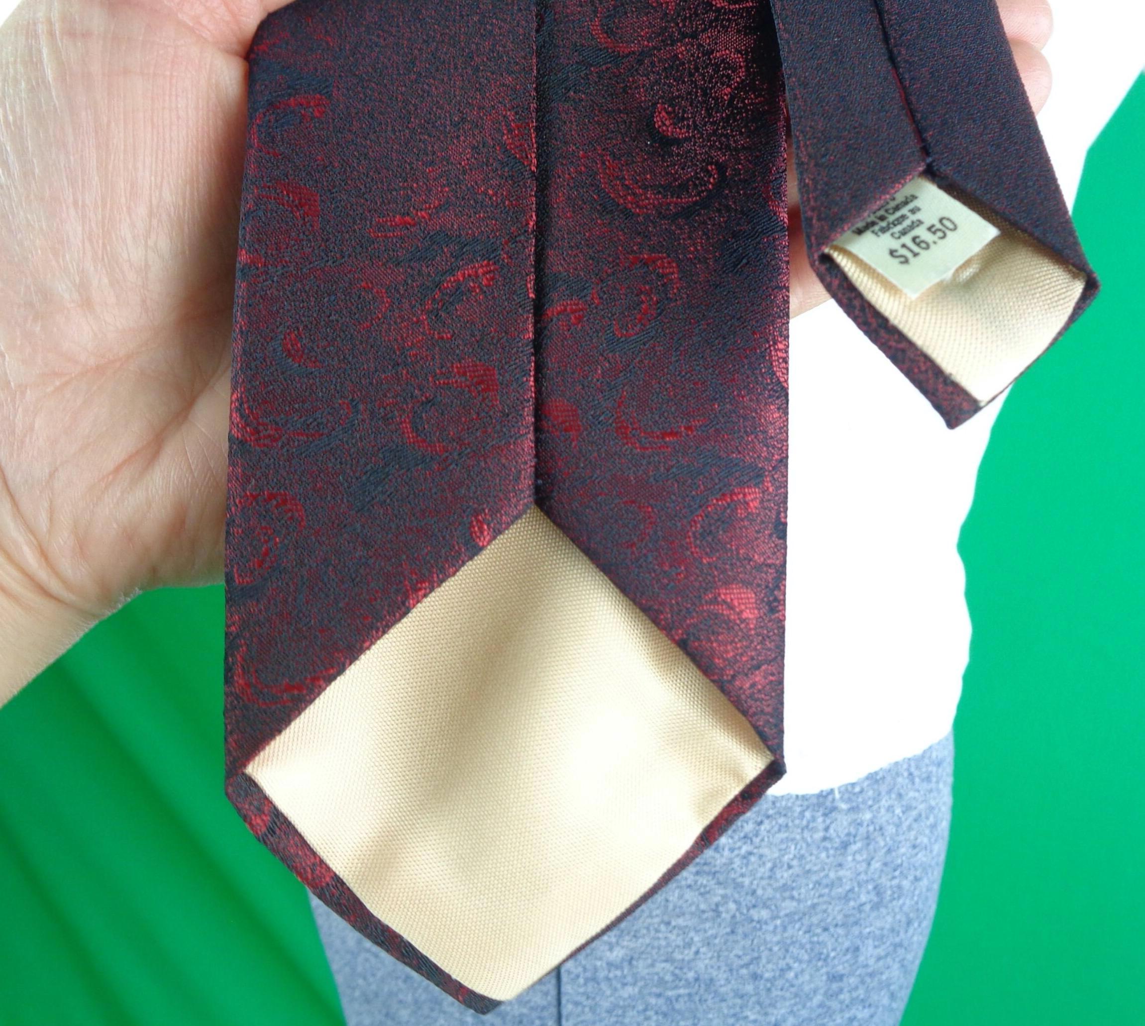 This lovely stylish 1970s self necktie. Features a uniquely crafted swirl, abstract pattern, design, selectively stitched, soft material throughout! original price tag. Great compliment piece!