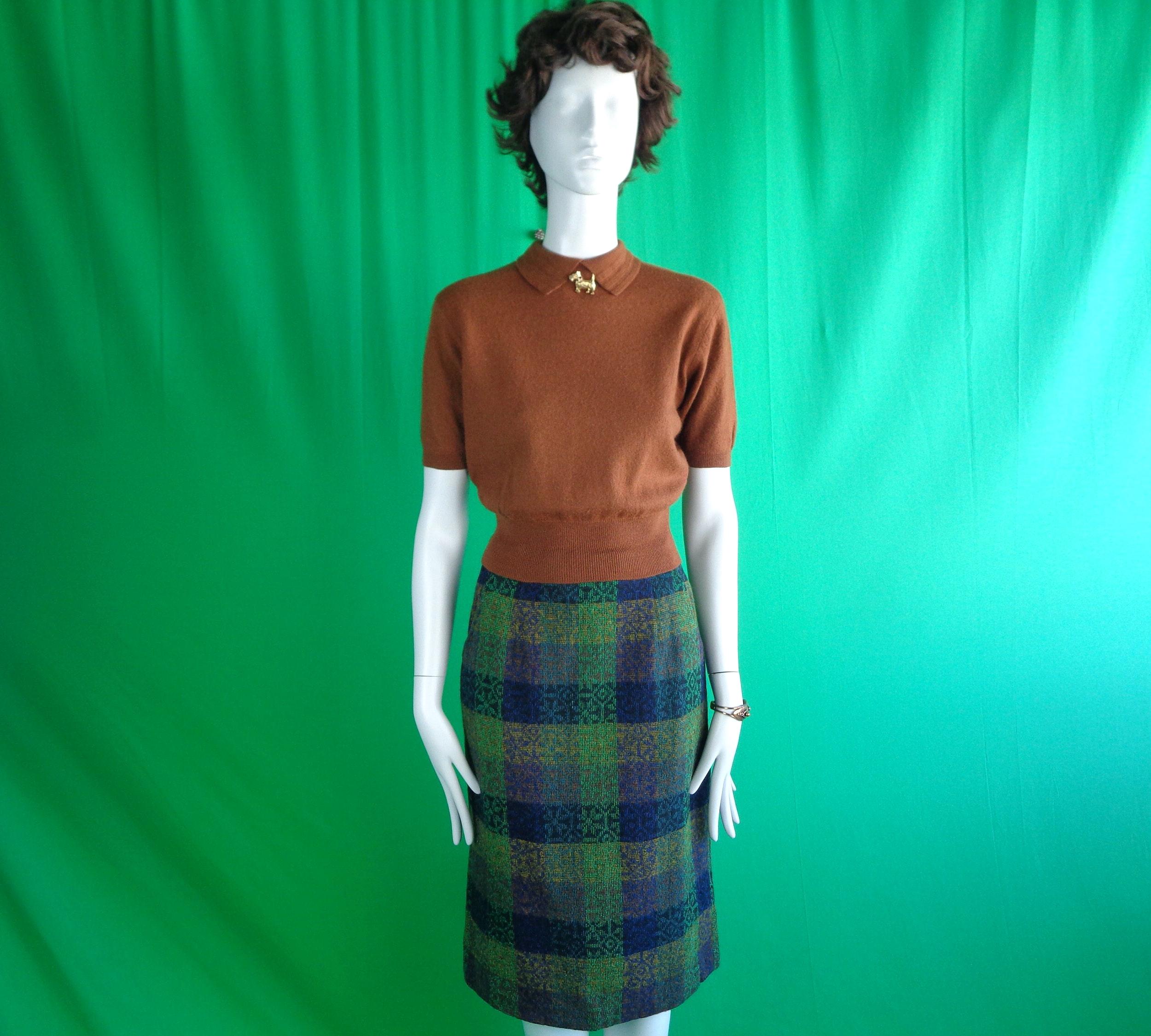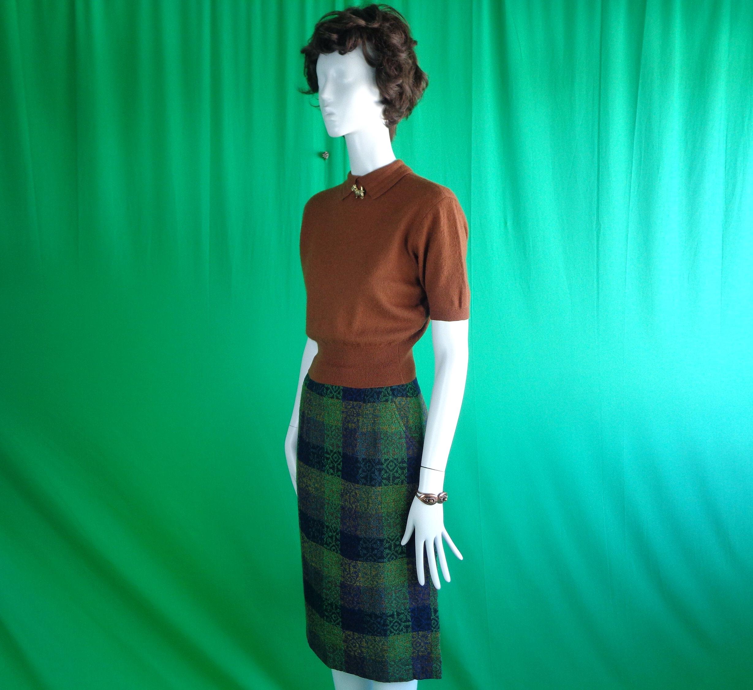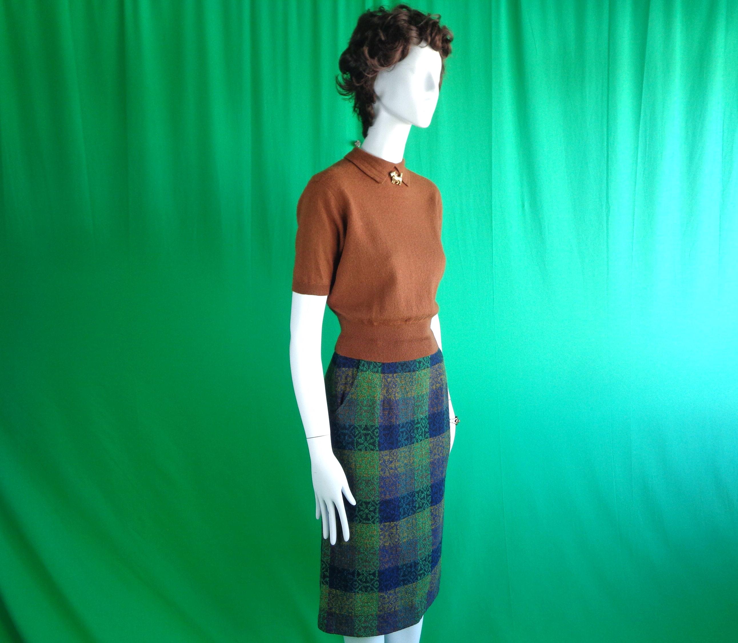 This lovely vibrant stylish 1970s 80s retro style pocket pencil skirt.
