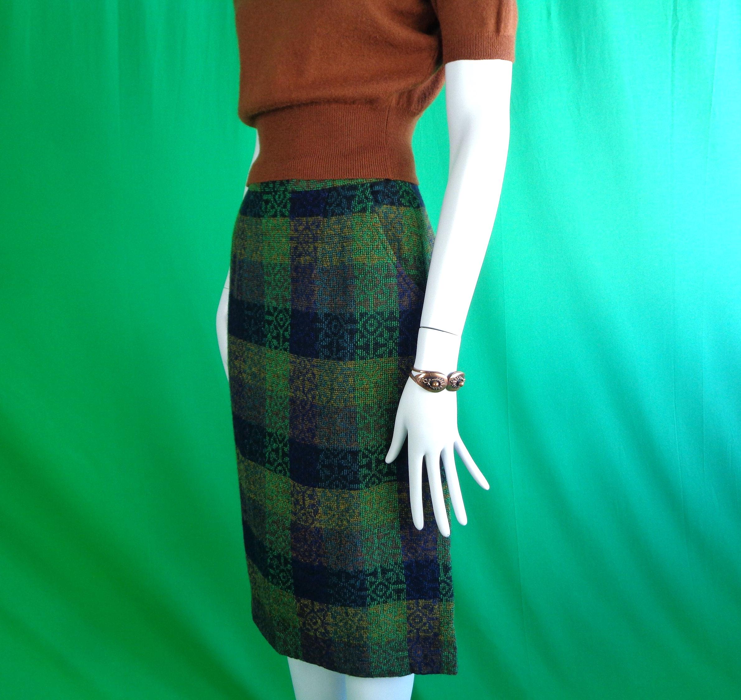 Features 2 deep side pockets, a back nylon zipper, with a top fly button, lined, lower back slit, layered pattern checkered design, pattern, soft fabric, material throughout! Great compliment piece!