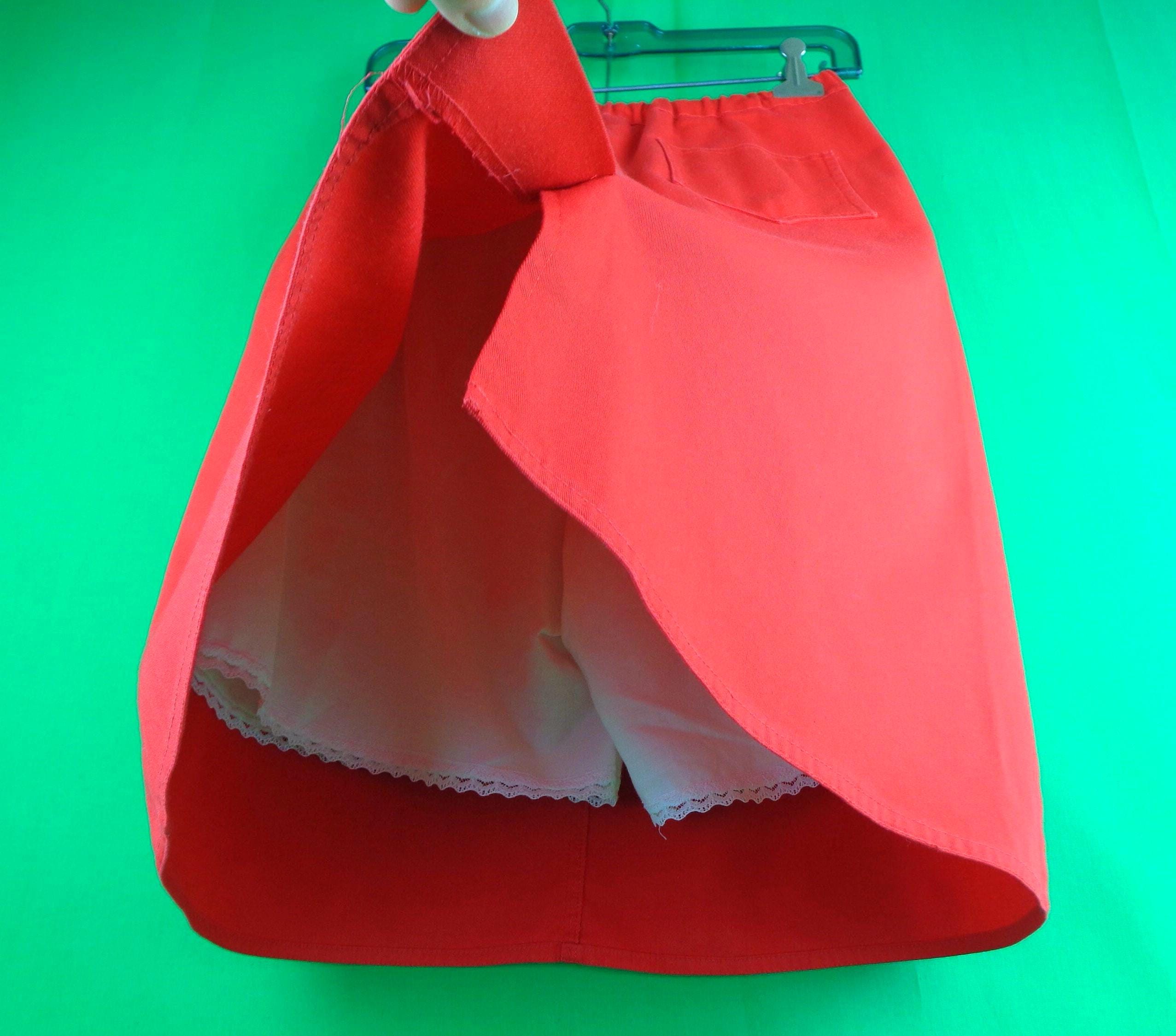 These lovely stylish 1960s 70s skort, skirt, short pants, bloomers. Features a combination of bloomers and skirt, with 2 side pockets, a front decorative zipper head, with top fly button, and crisp fabric, material throughout! Great compliment piece!