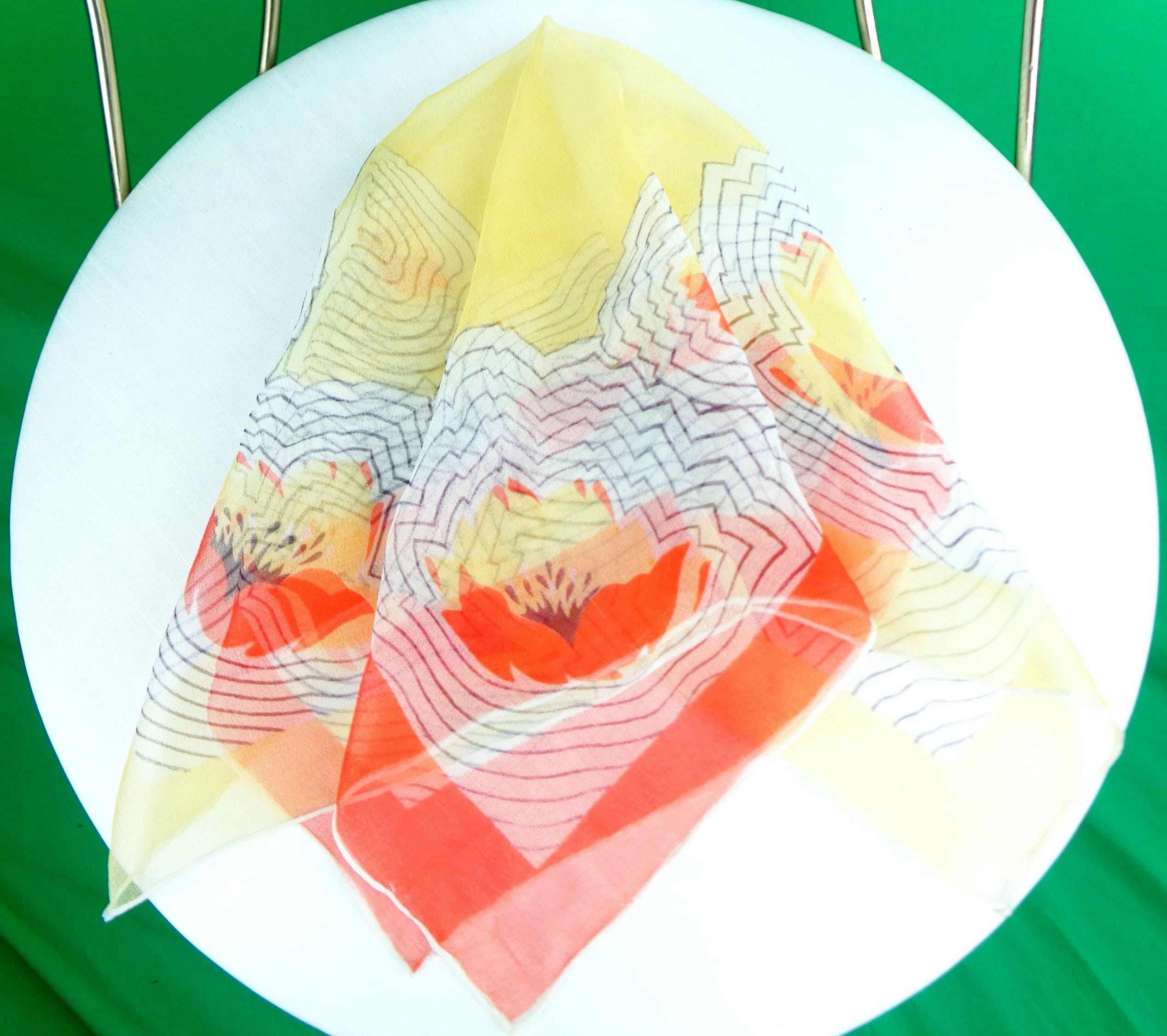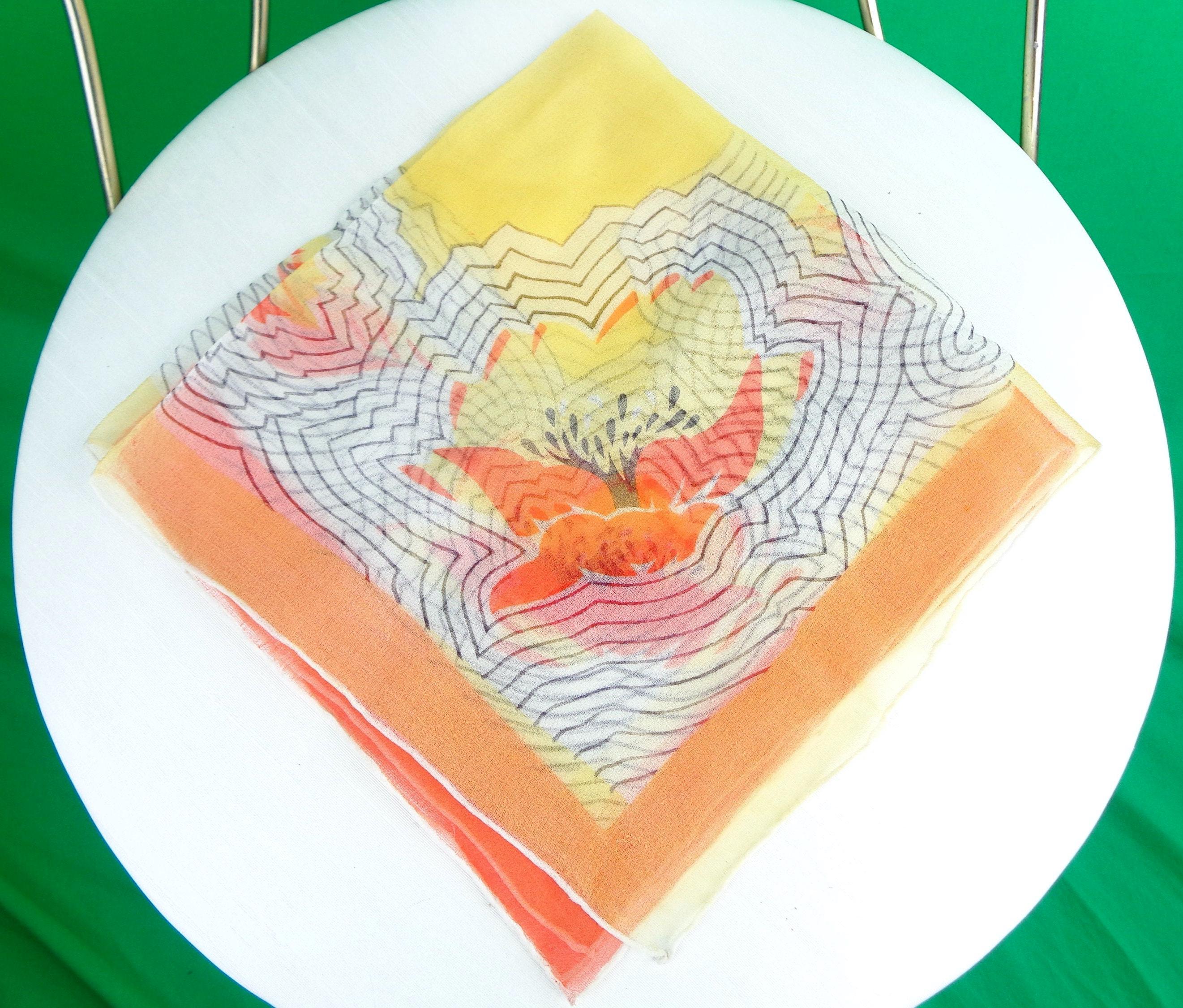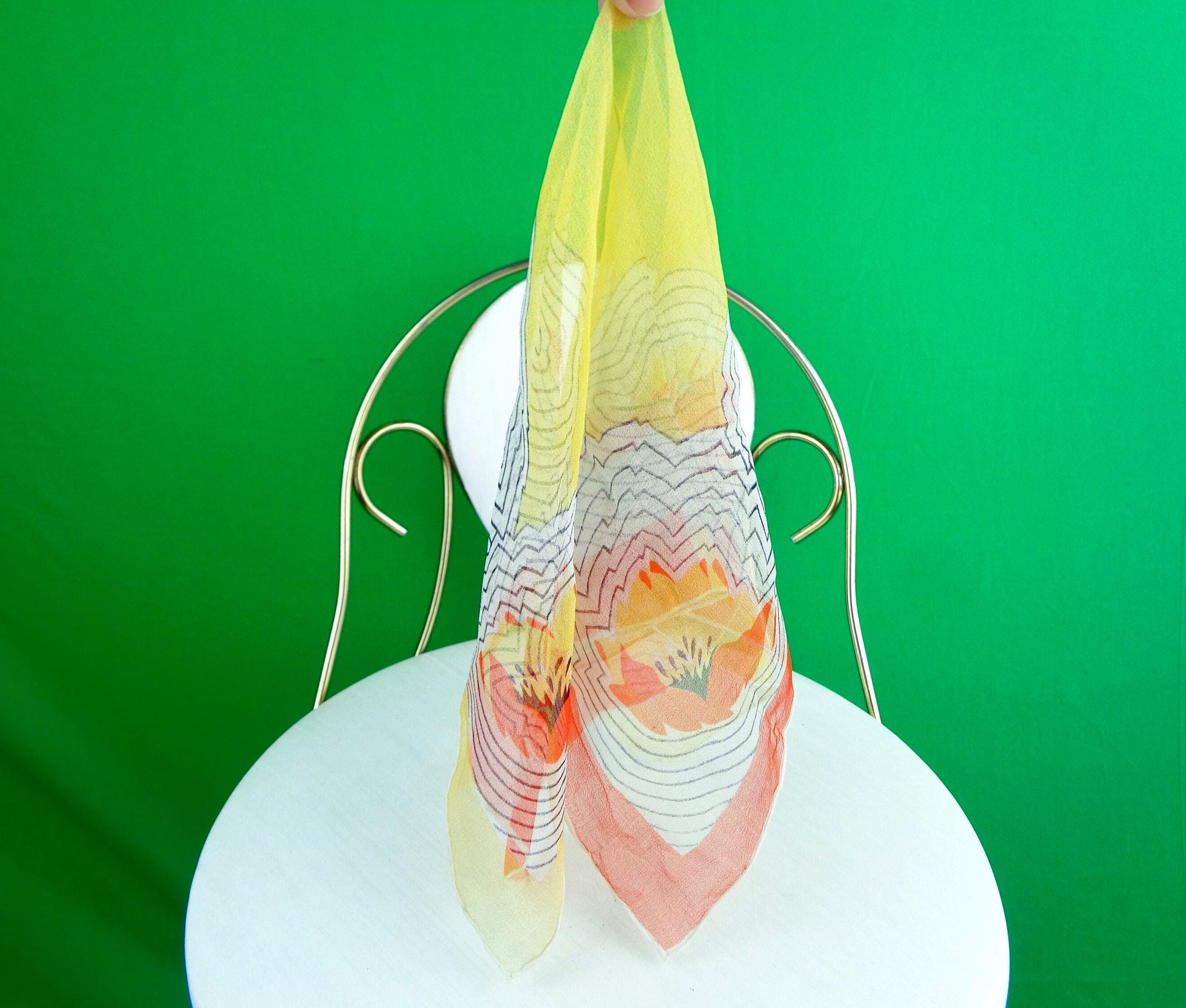 This lovely elegant 1920s 30s scarf, tie wrap. Features hand rolled edged boarder with an abstract floral pattern, design, with soft fabric, material throughout! Great compliment piece!