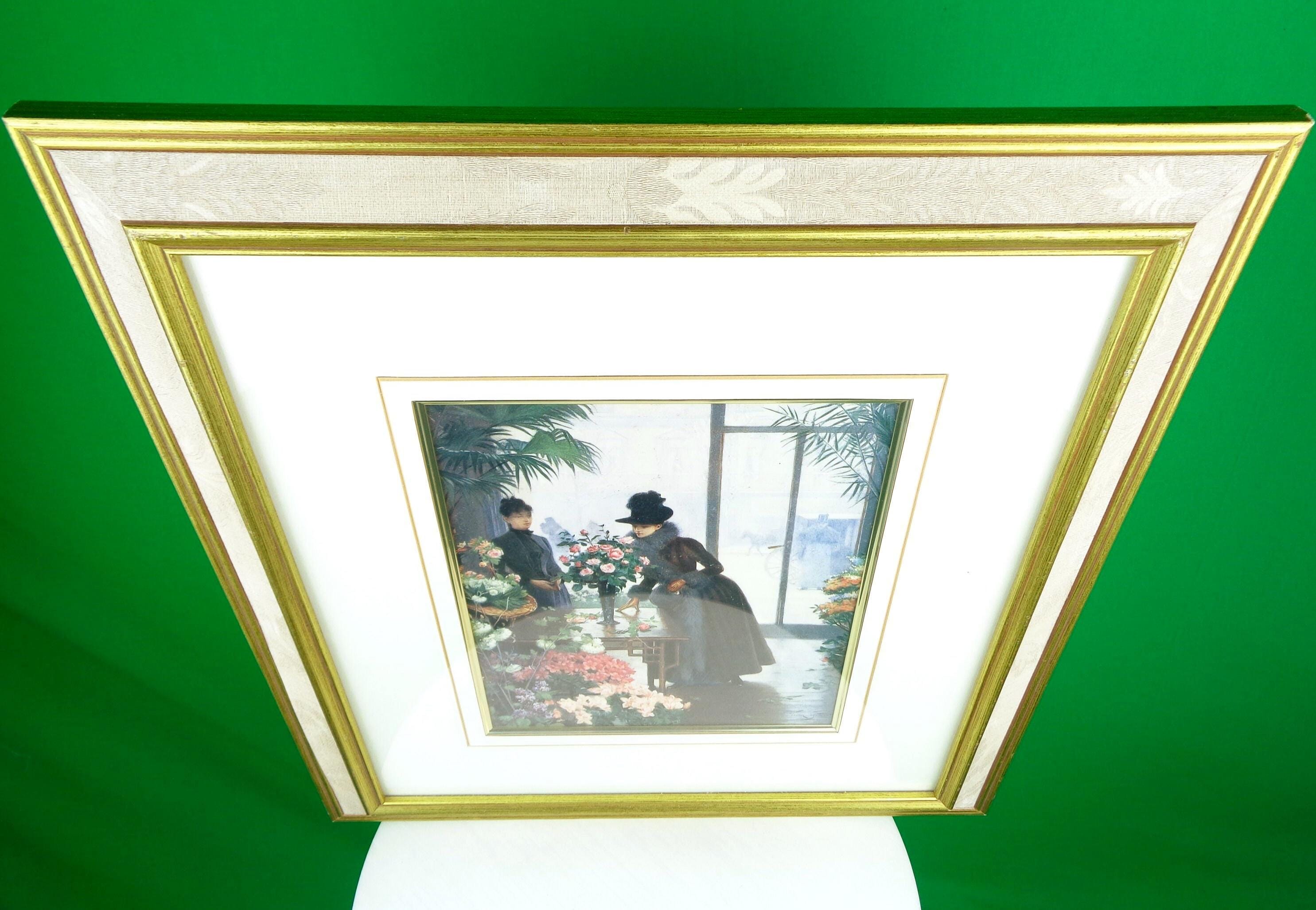 This lovely unique 14x16 picture art with frame. Features women in the parlour selecting their best bouquet of flowers for their arrangements! Great piece!