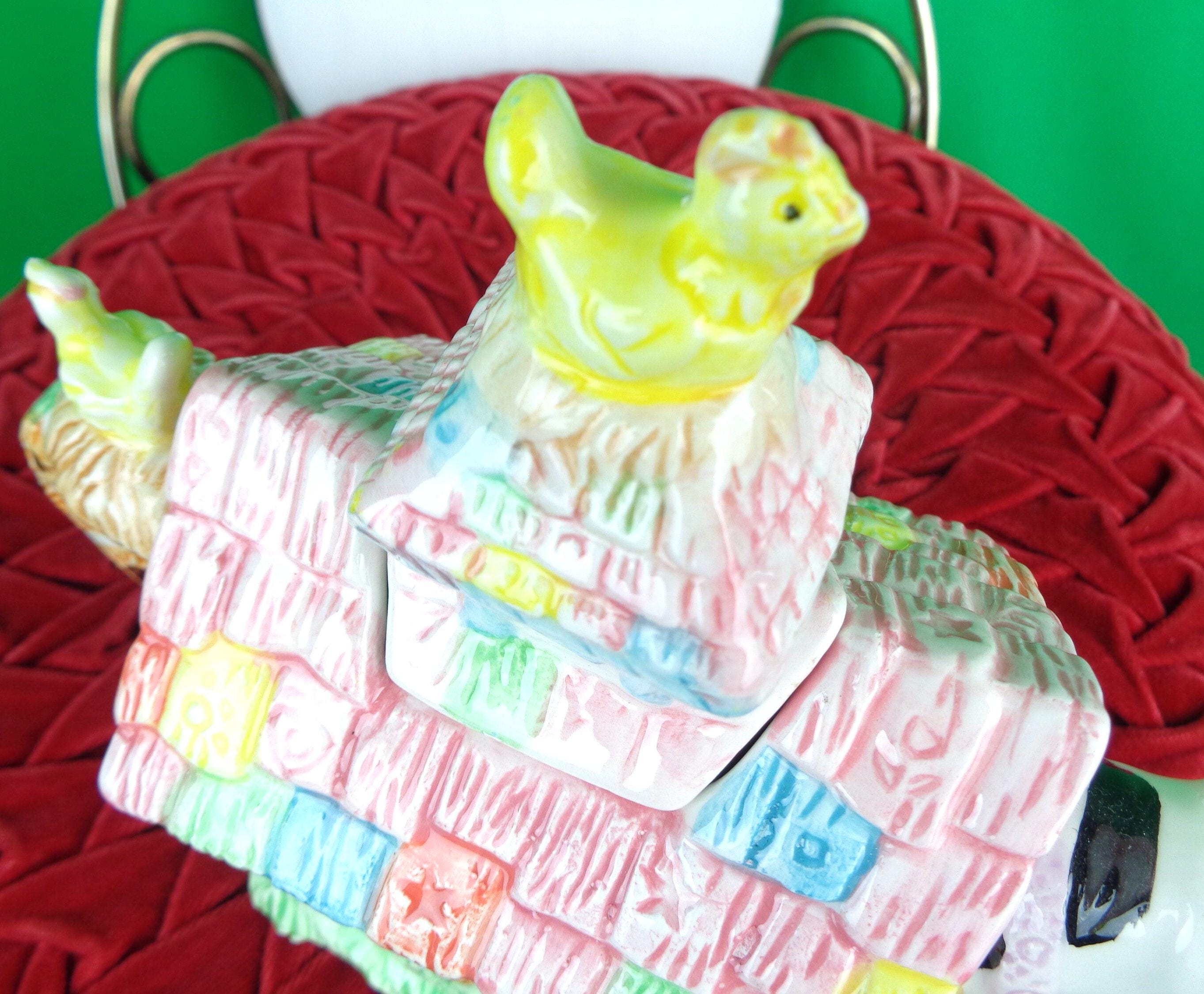 This lovely unique 1994 coffee teapot. Features a barn house with a range of farm animals displayed, peeking out windows, with the cow as the spout and the top lid peaked chicken! Great piece!