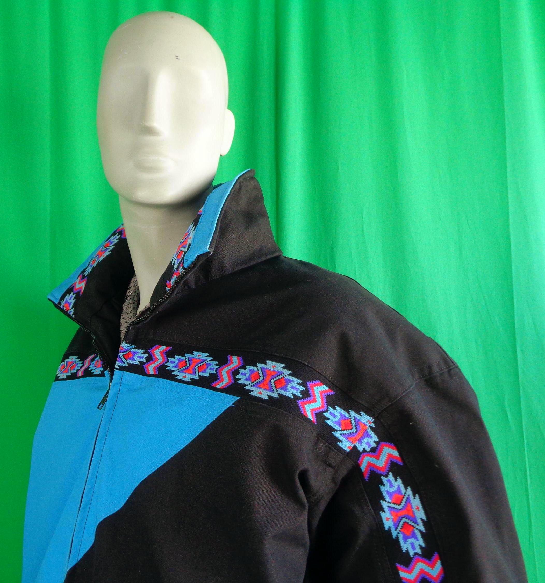 Features a sturdy front zipper, pop thick collar, 2 side pockets, well made structure, lightly textured material, fabric throughout! Great compliment piece!