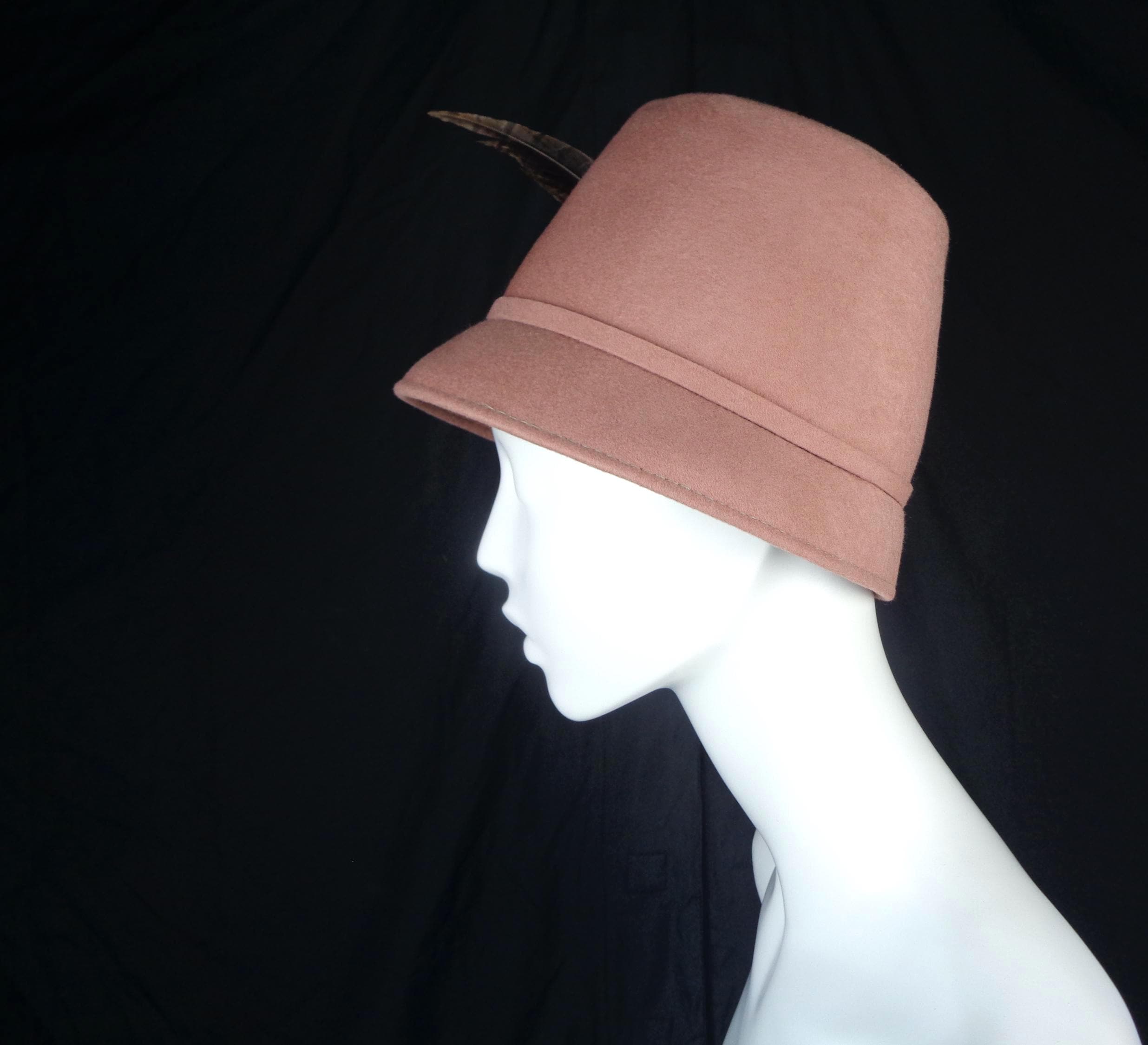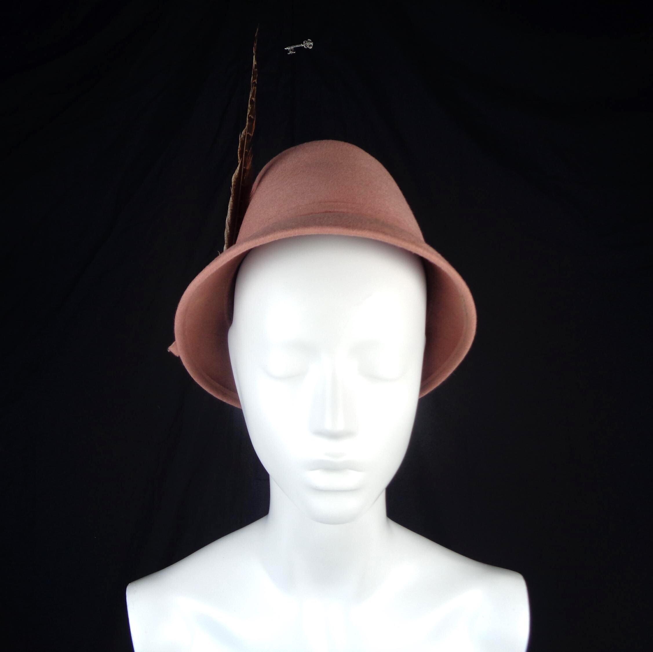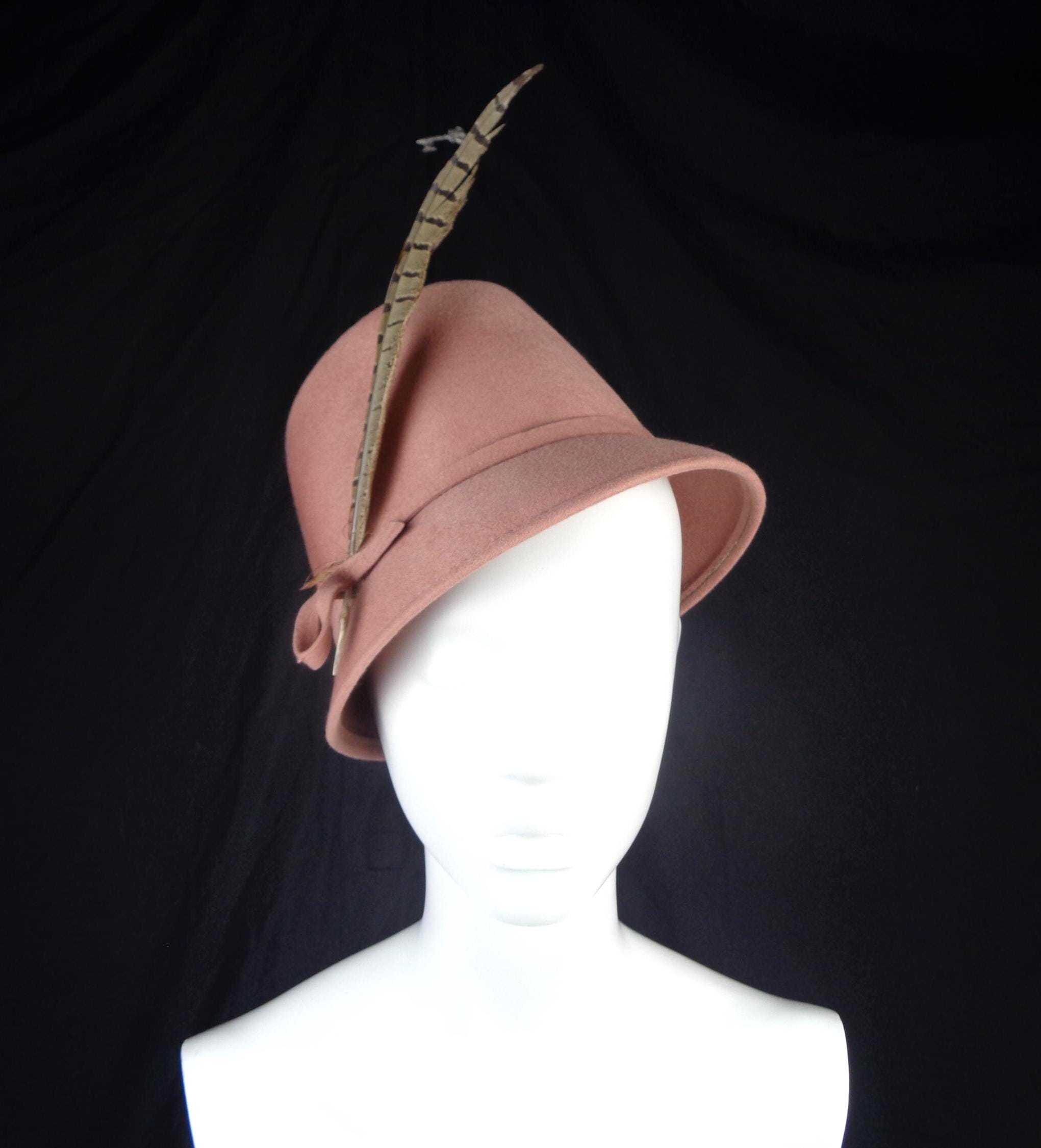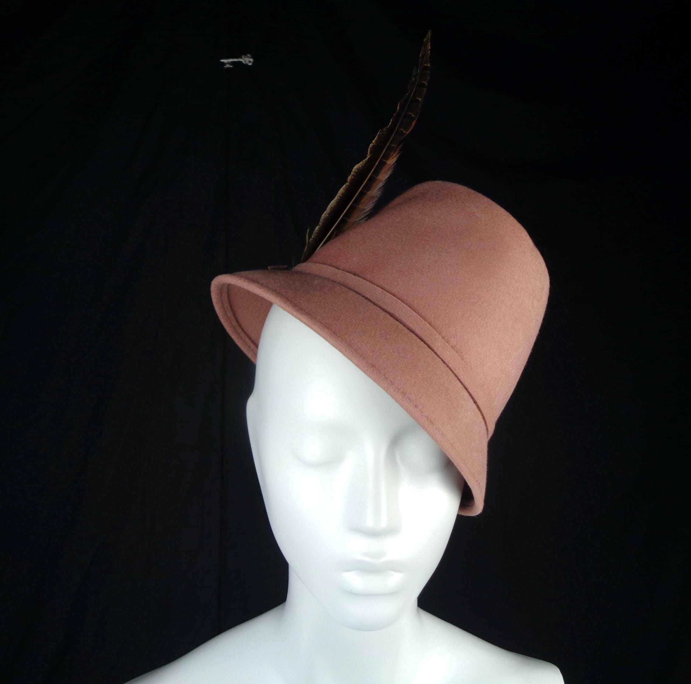 This lovely elegant stylish 1950s feather hat, capulet, bucket chapel.