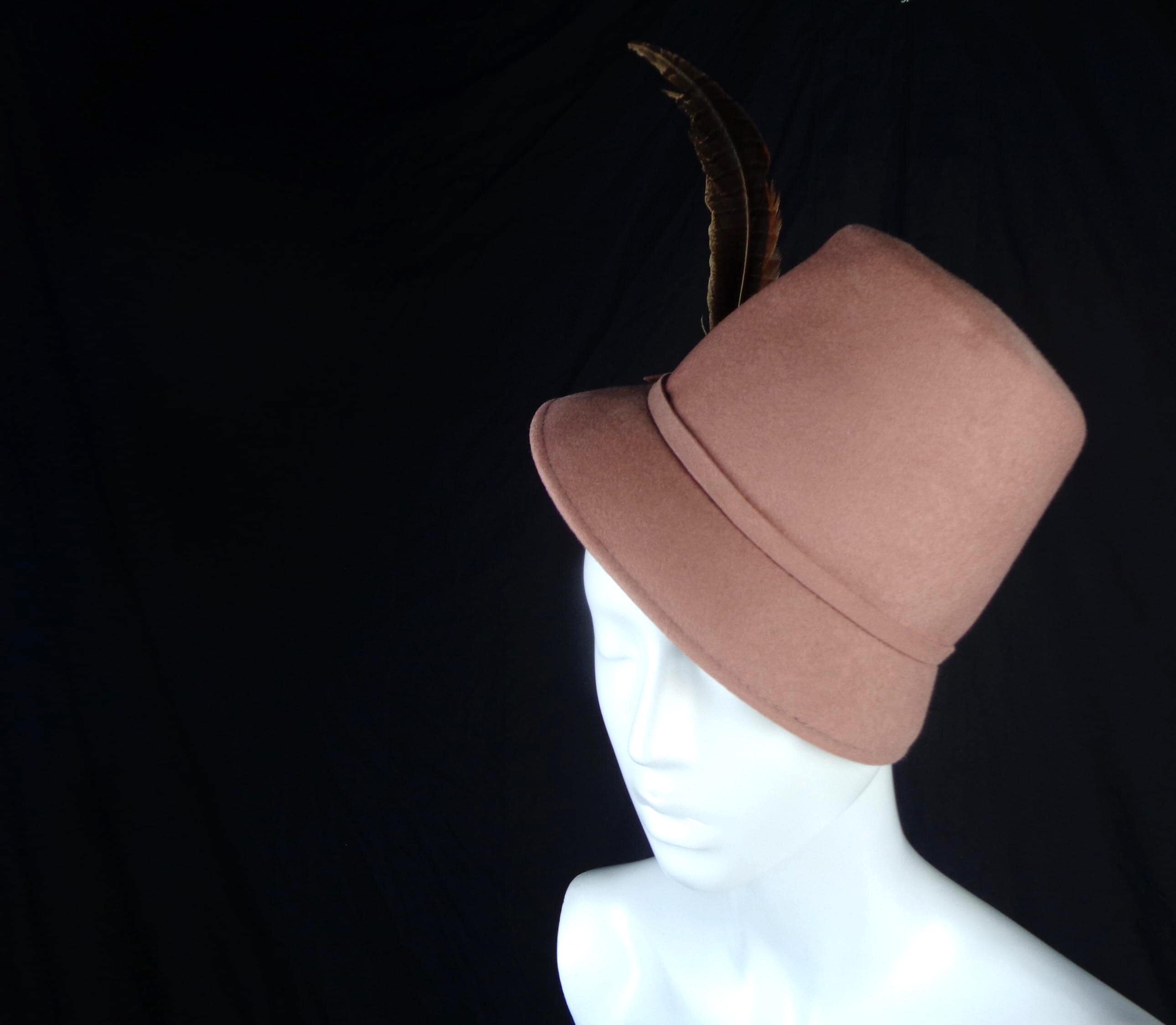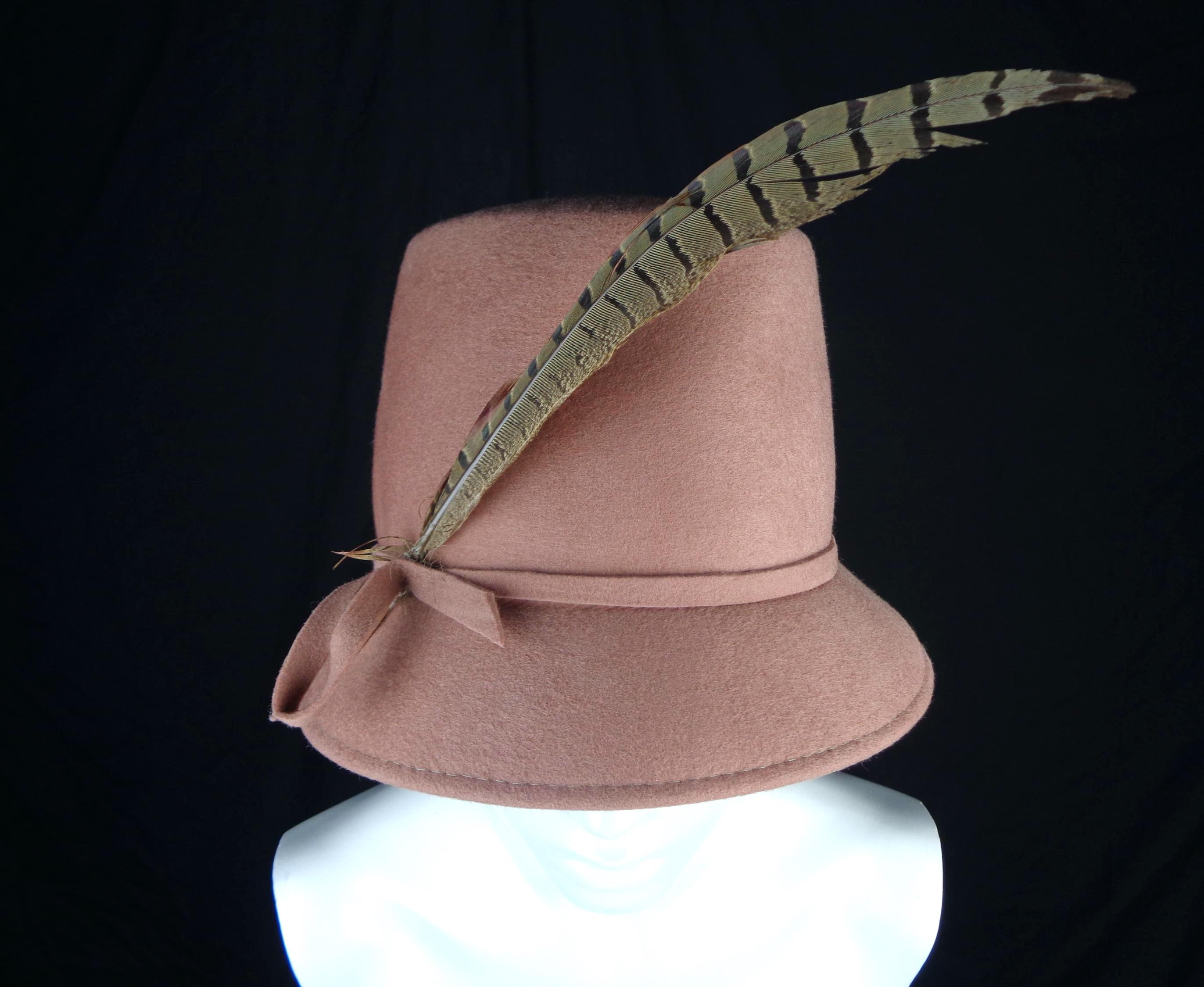Features a tall pheasant feather right side set with a matching bow tie and narrow brim, with a tall peek bill and soft material throughout! Great compliment piece!