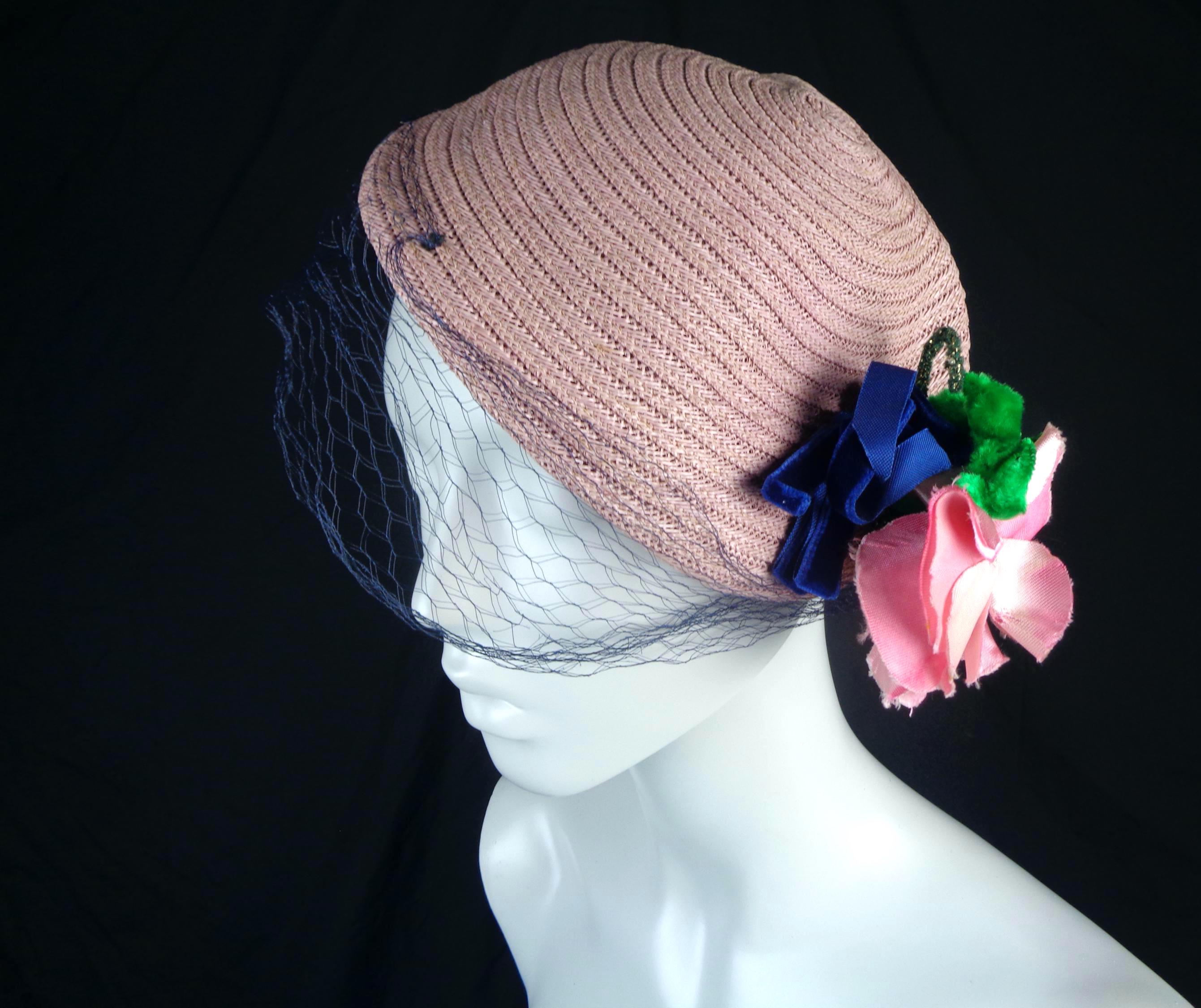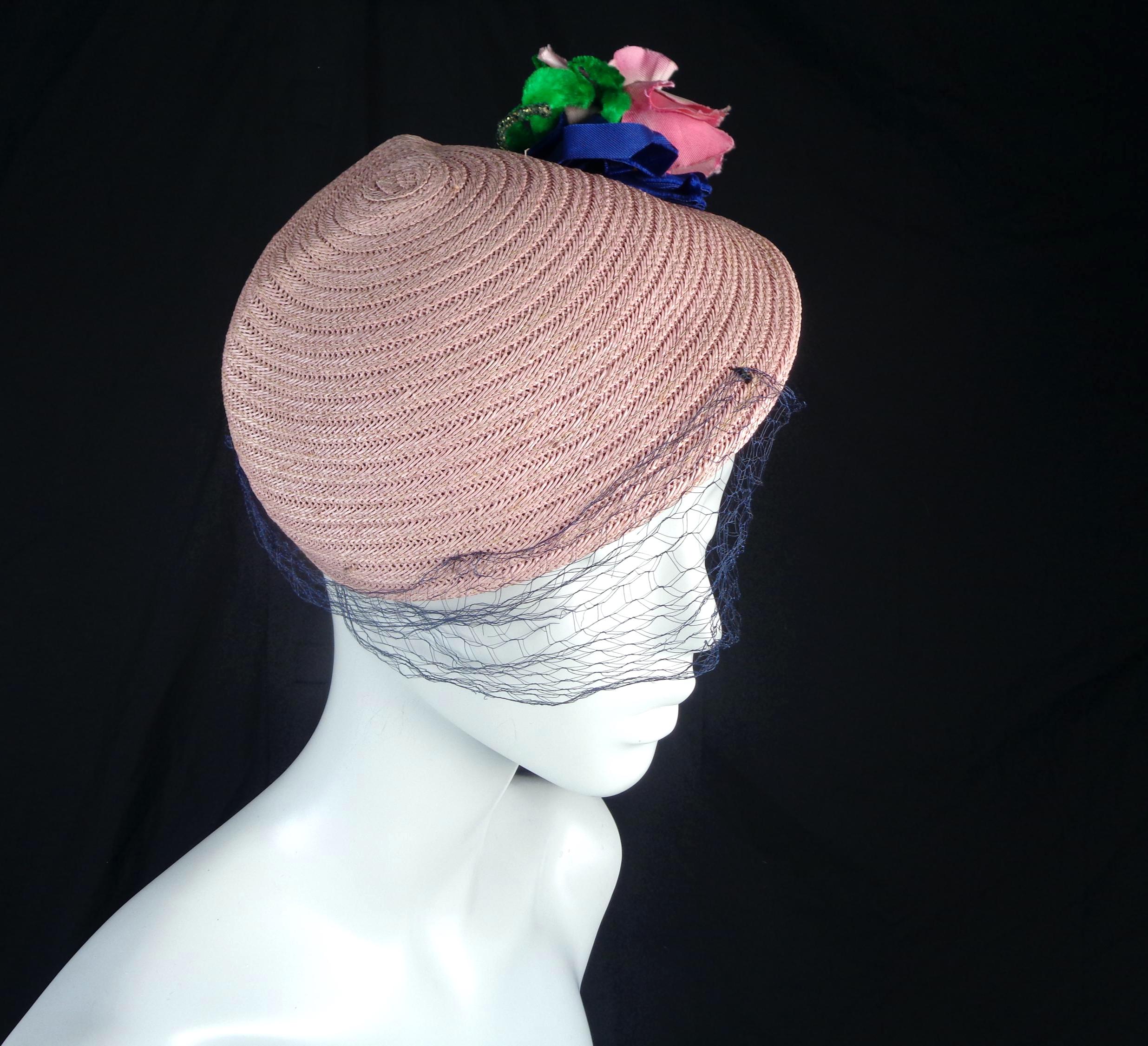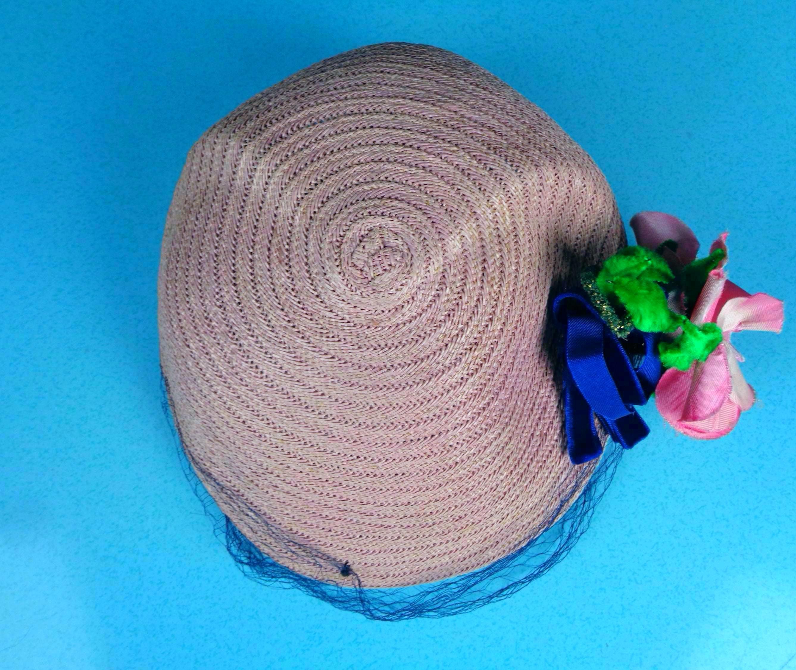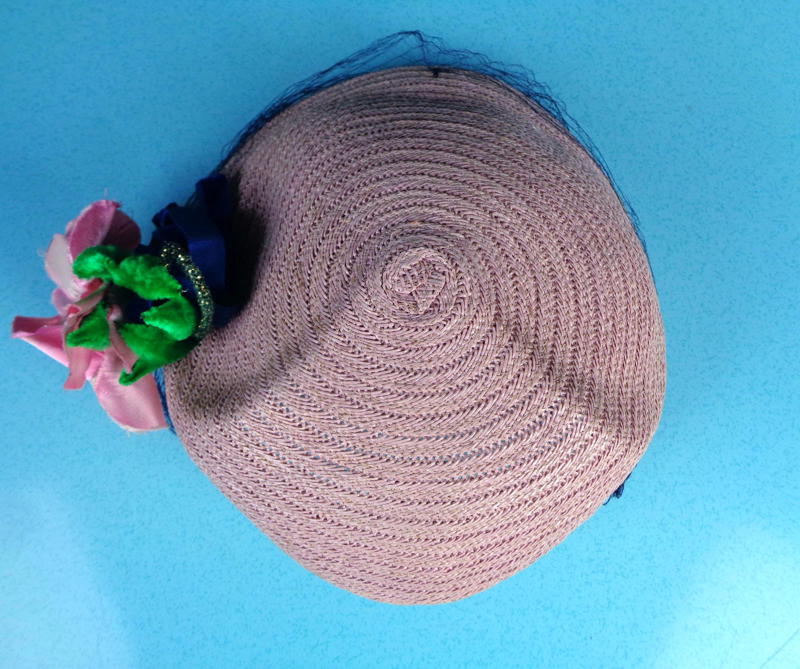 This lovely elegant vibrant 1950s 60s straw, raffia hat.