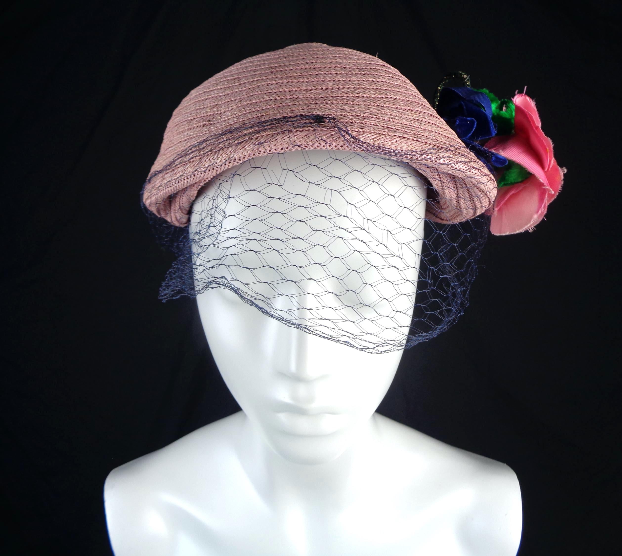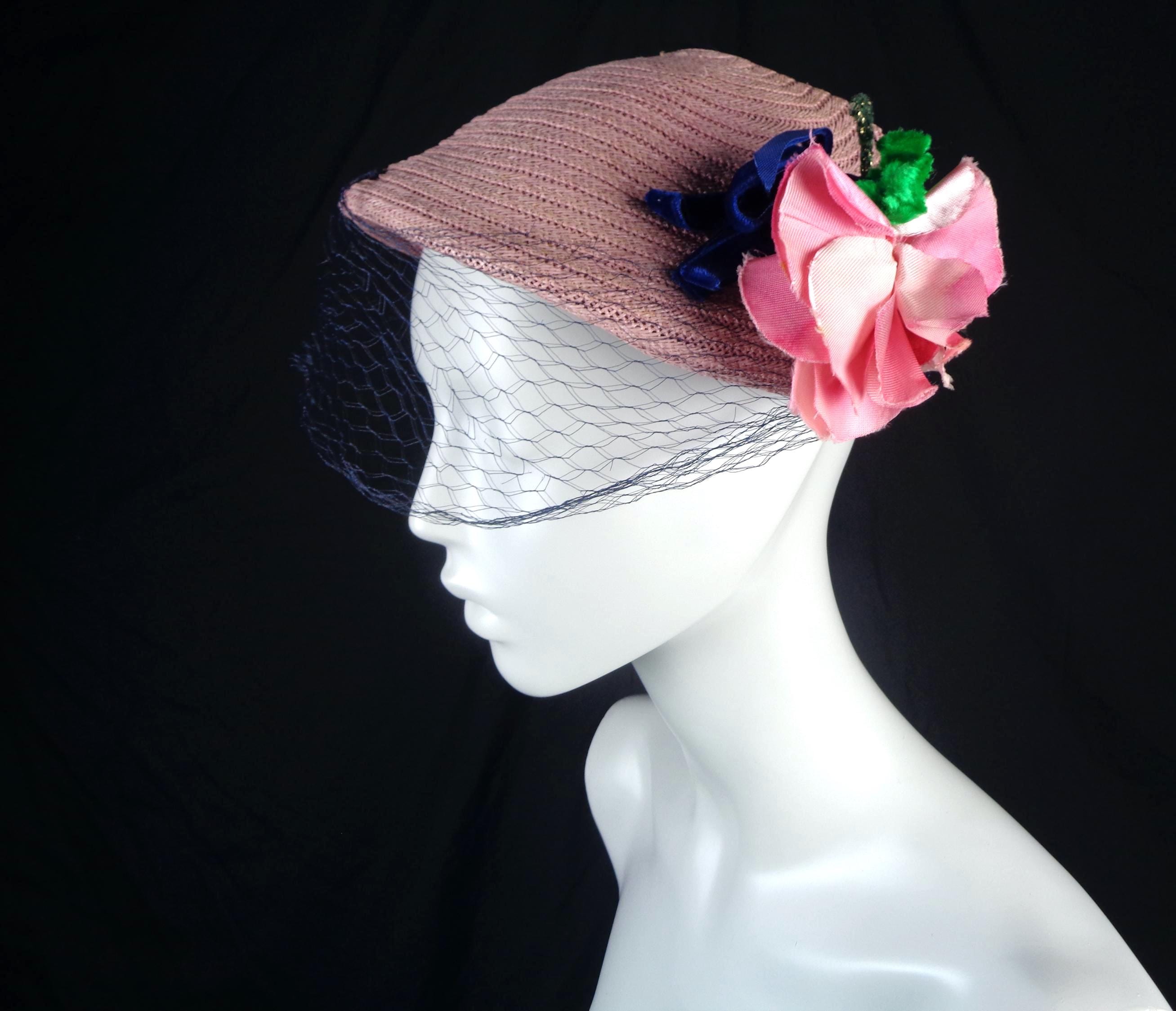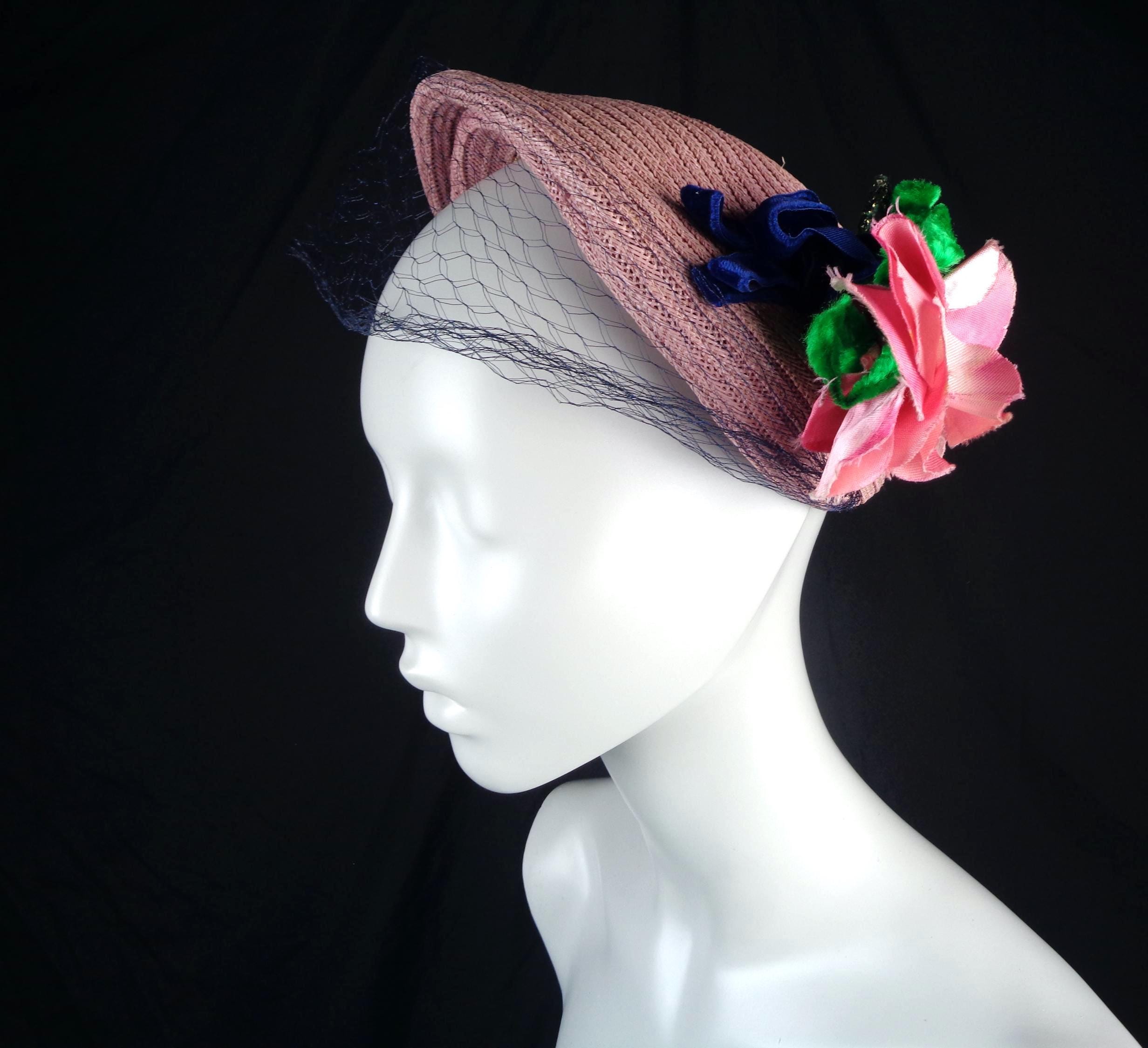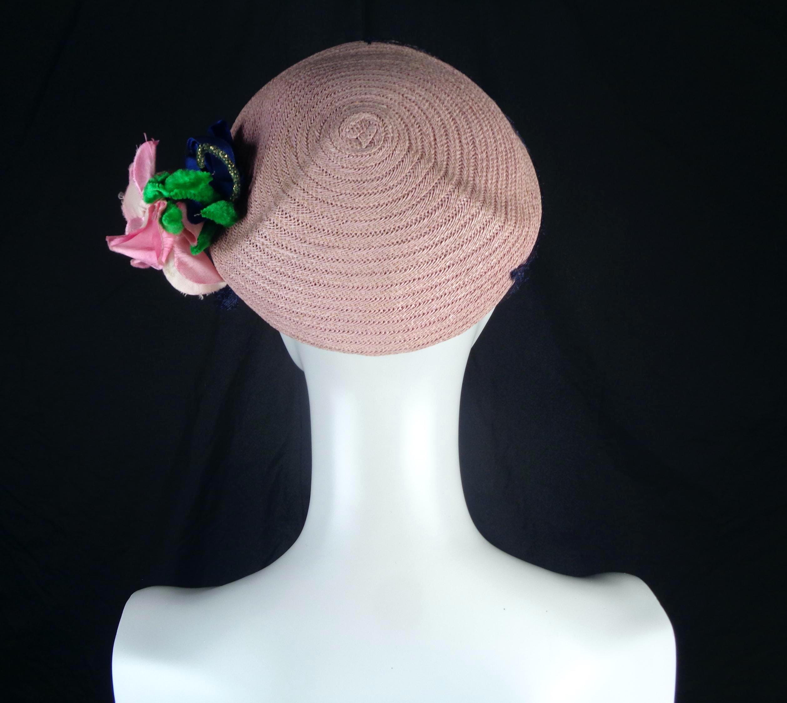 This lovely elegant vibrant 1950s 60s straw, raffia hat.