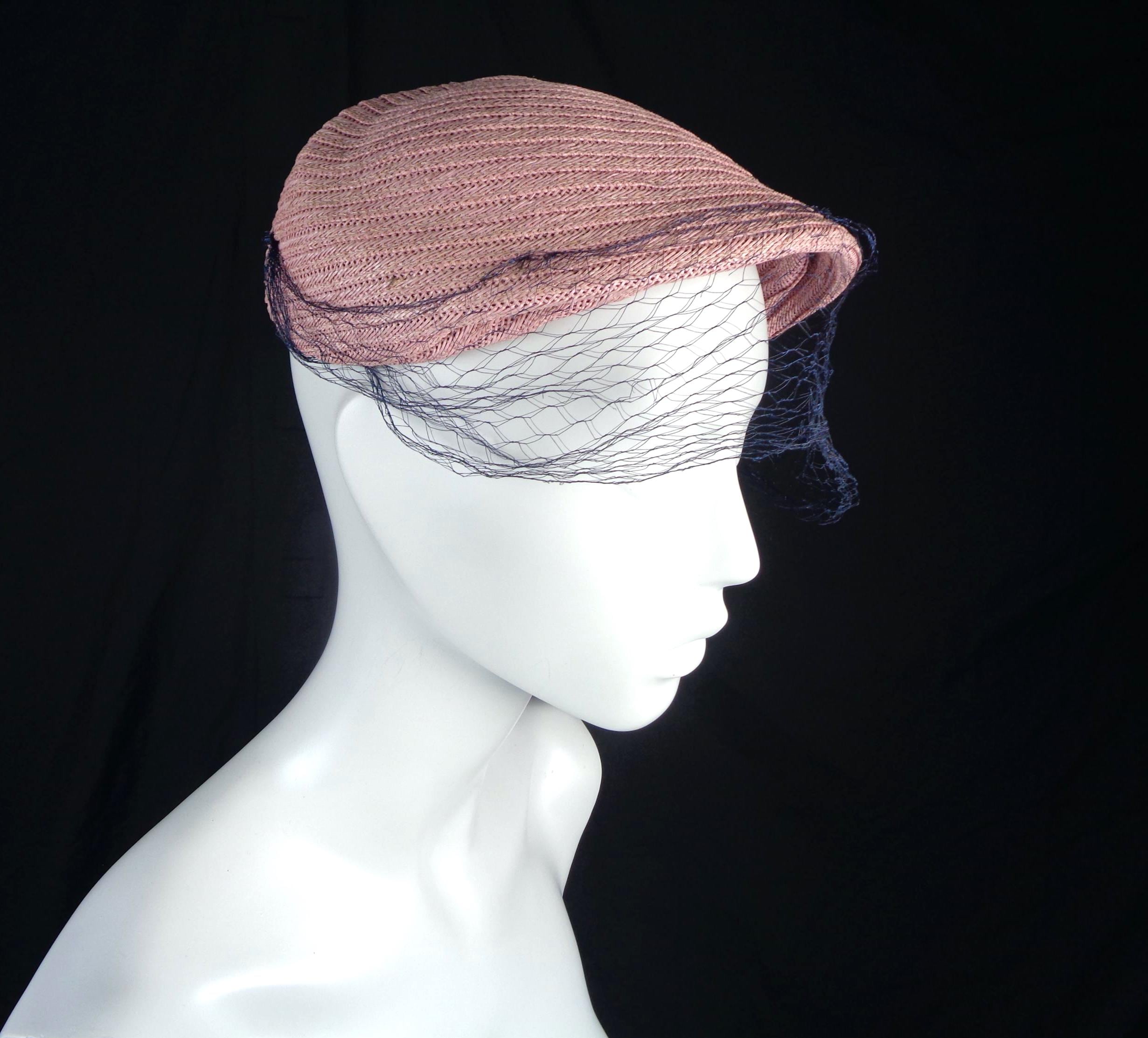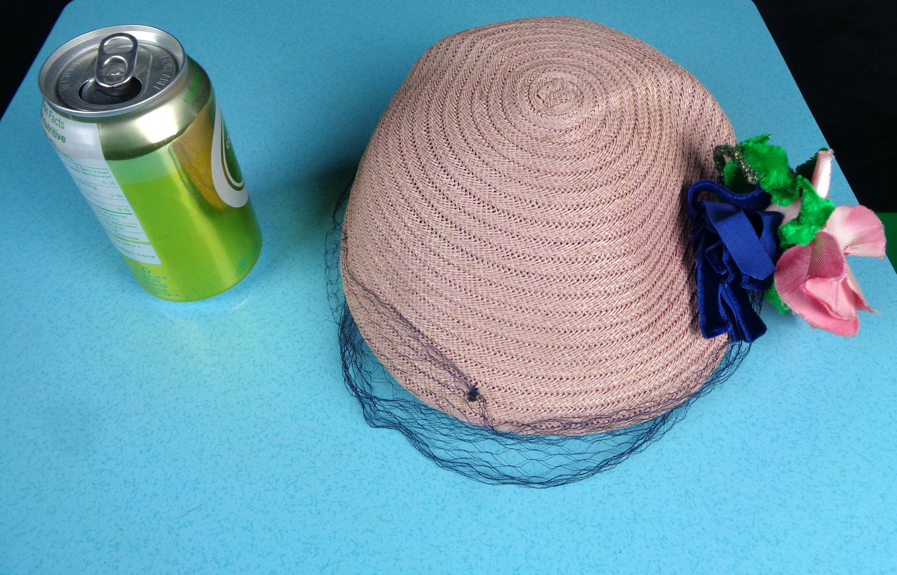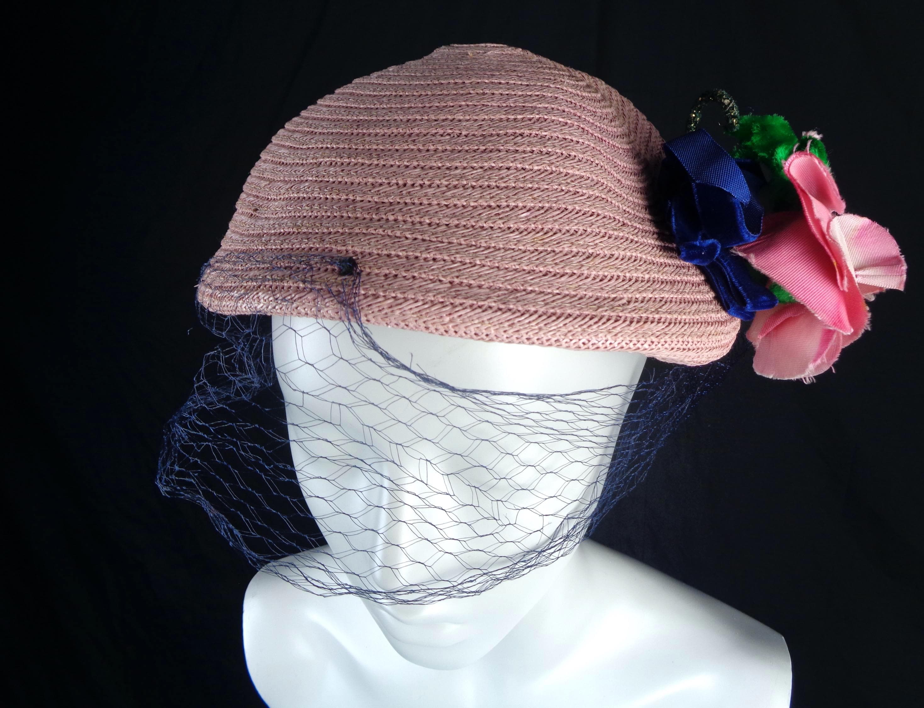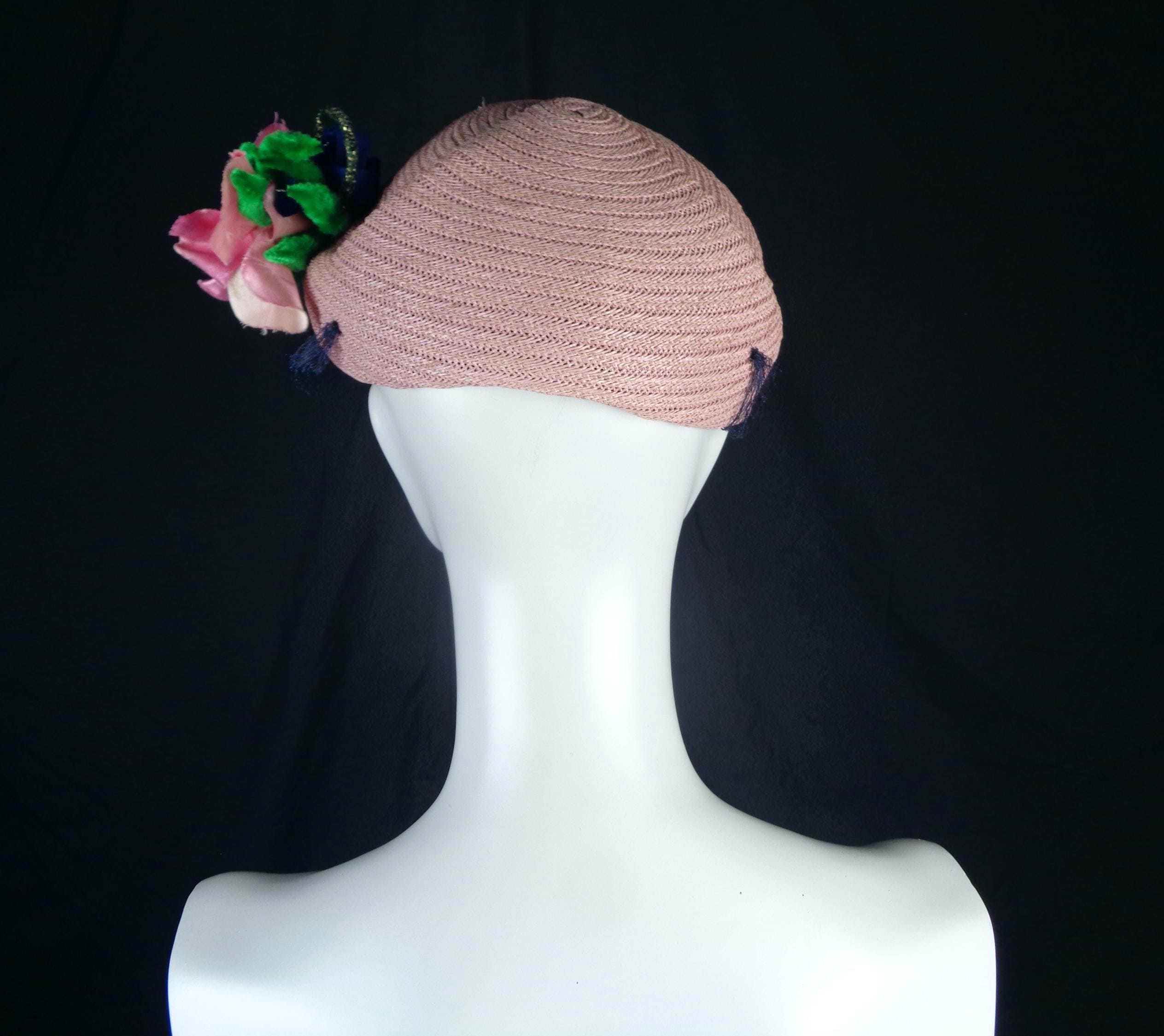 This lovely elegant vibrant 1950s 60s straw, raffia hat.