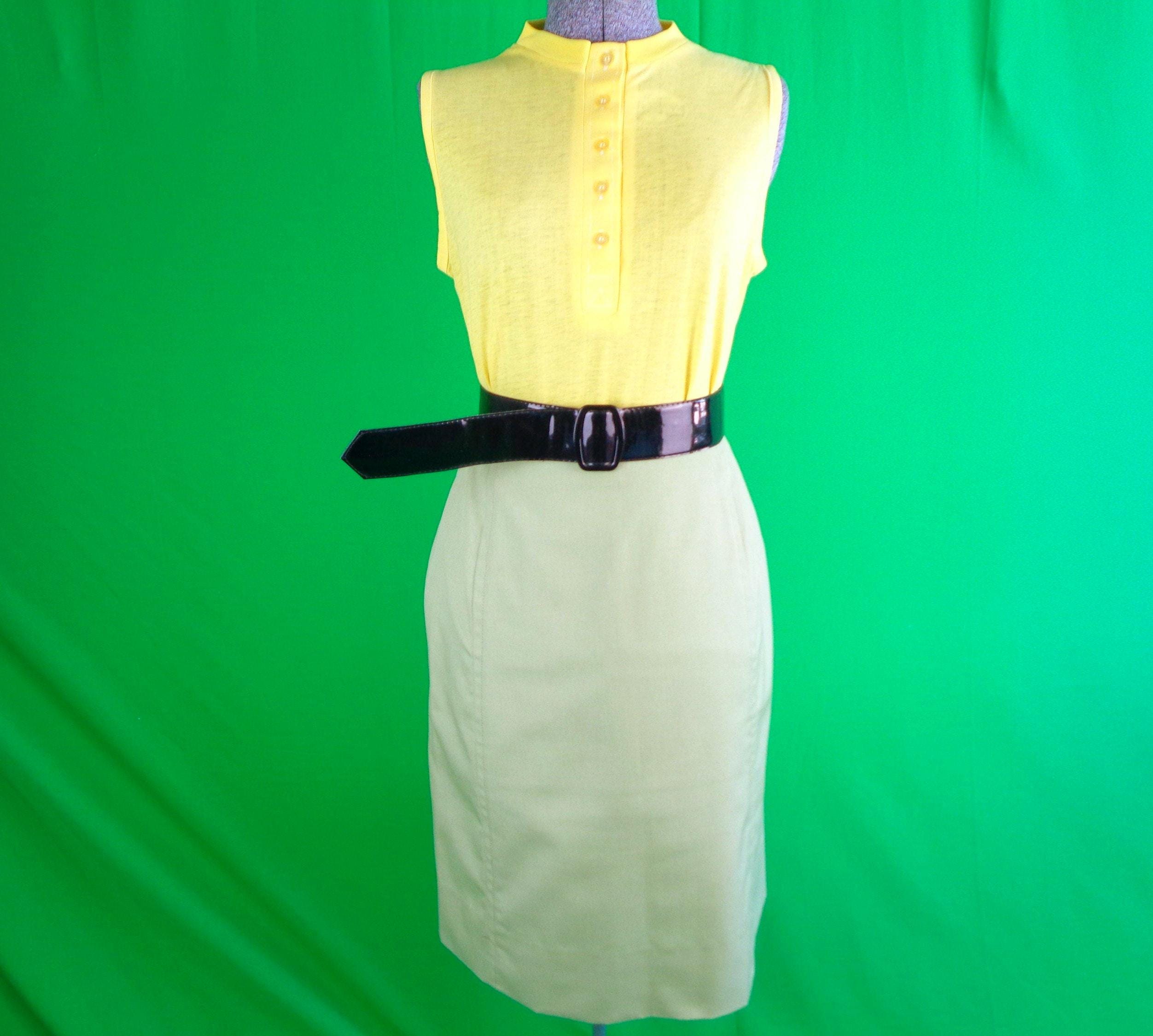 This lovely stylish 1950s 60s pencil, short skirt feature a back nylon zipper, top button closure, A line cut, lightly textured, crisp fabric, material throughout!