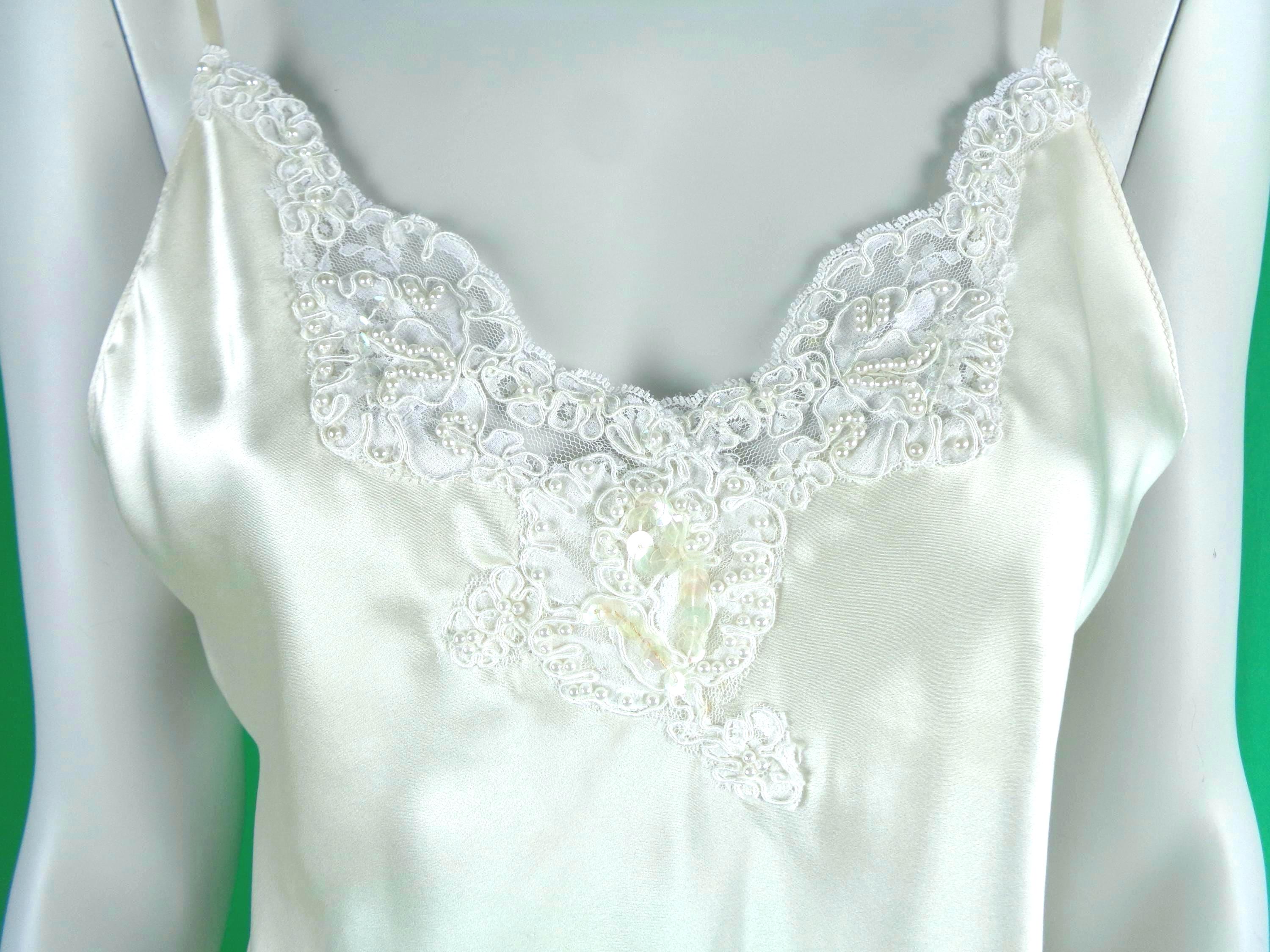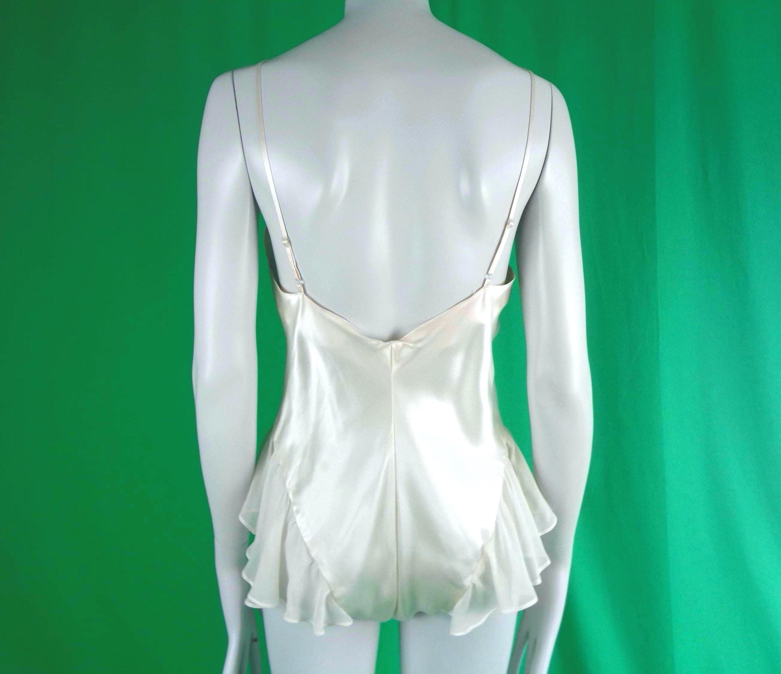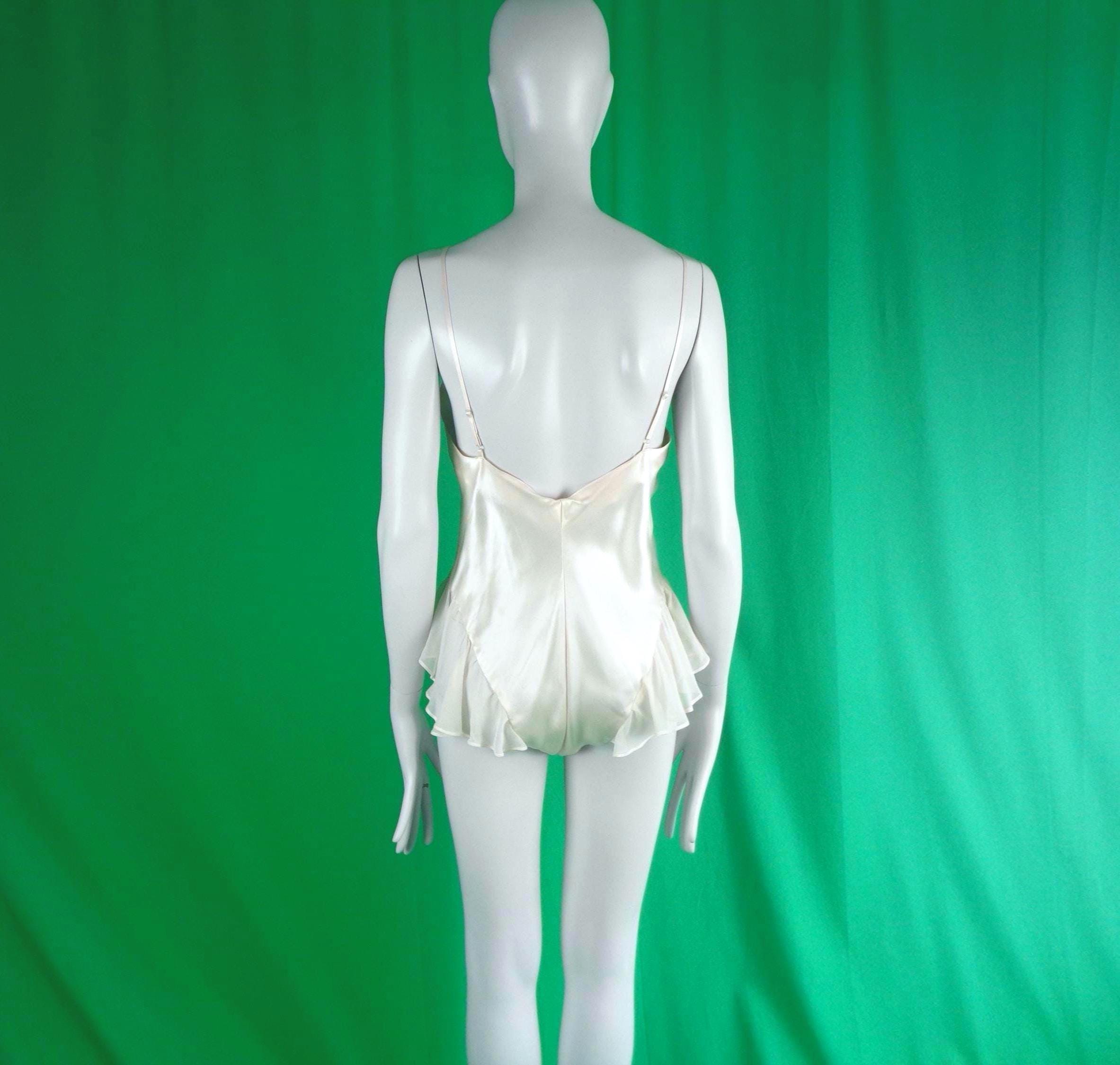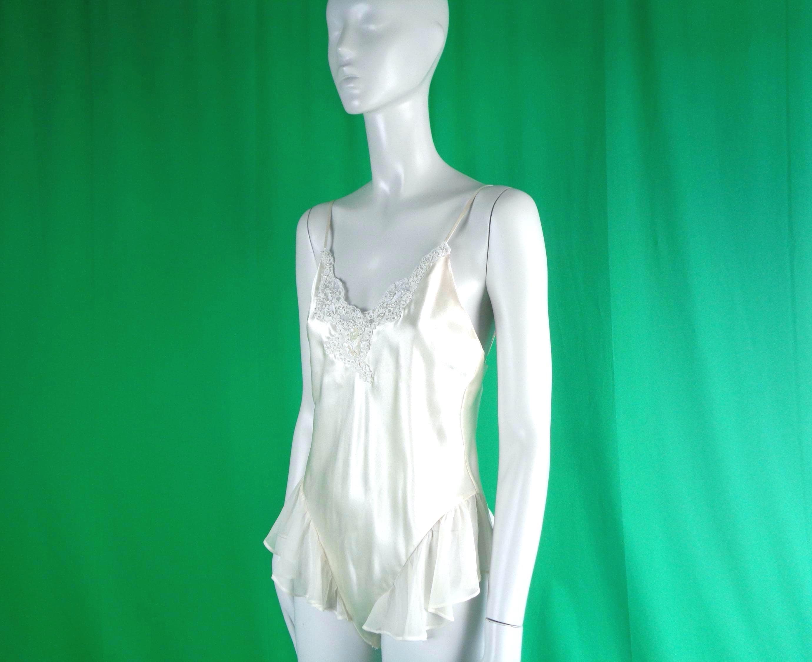 This lovely unique 1970s 1980s retro Teddy Lingerie Features spaghetti adjustable straps, beading detailing neckline, flare hips, snaps closure crotch, very soft silky fabric, material throughout! Great piece!