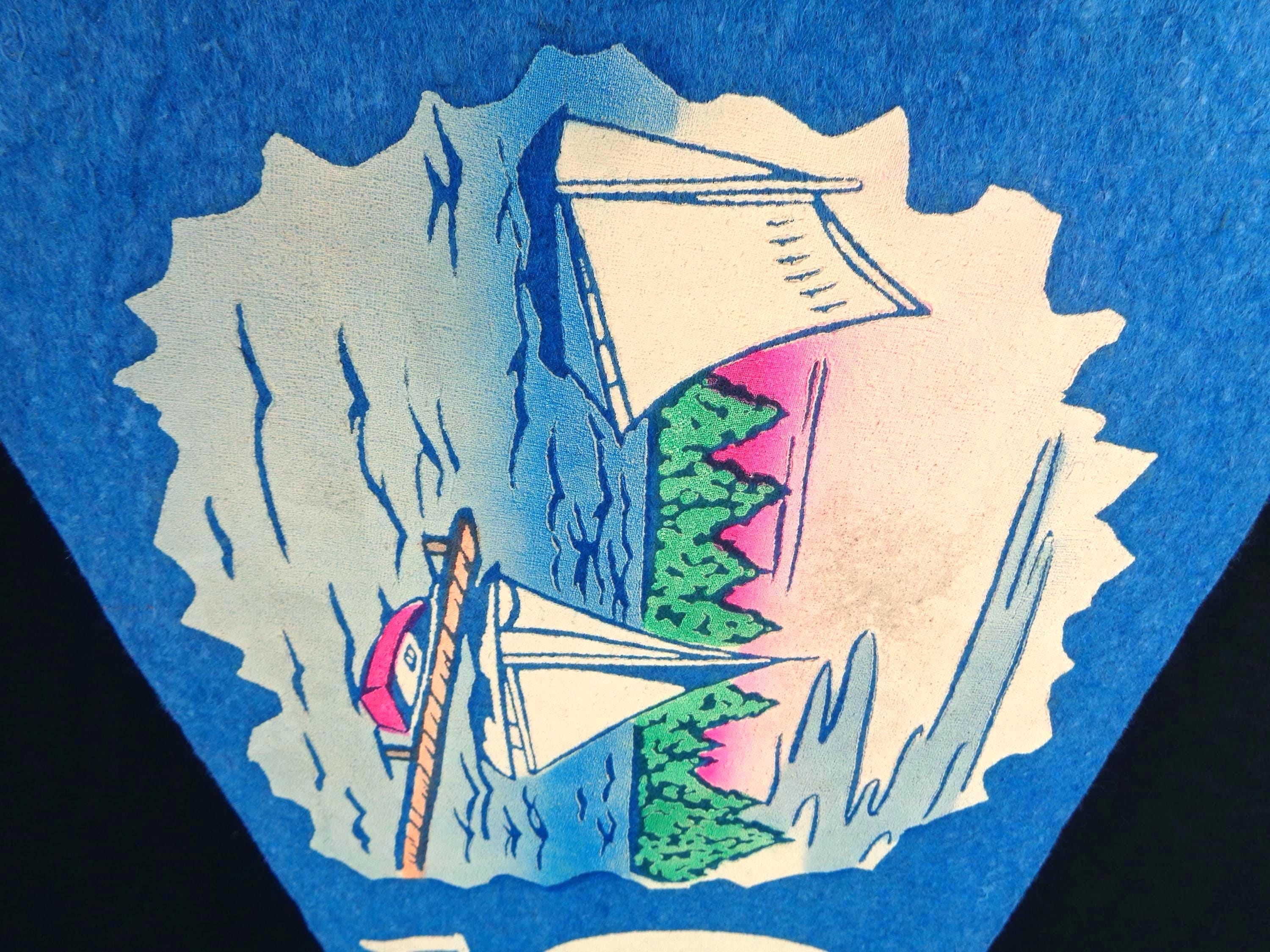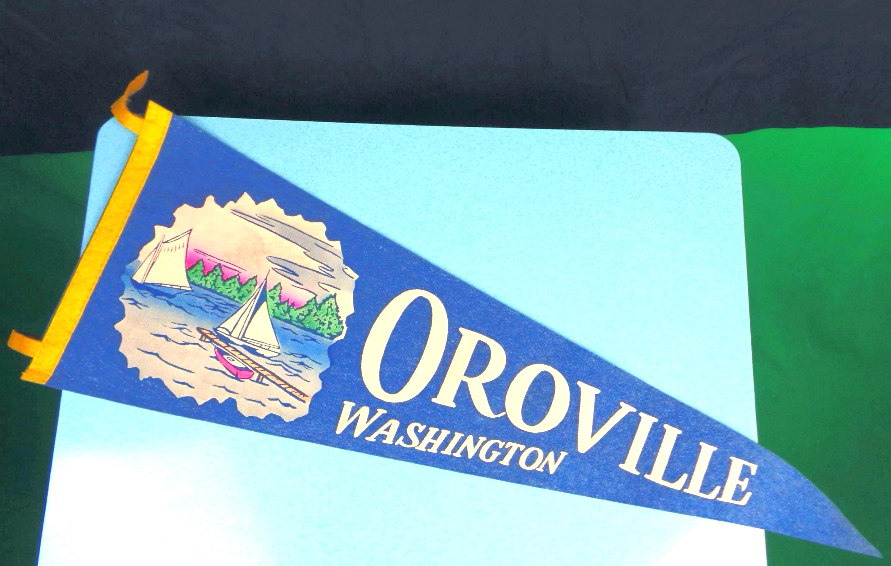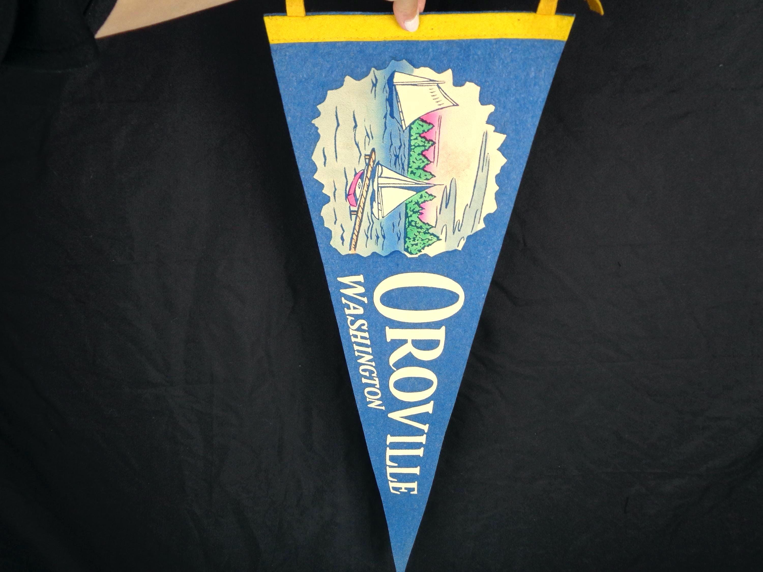 This lovely vibrant 1940s 50s OROVILLE WASHINGTON wall pennant.