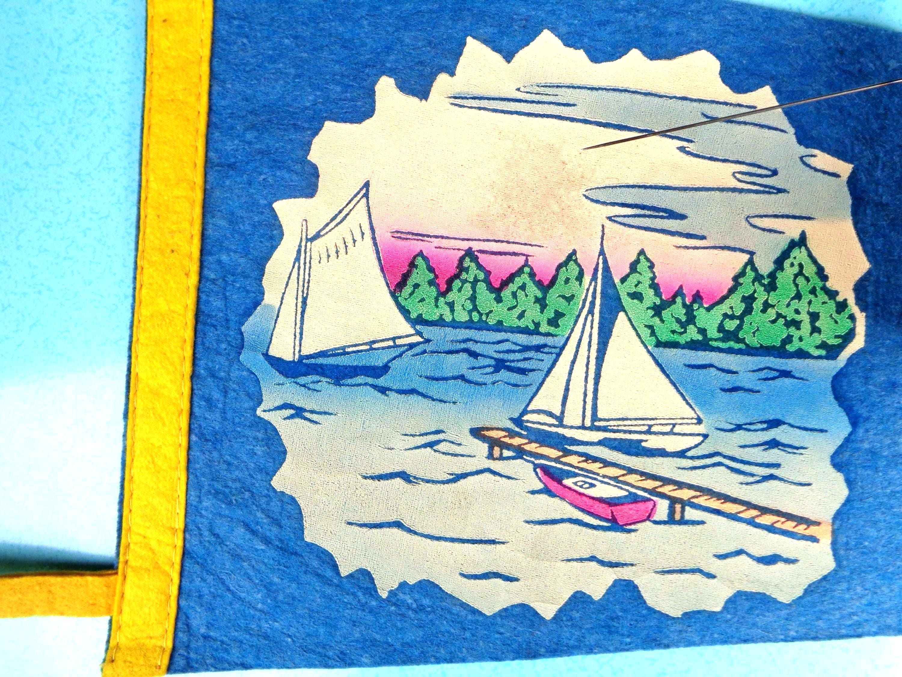 Features a pictorial scenery, vegetation, sailing, boating dock, with 4 panels to hang the pendant, with soft material throughout! Great piece!