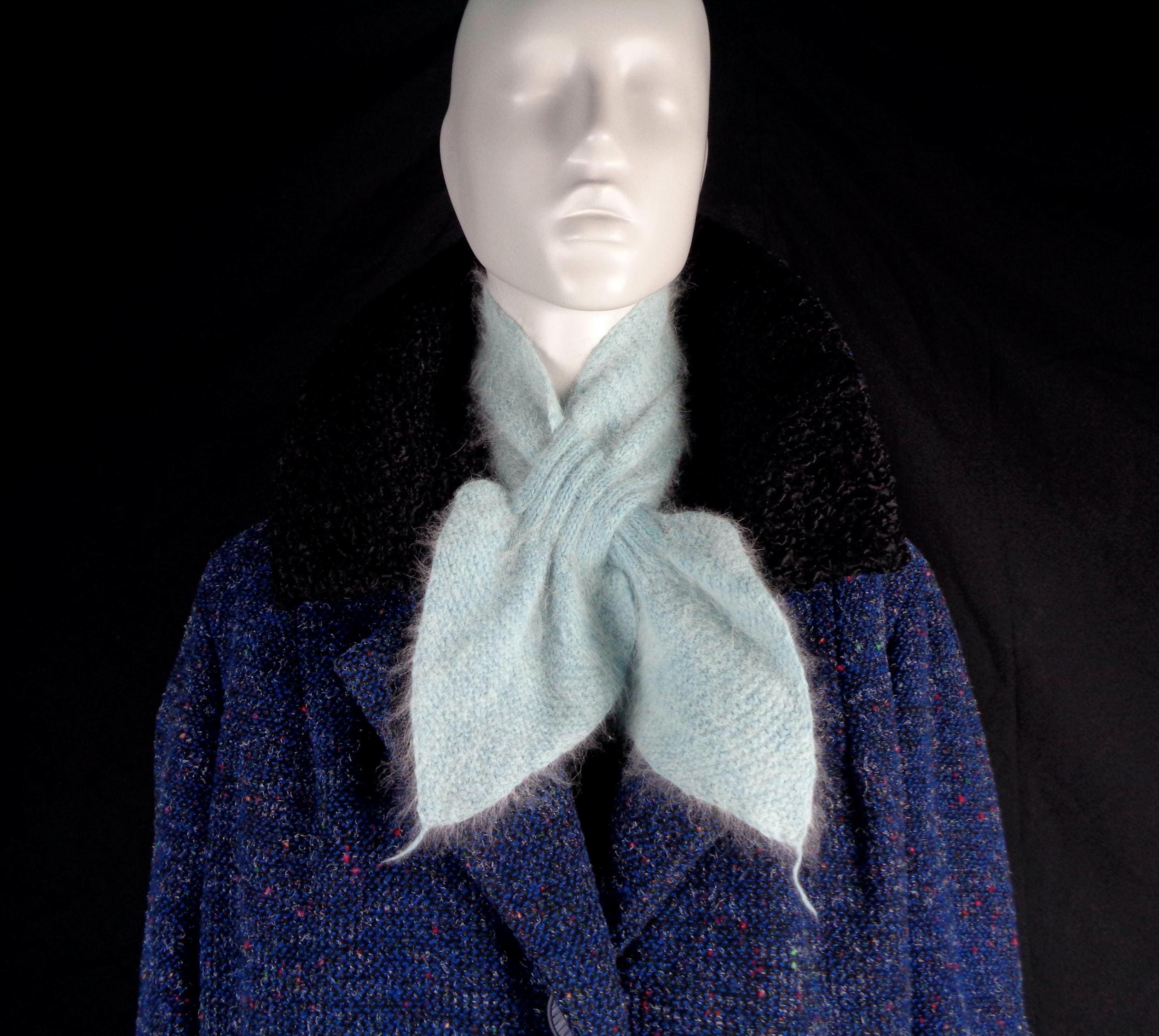 Features a 2 sided wearing options, with 2 different knitting design, pattern, heart shape ends, ultra soft fabric, material throughout! Great compliment piece!