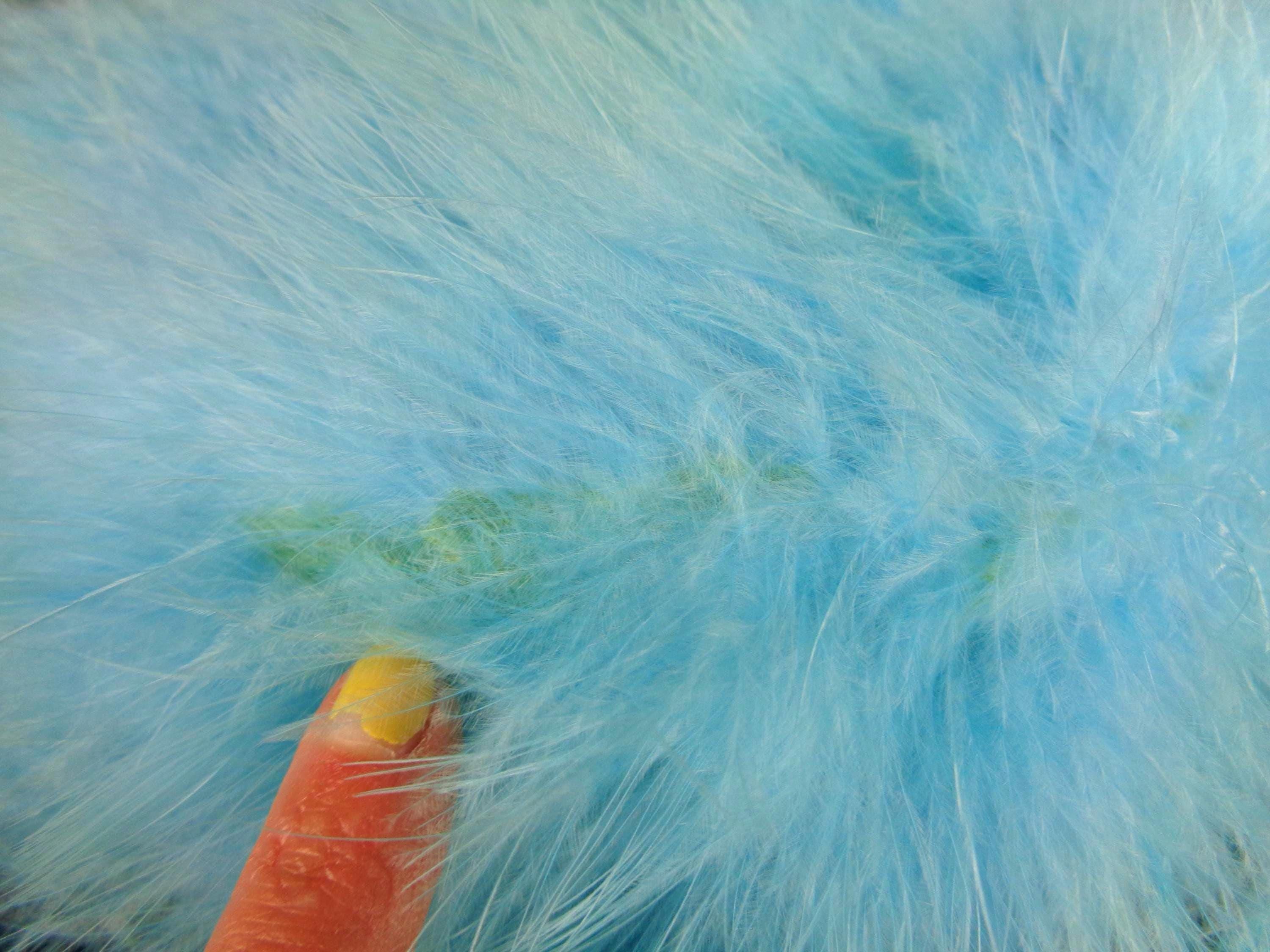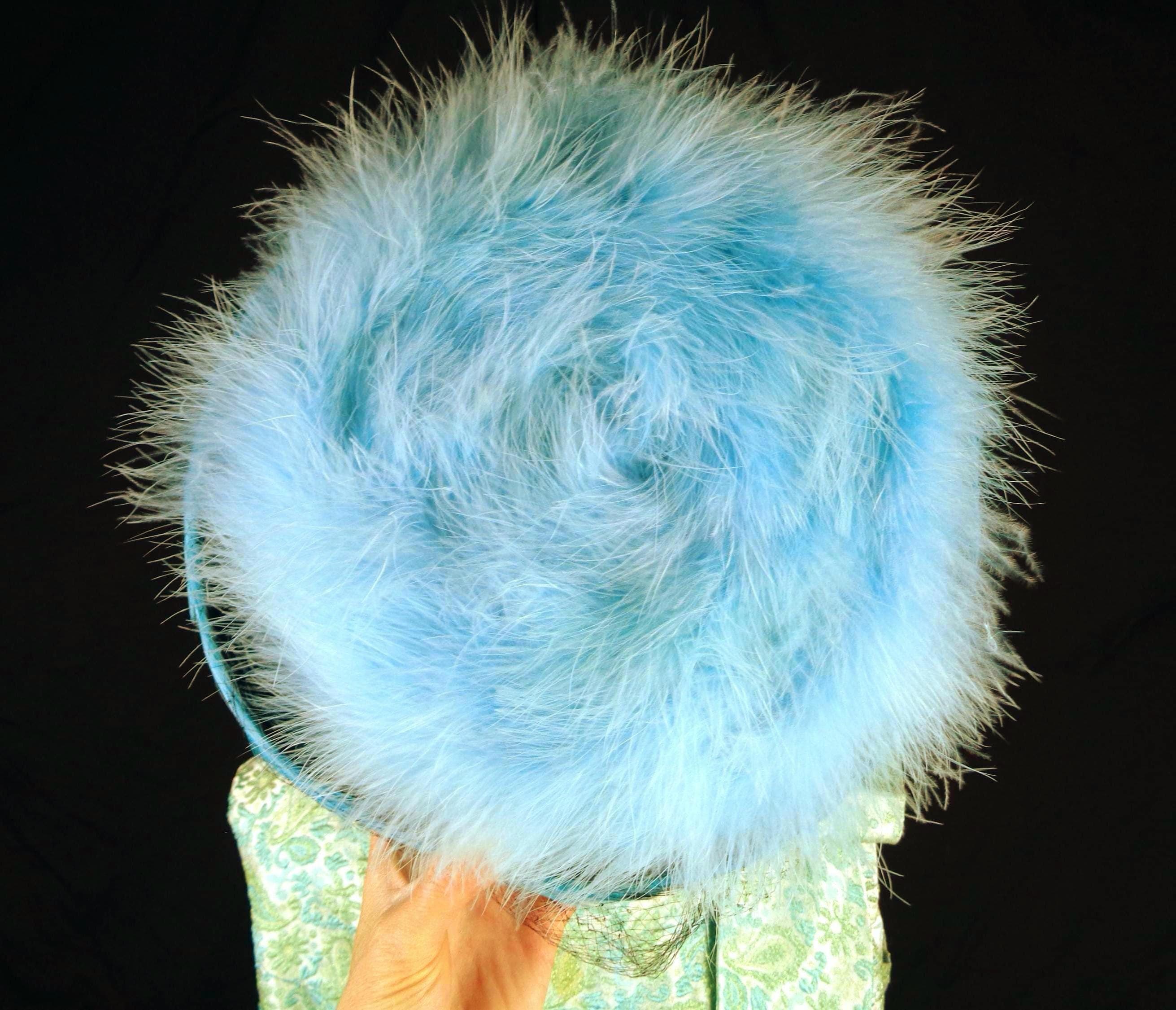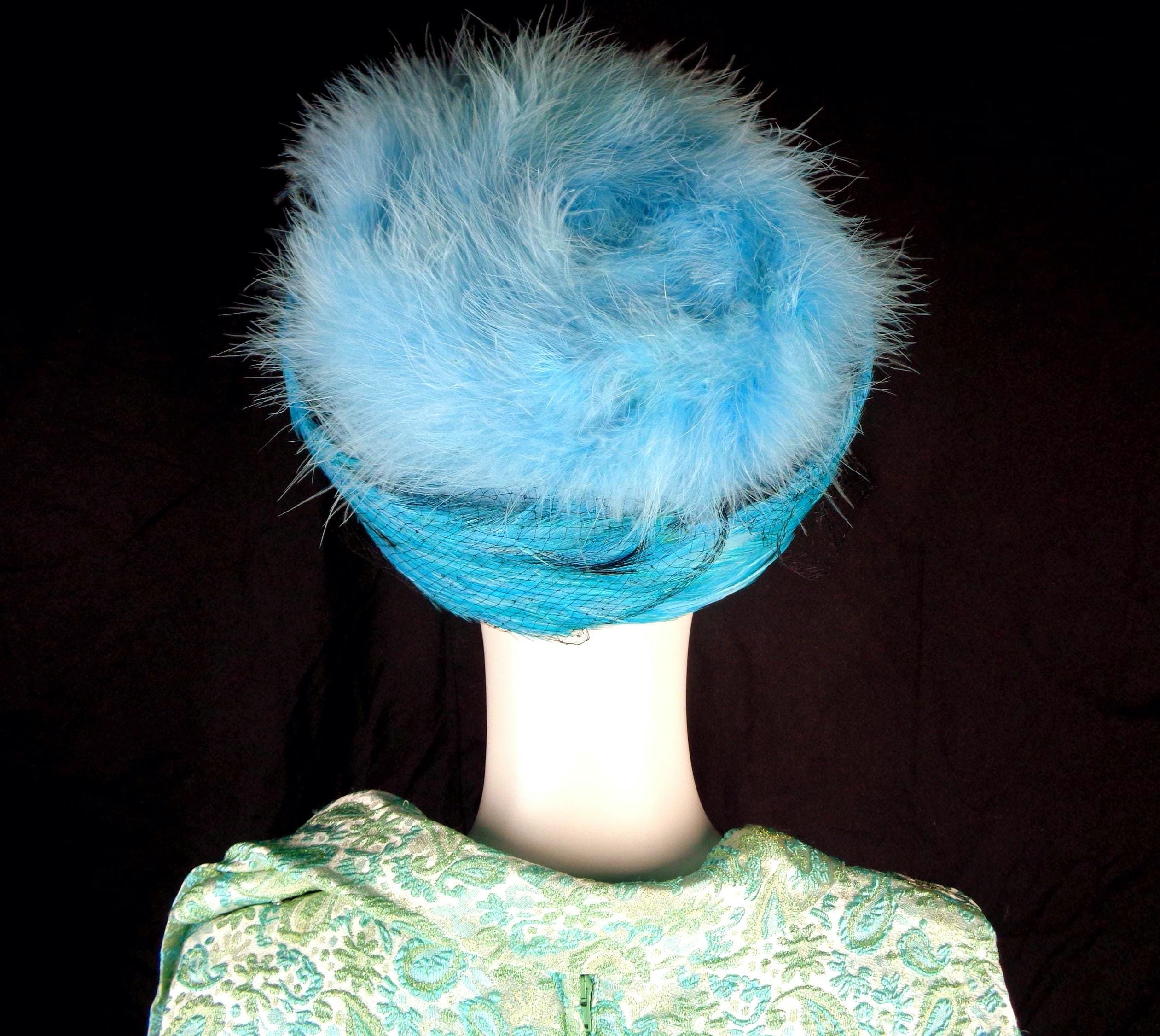 Features 2 different types of marabou feathers combined top and center that is wrapped in a veil, with the original factory tag, a drop step center cone, cured base, ultra soft material throughout! Great compliment piece!