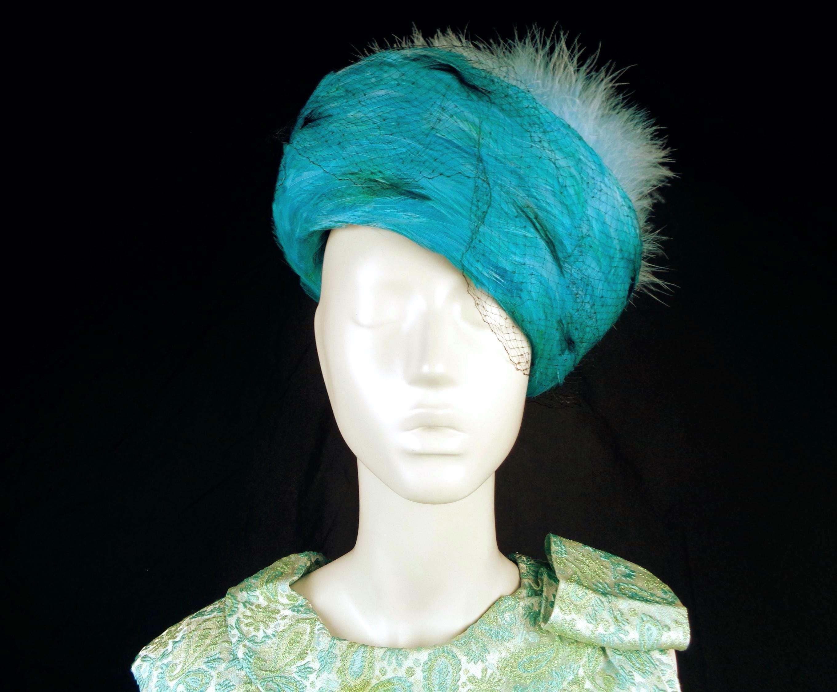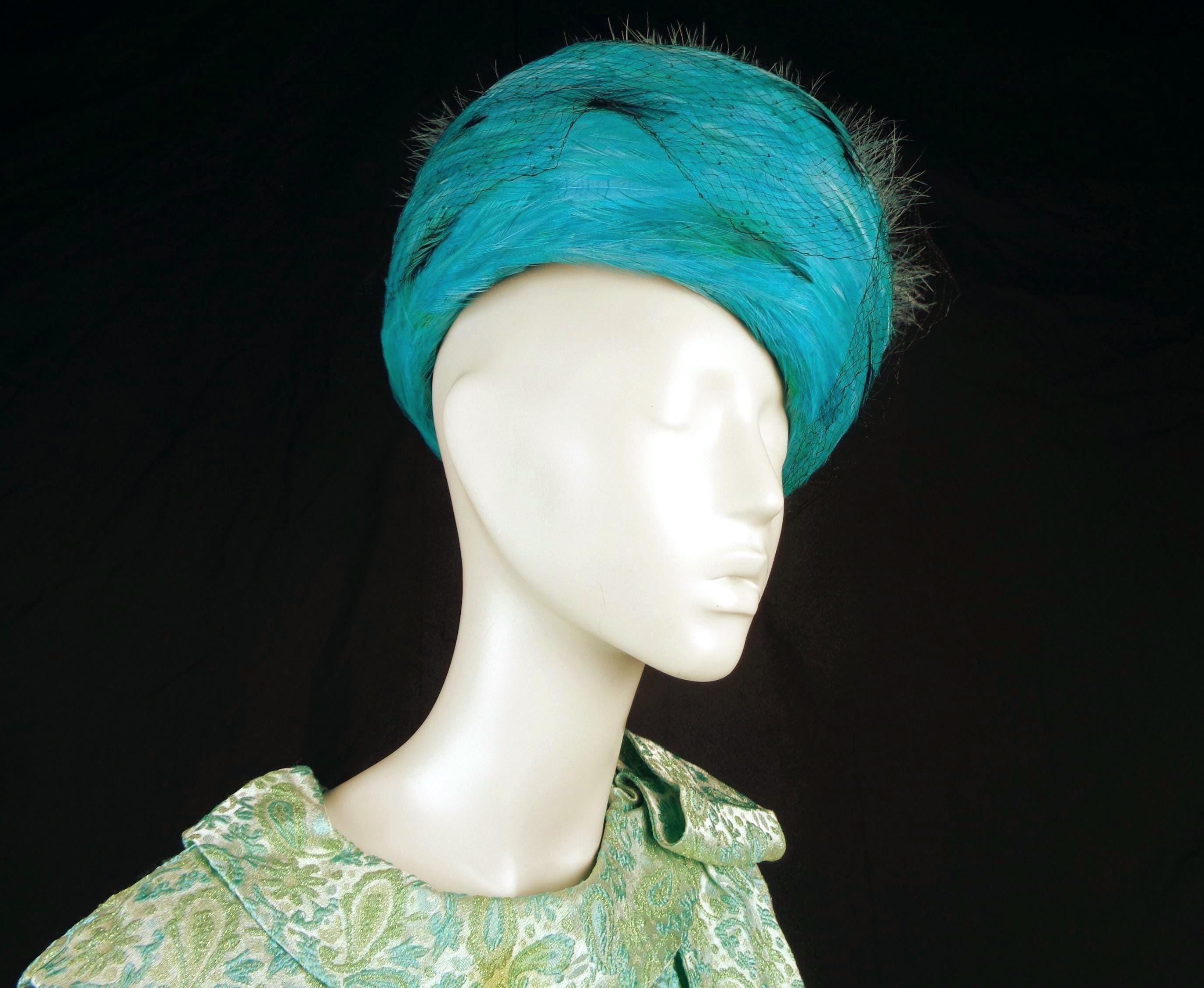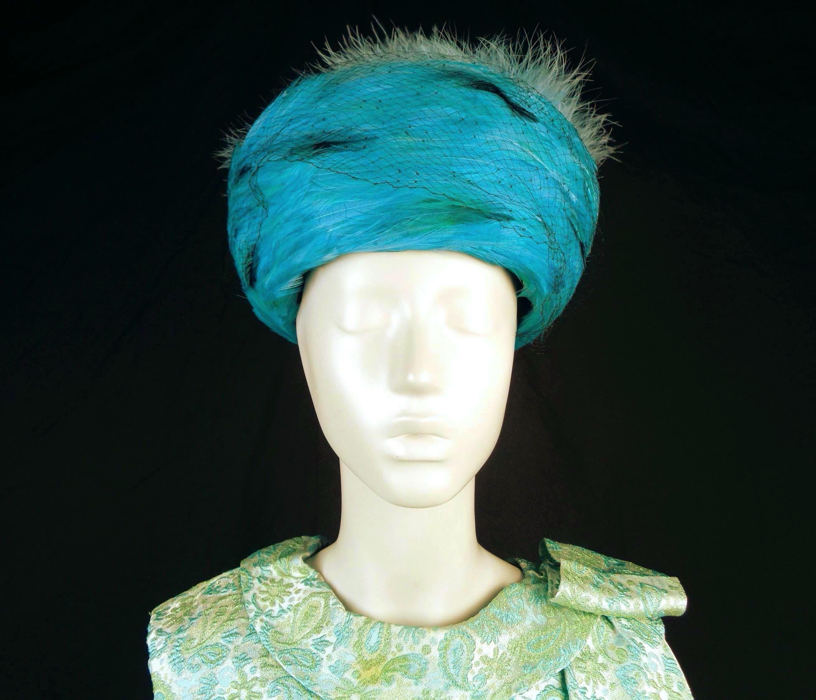 This lovely stylish vibrant rare 1950s 60s retro pillbox, hat, capulet.