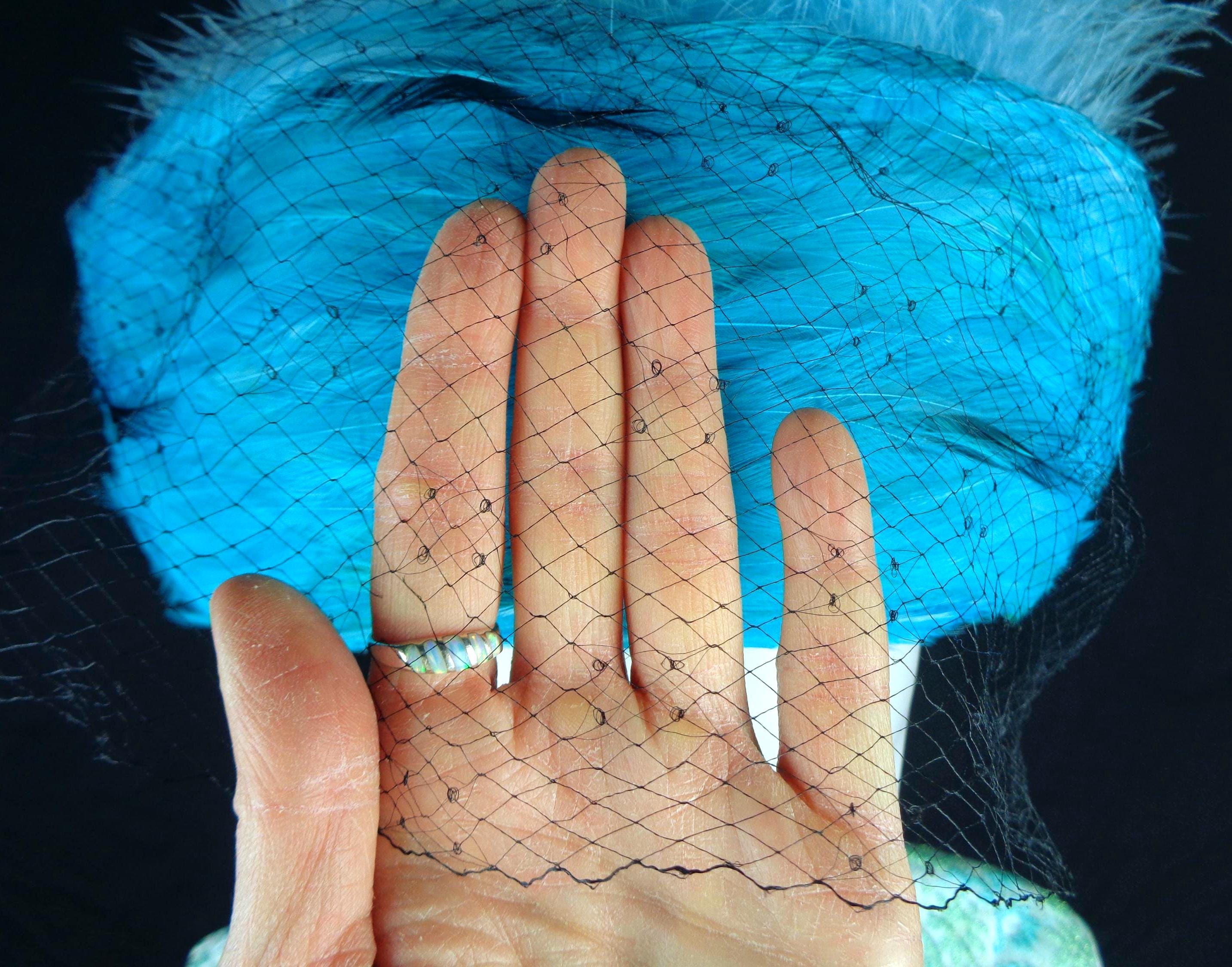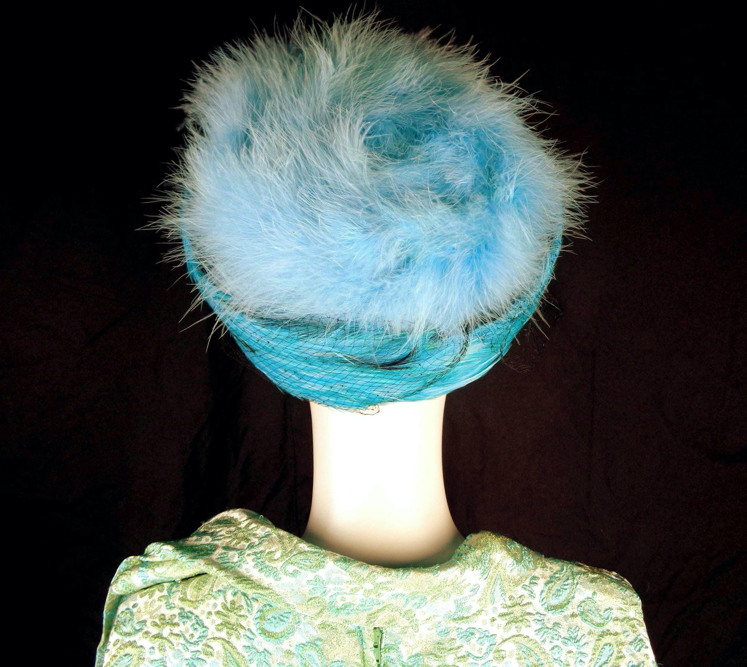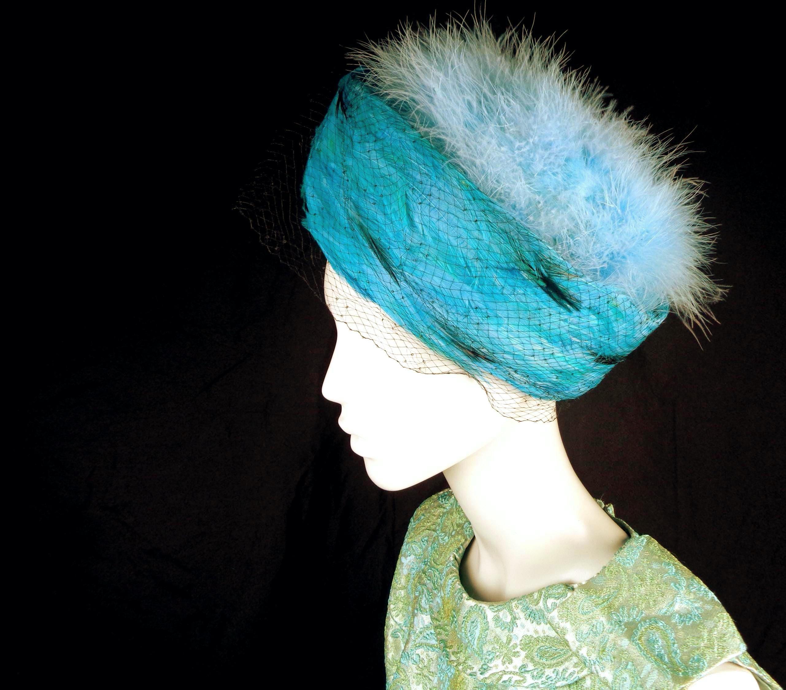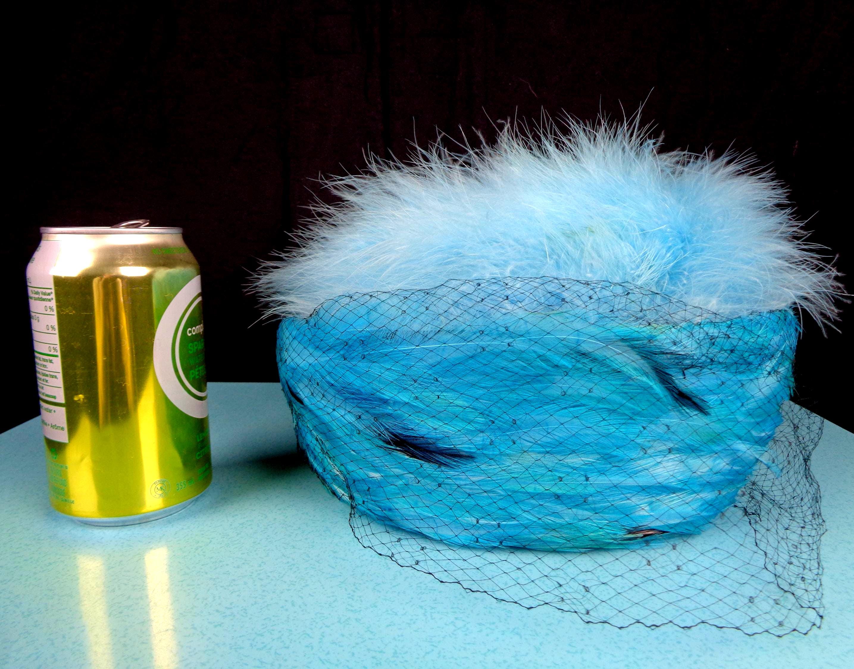 This lovely stylish vibrant rare 1950s 60s retro pillbox, hat, capulet.