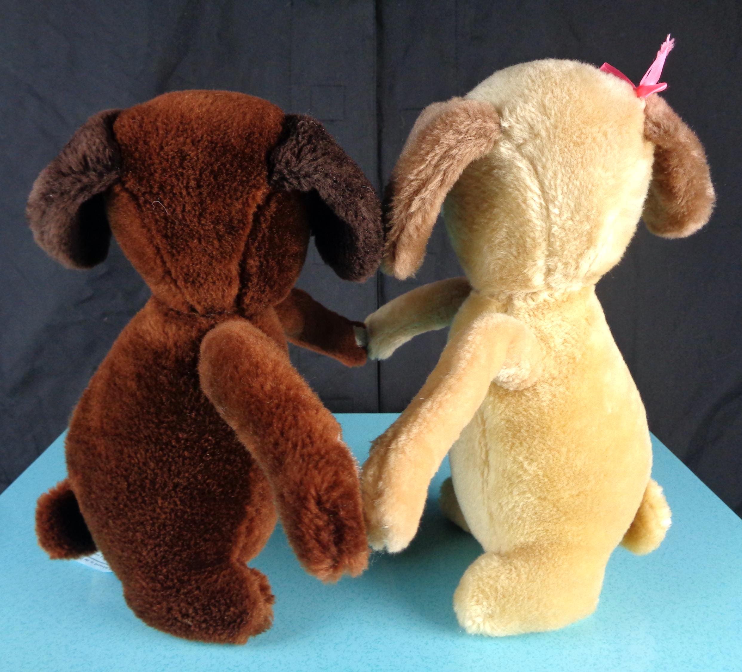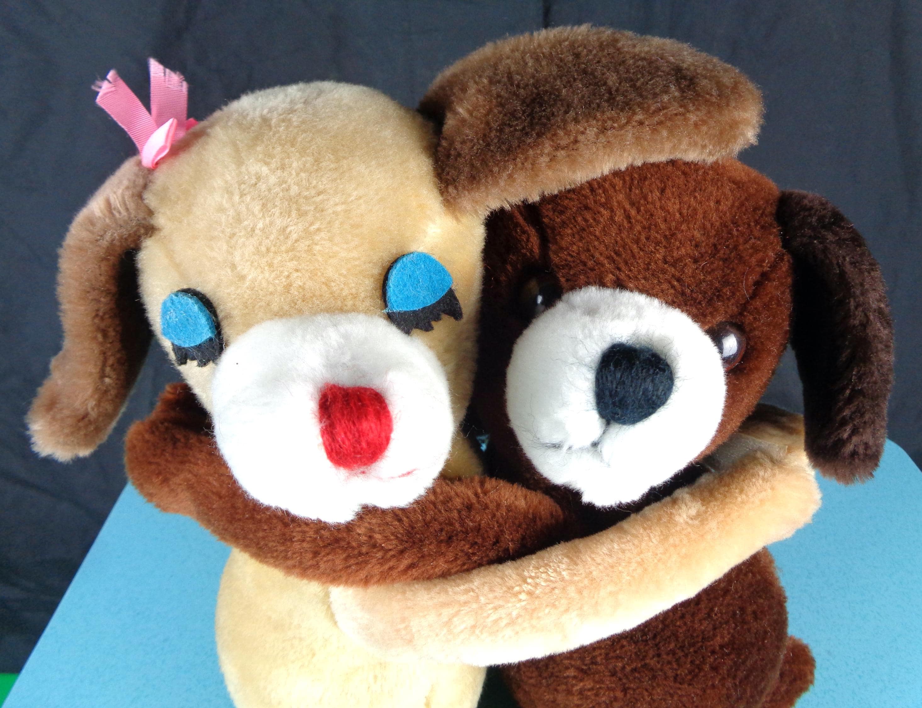 These lovely cute as can be rare 1980s stuffed toy couple hugging bears.