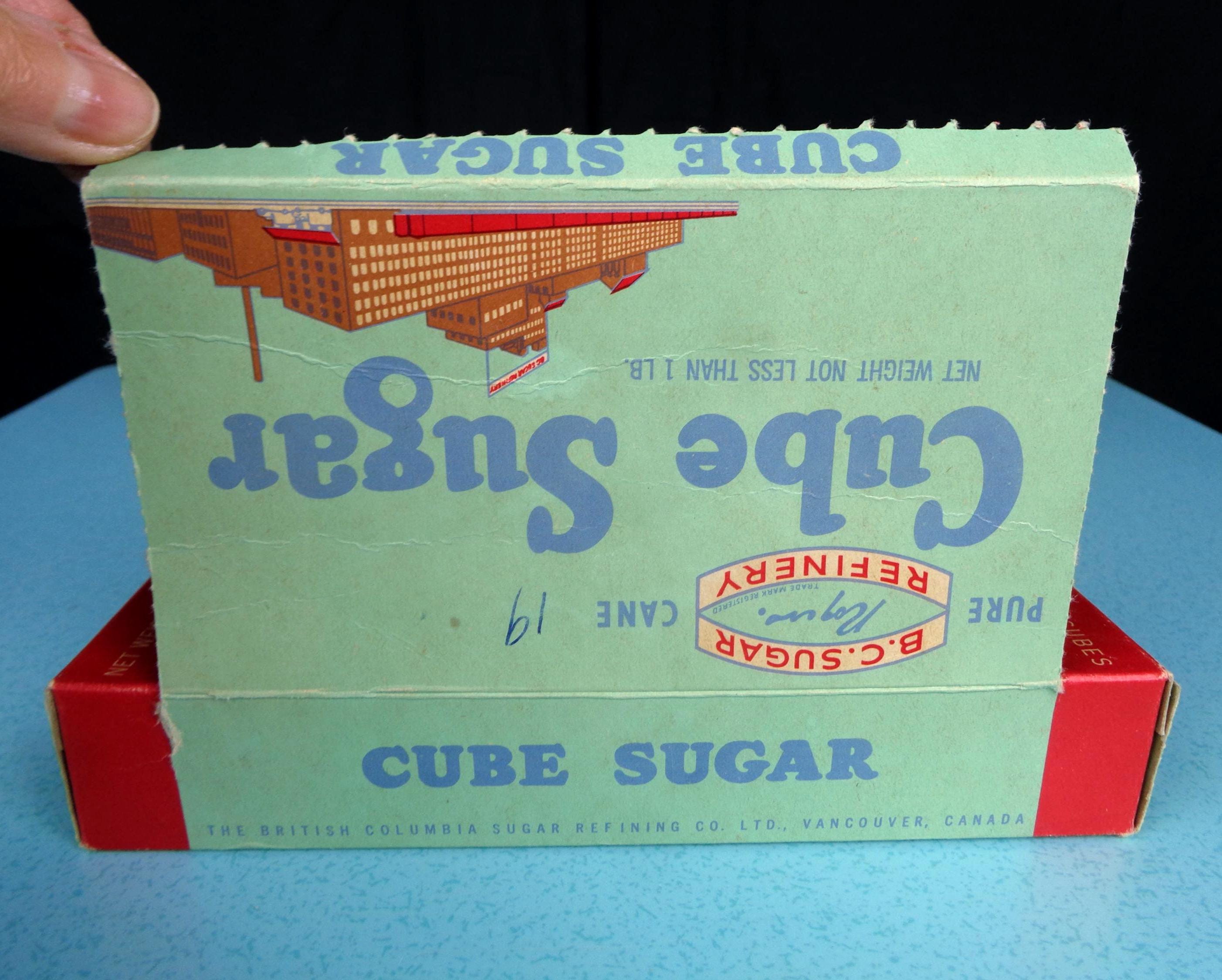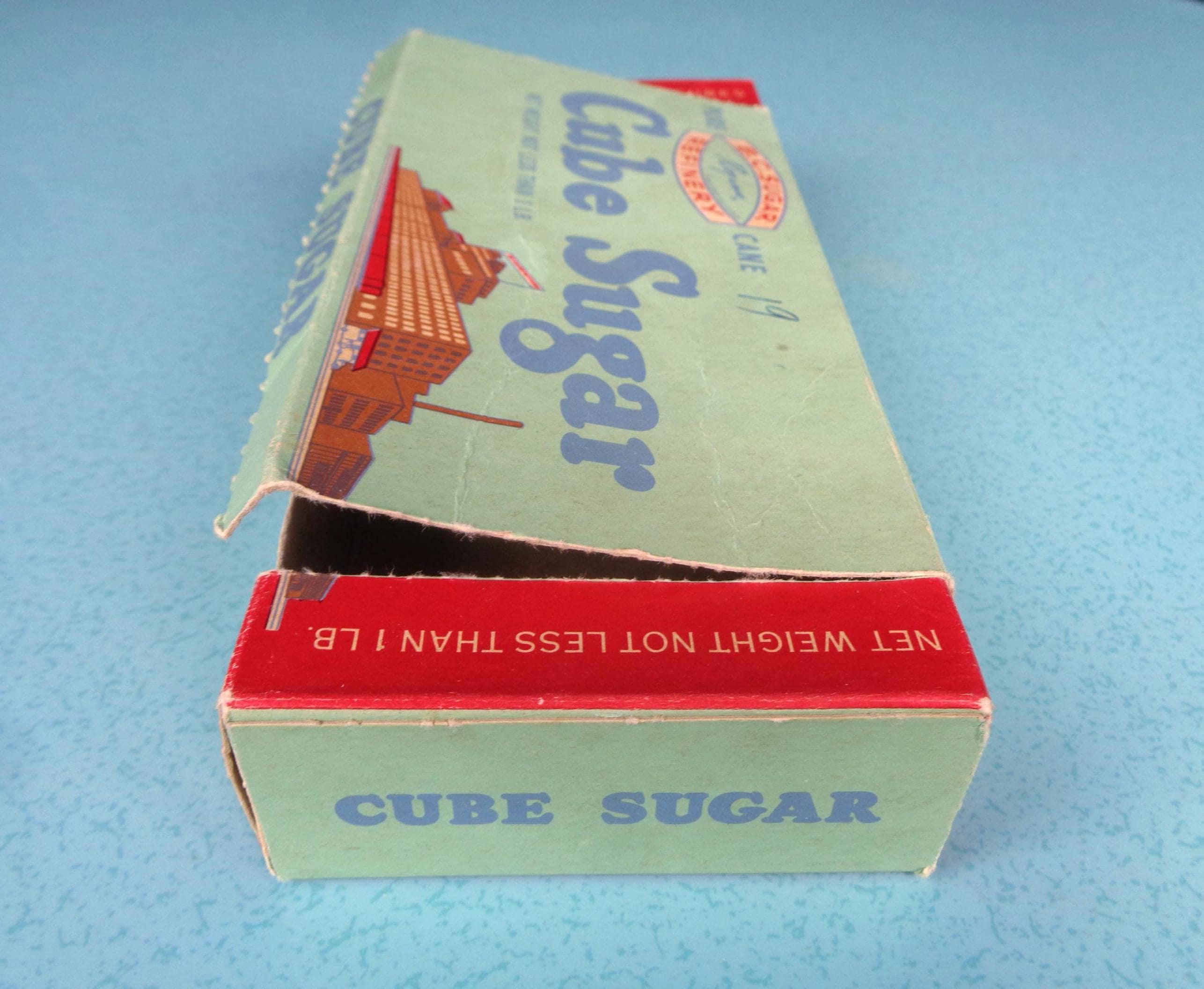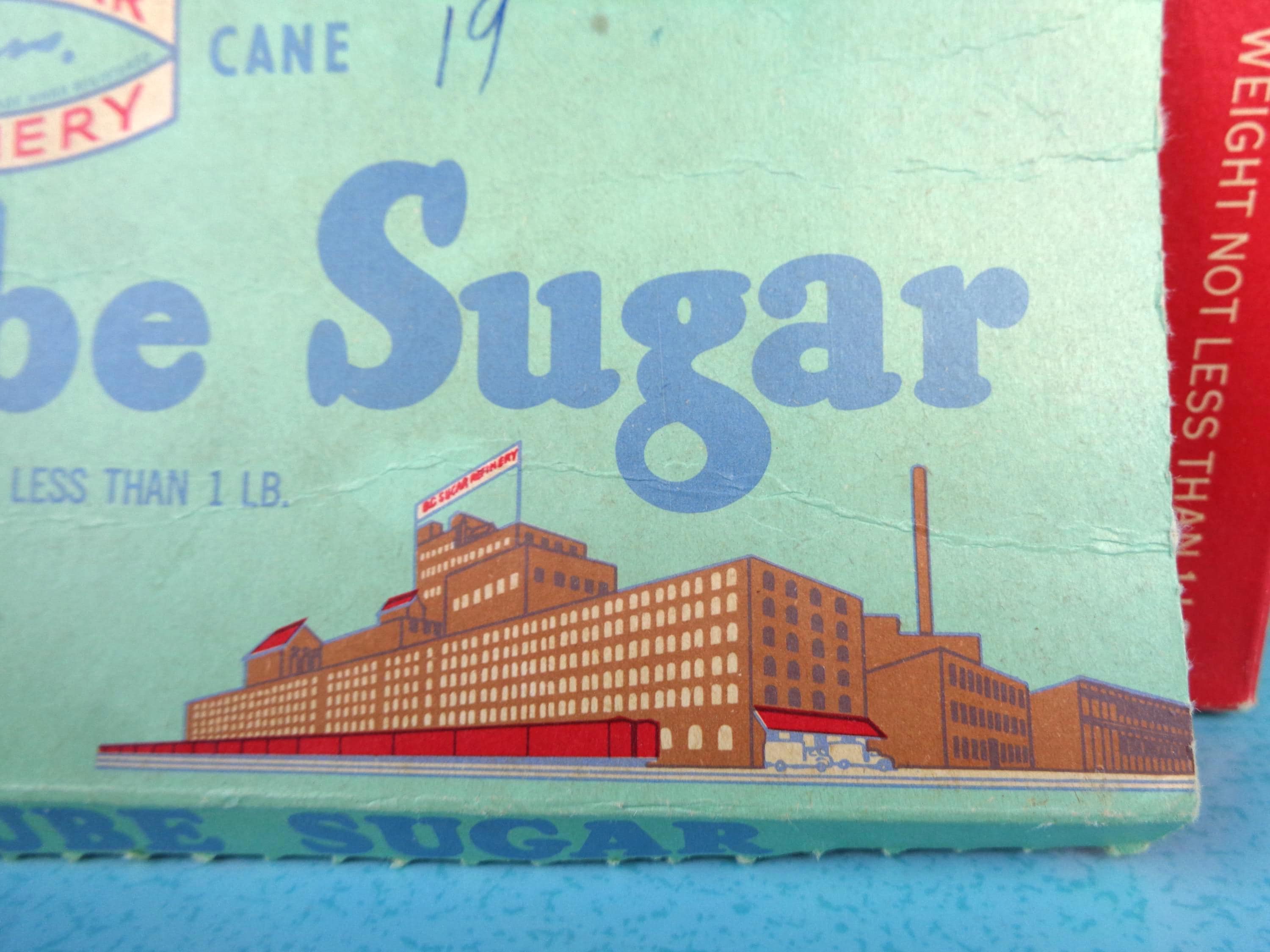 Features the original pictorial of the once was sugar factory with fine details, top attached lid, colorful design throughout! Great piece!