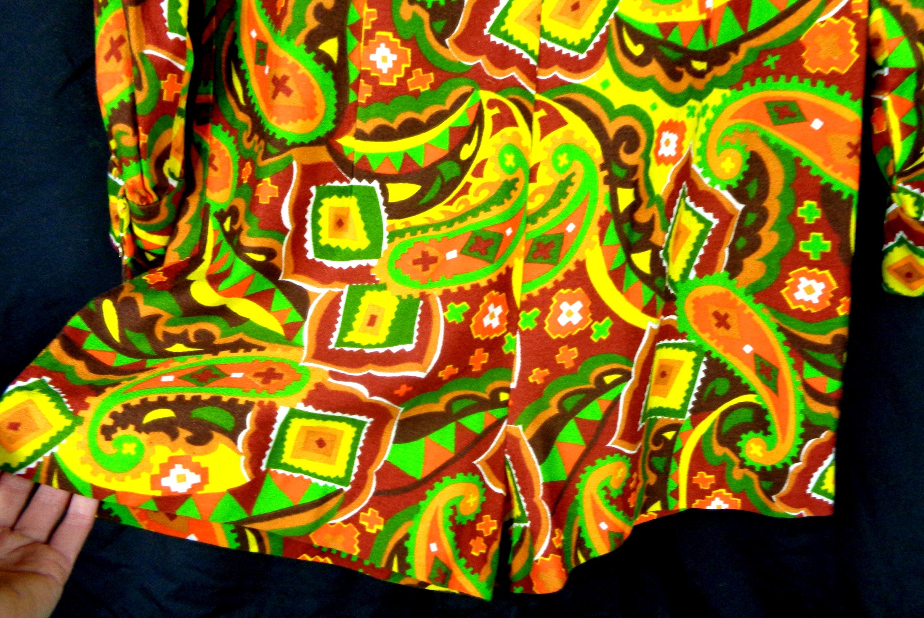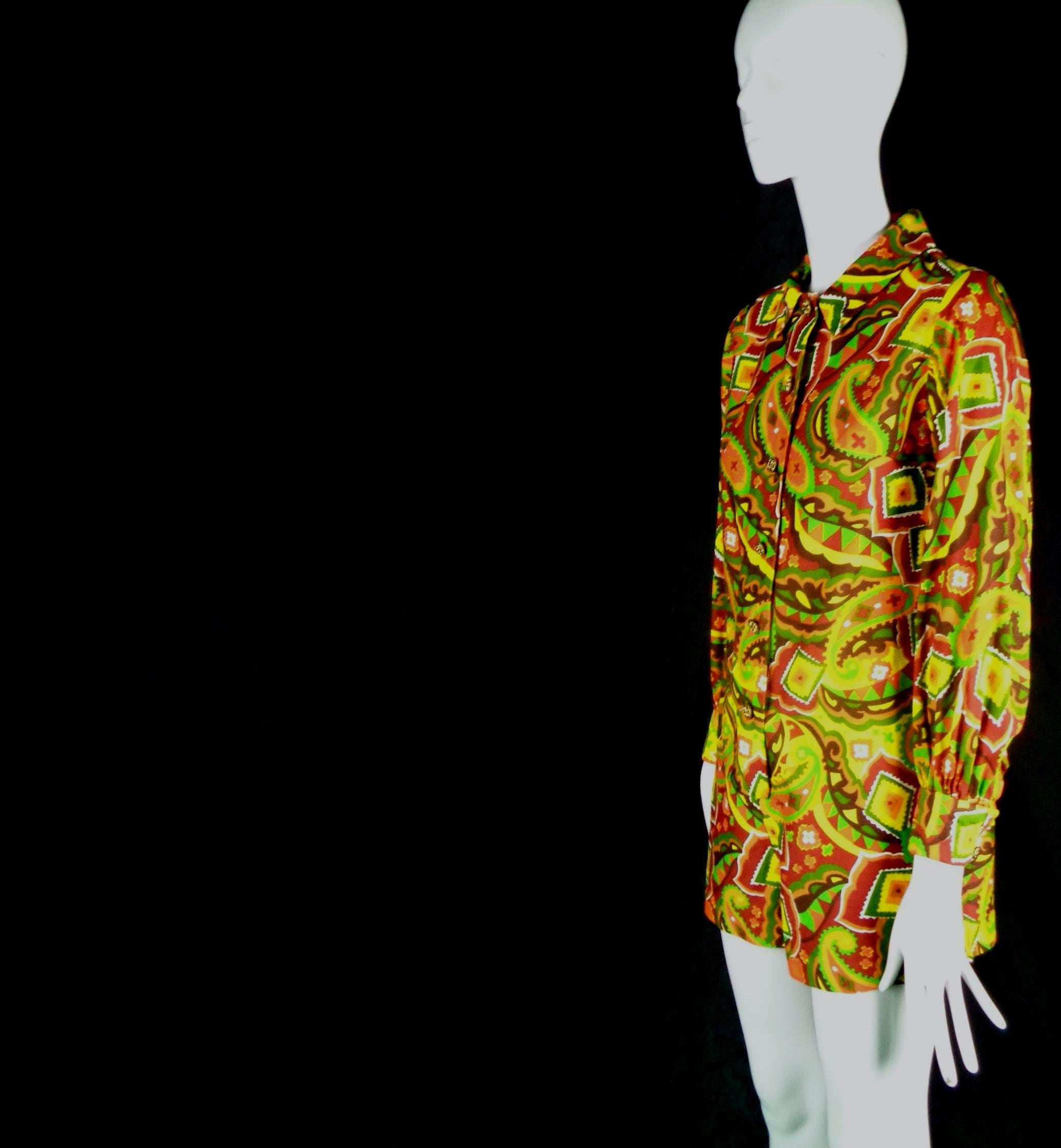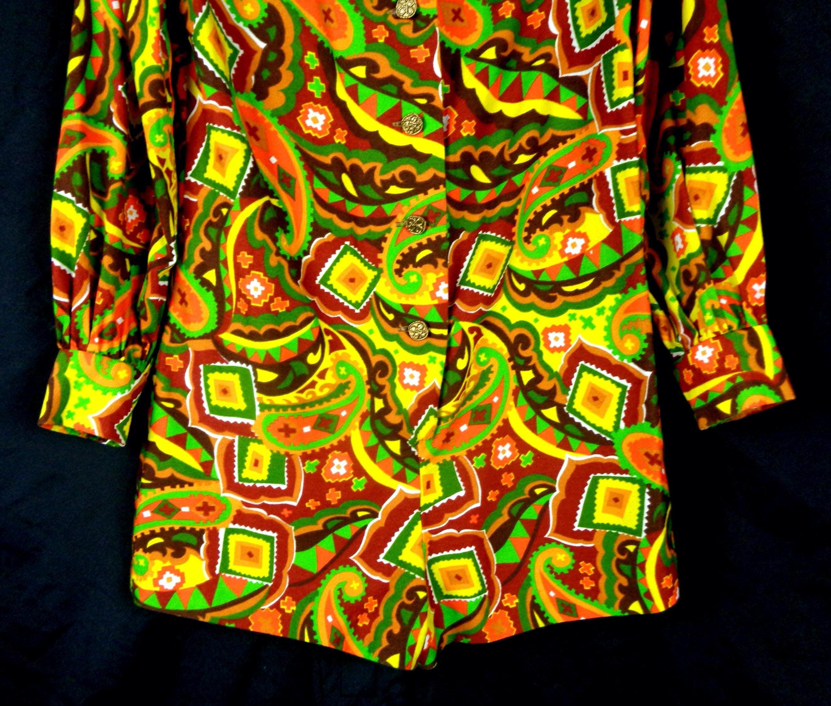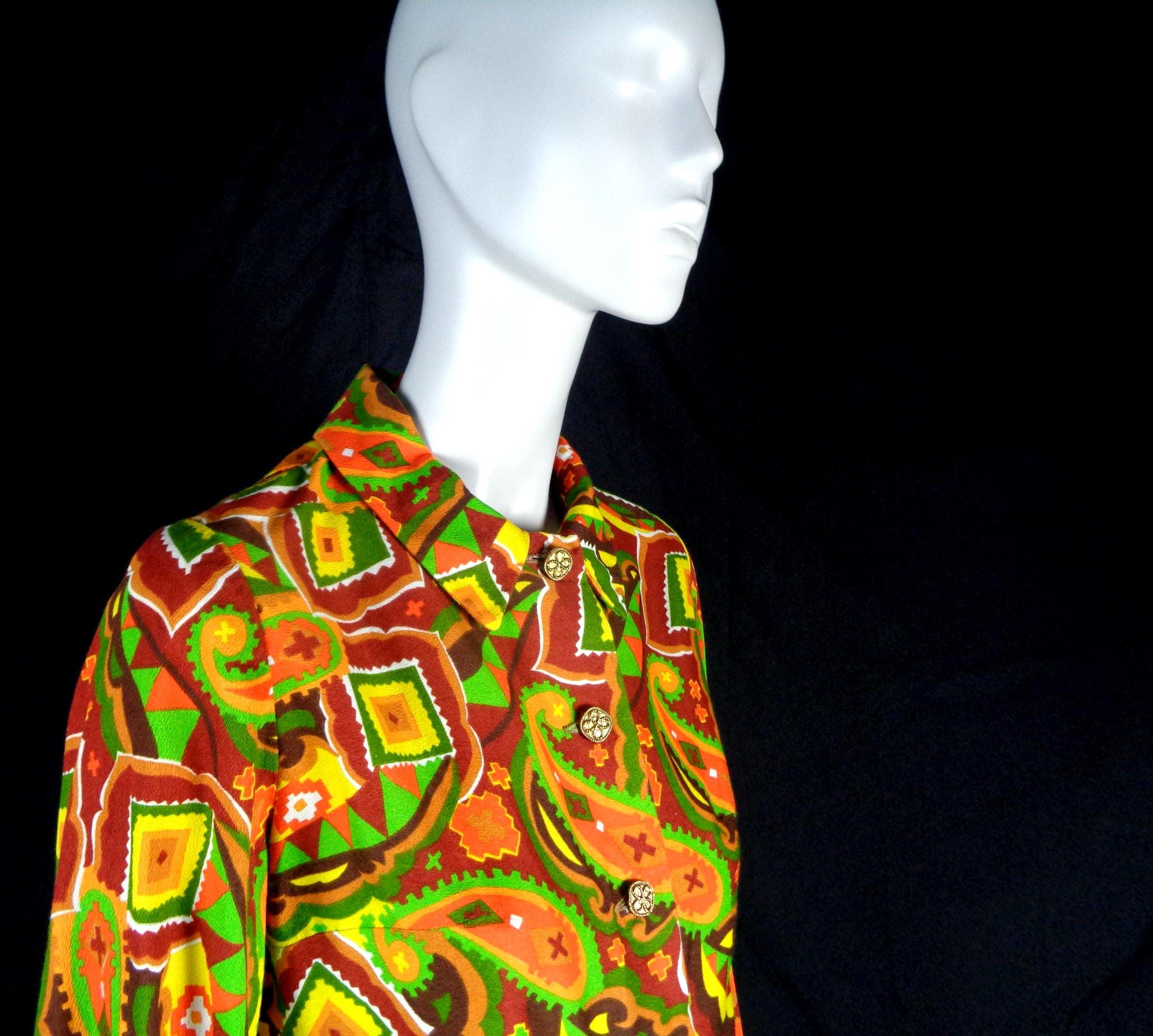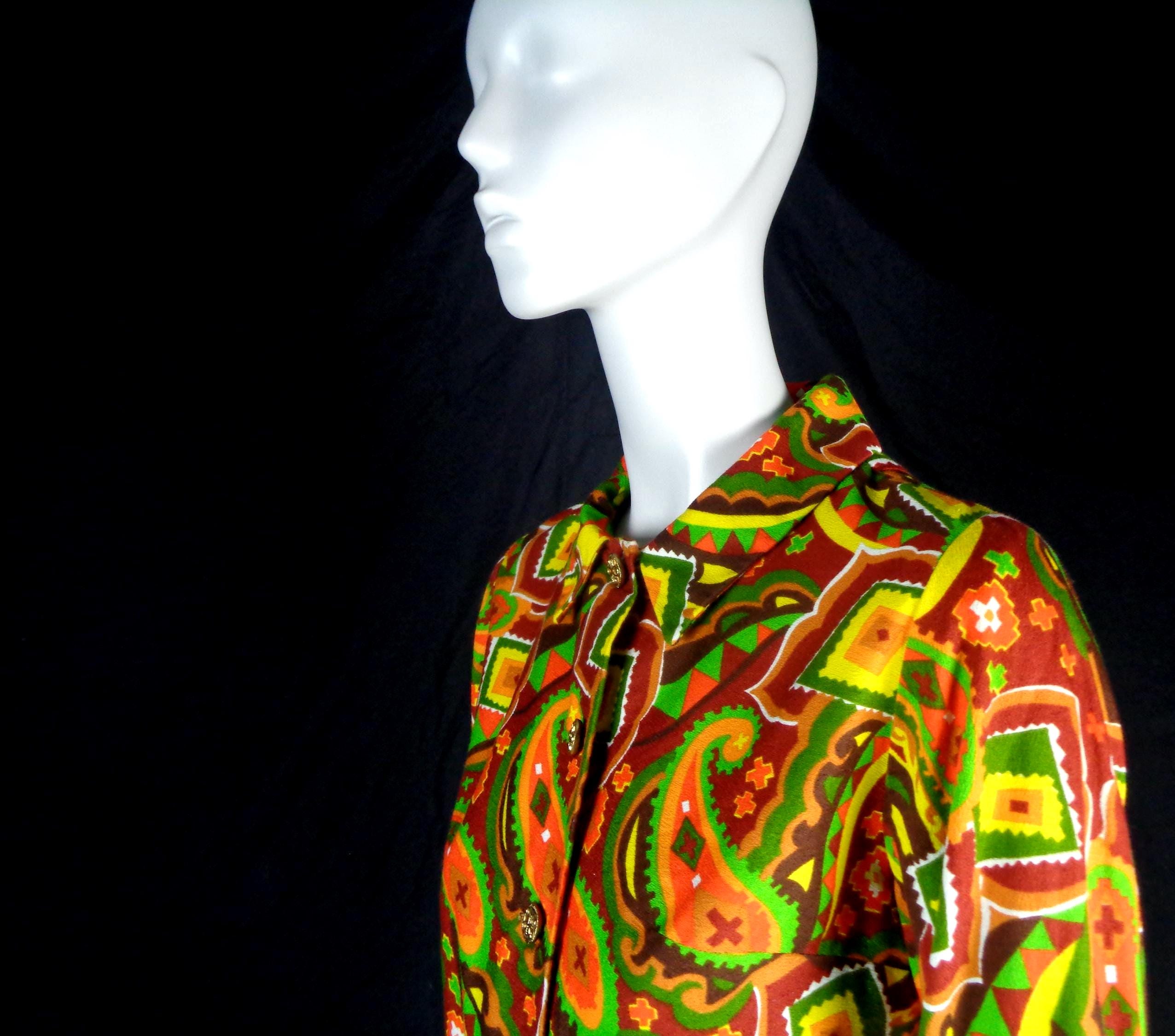 Features 6 front decorative buttons, following with 3 cuff, wrist buttons, a snap collar, geometric, paisley pattern, design and soft fabric, material throughout! Great compliment piece!
